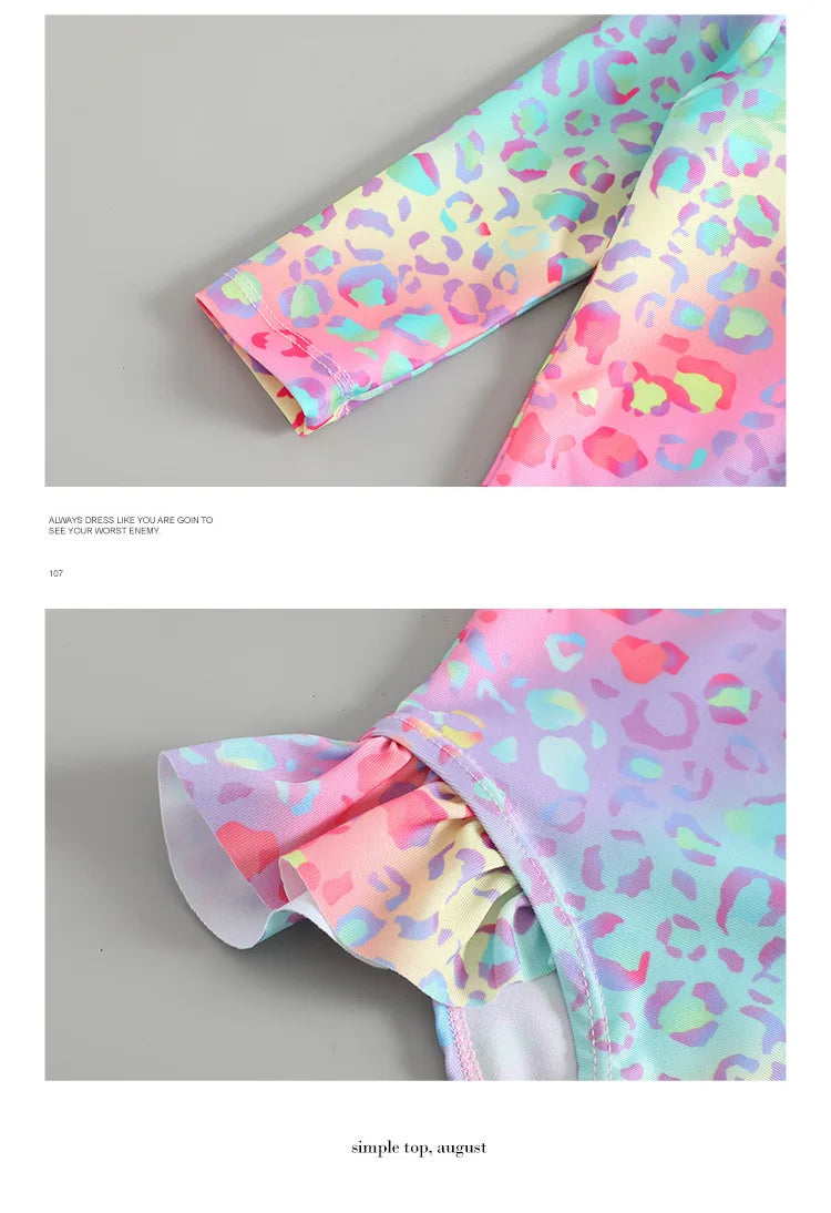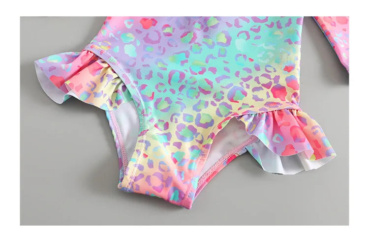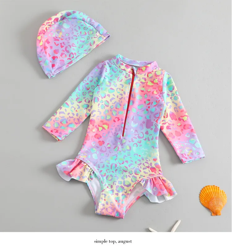 Toddler Girls Swimsuit with Sun Hat Set 1 to 2 3 4 5 6 Years Leopard Ruffle Sleeve Zip Up One-pieced Swimwear Beachwear for Baby