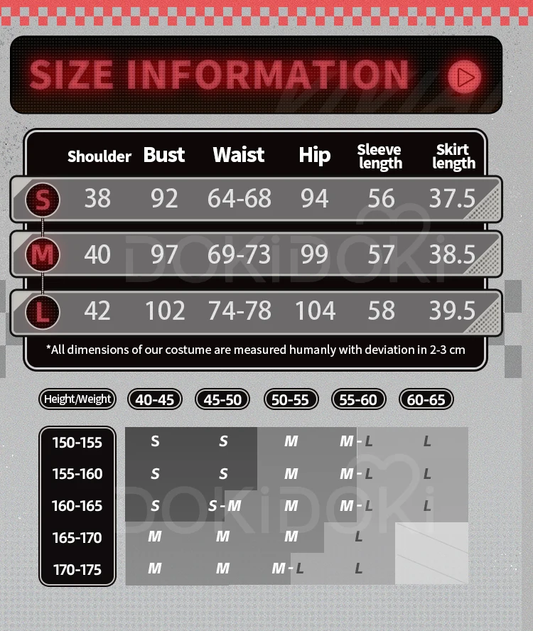 Asian size-Please read the size chart carefully. (◕ˇ∀ˇ◕)Welcome contact us for help about size choosing with your height ,weight ,waist ,bust,hip measurement.