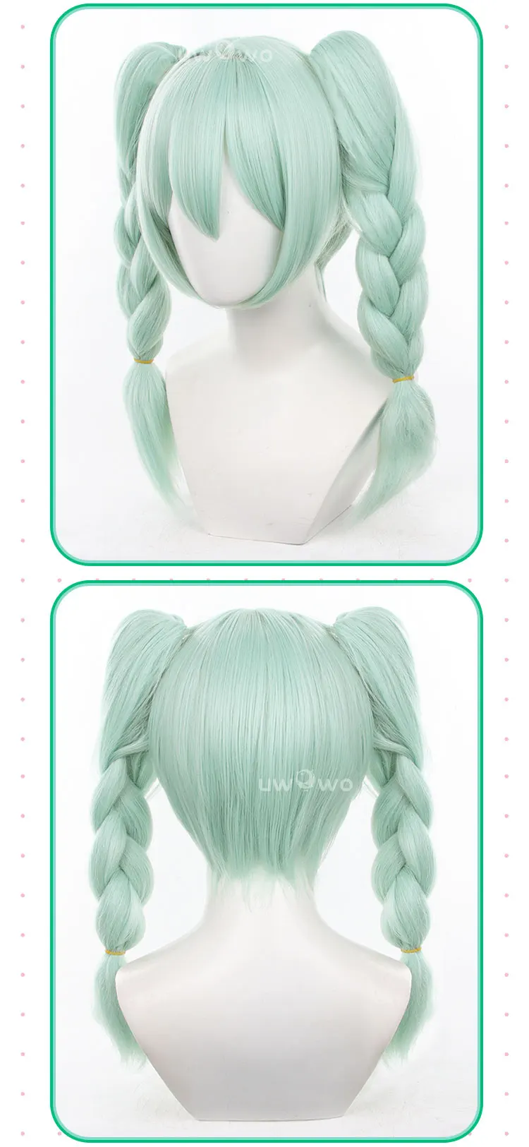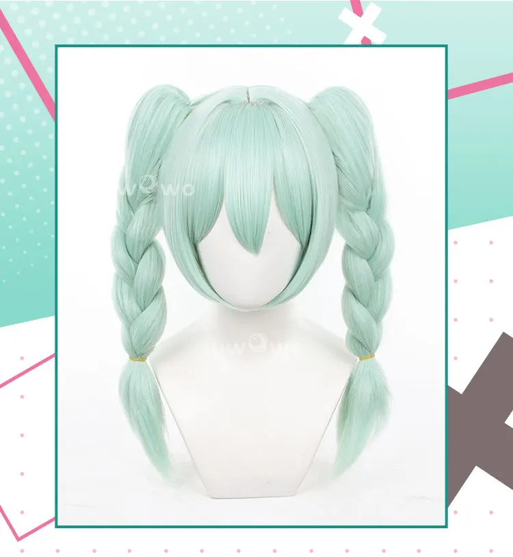 UWOWO V Singerr Mikku Cute Bunny Women Cosplay Wig With Ponytails Light Green Hair 45CM