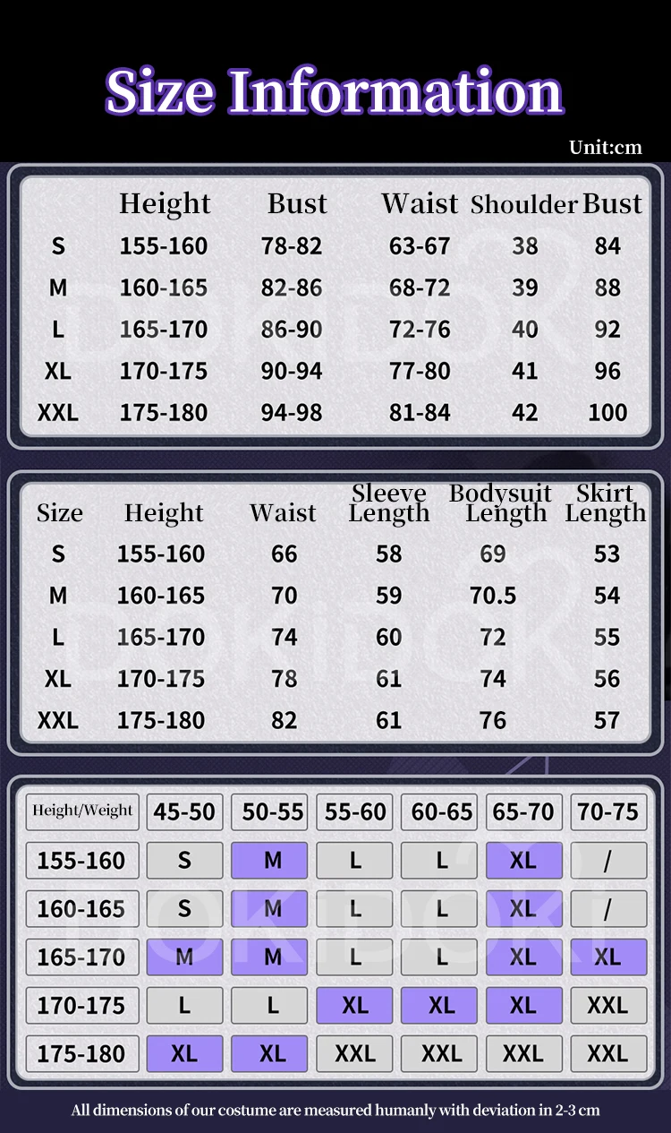 Please read the size chart carefully. (◕ˇ∀ˇ◕)Welcome contact us for help about size choosing with your height ,weight ,waist ,bust,hip measurement.