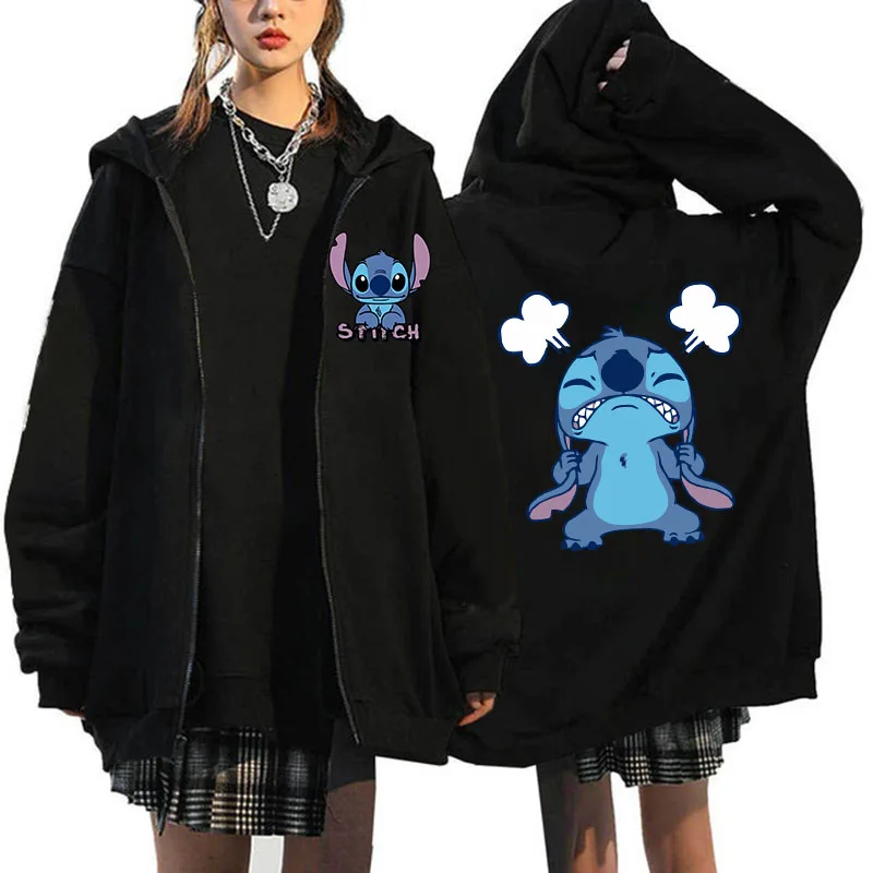 Women's Oversized Zipper Hoodie MINISO Luxury Brand Disney Lilo and Stitch Couple Hooded Sweatshirt Autumn and Winter Warm Jacke