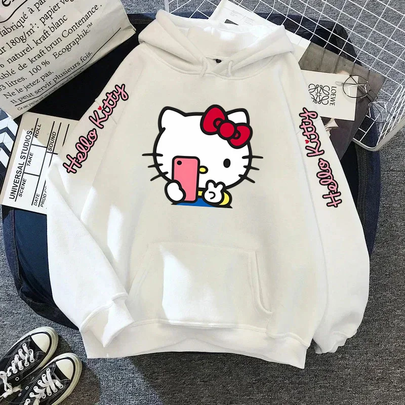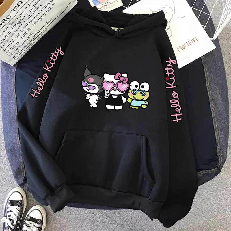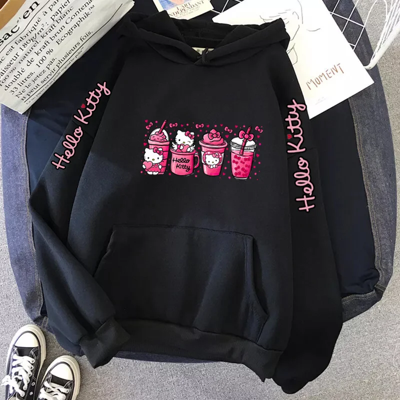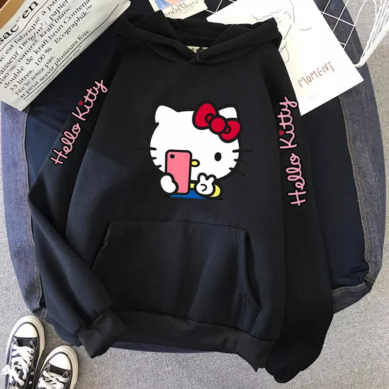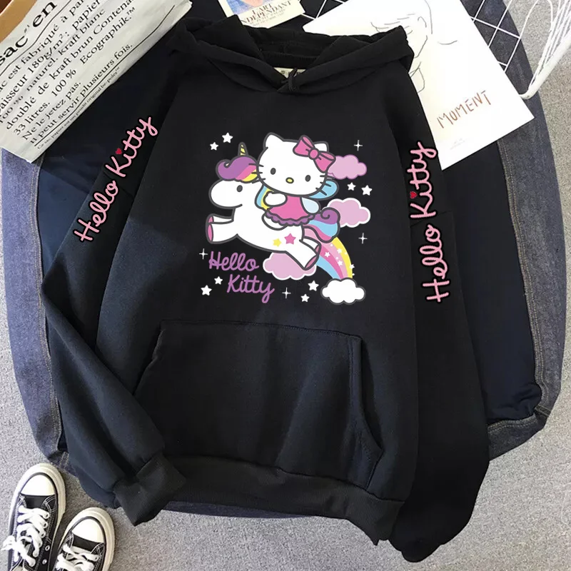 Women's Sportswear Sanrio Japan Harajuku Hello Kitty Tops Cute Clothes Pattern Hoodie Winter Long Sleeve Jacket Women Winter
