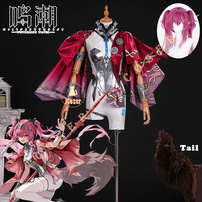 Wuthering Waves Lupa Cosplay Costume Wig Bodysuit Cloak Earrings Tail Headwear Leggings Halloween Party for Women Girls iCoser