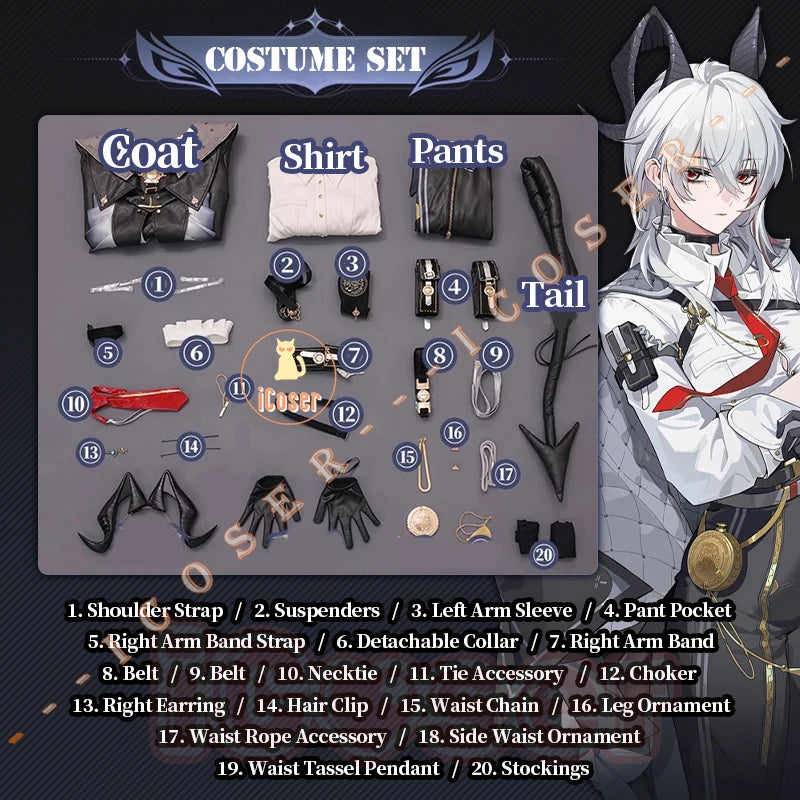 Components: Top,Pants,Metal Props,Headwear,Tail,Earrings,Gloves