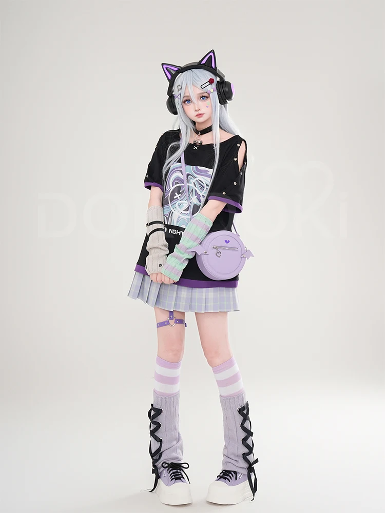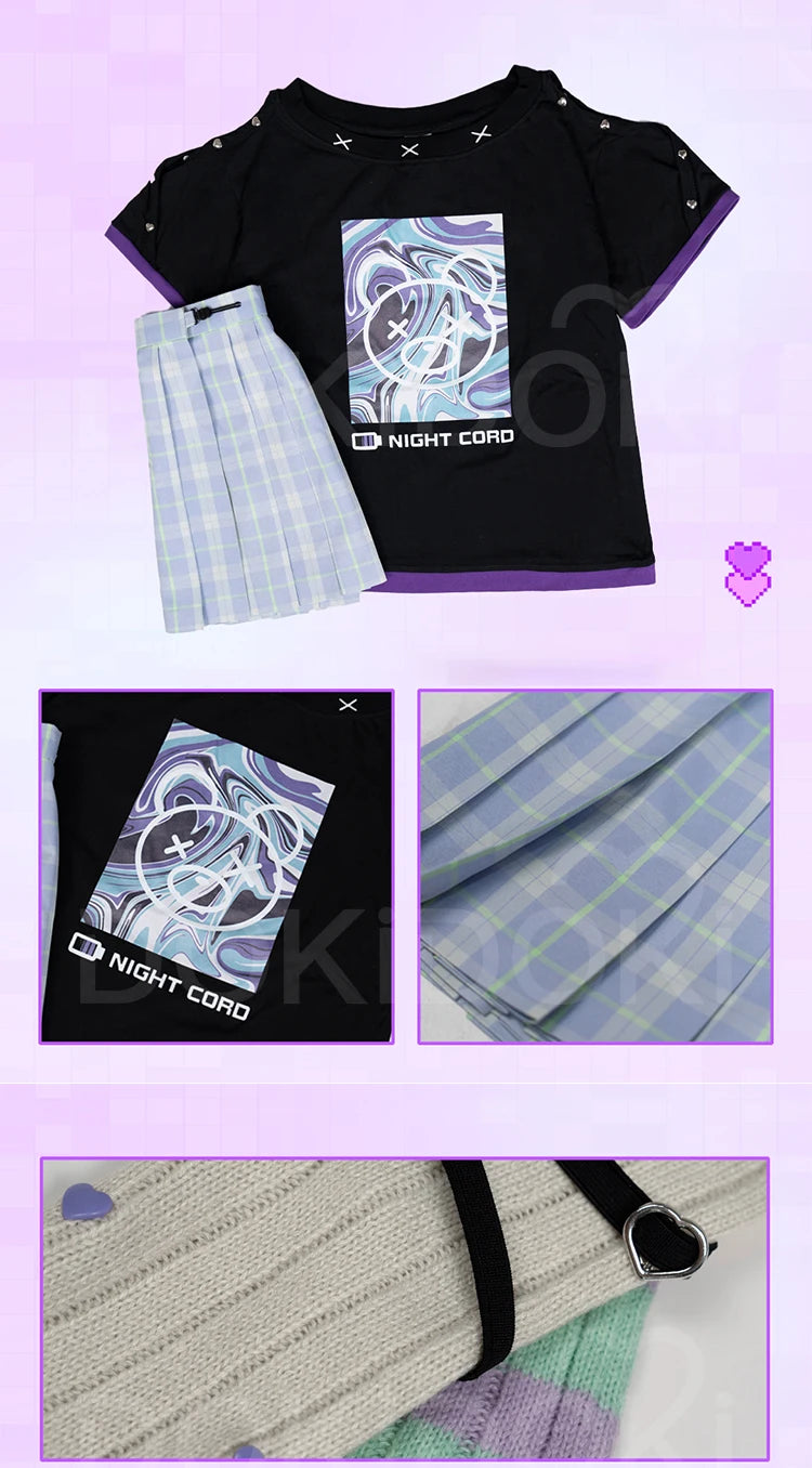 Yoisakii Kanadee Cosplay Costume Game DokiDoki-R Cosplay Women Cute Dress Cosplay Kanadee Bag Earphones Halloween Wig
