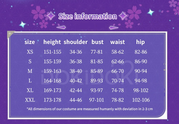 Please read the size chart carefully. (◕ˇ∀ˇ◕)Welcome contact us for help about size choosing with your height ,weight ,waist ,bust,hip measurement.