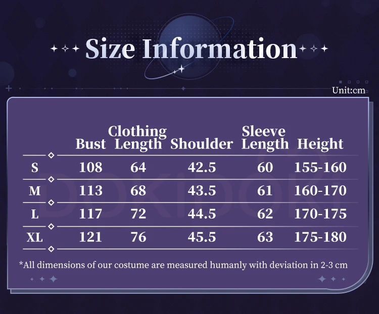 Please read the size chart carefully. (◕ˇ∀ˇ◕)Welcome contact us for help about size choosing with your height ,weight ,waist ,bust,hip measurement.