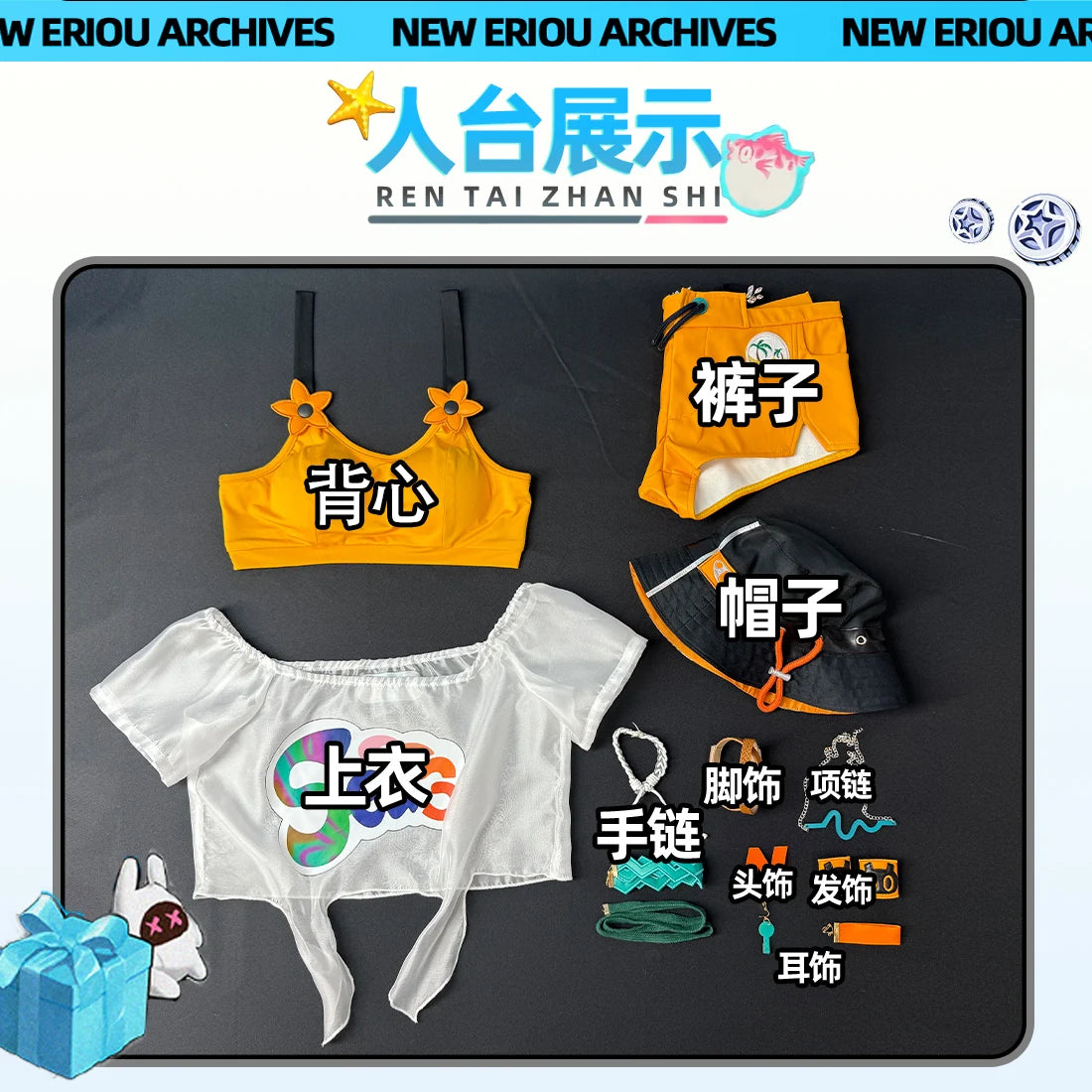 Components: Top,Bra,shorts,Hat,Headwear,Earrings,Necklace,Accessory