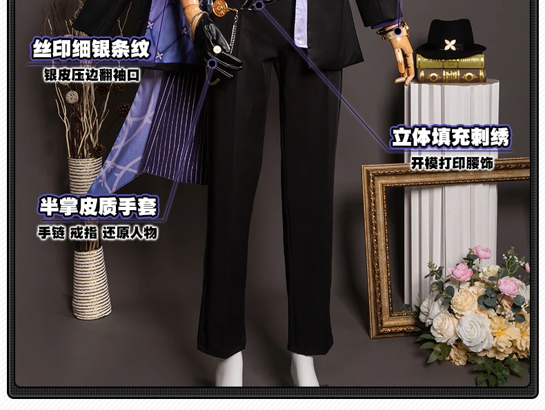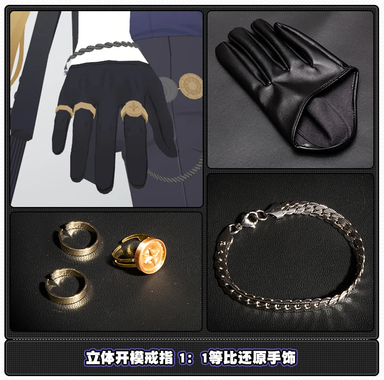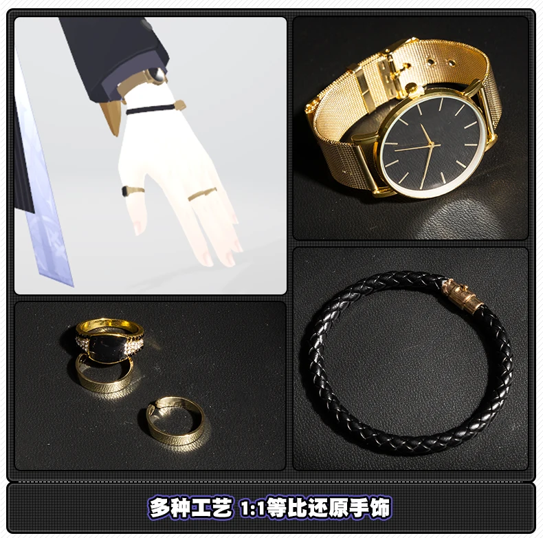 Components: Top,Pants,Jackets,Watches Props,Earrings,Rings,Hat,Mask