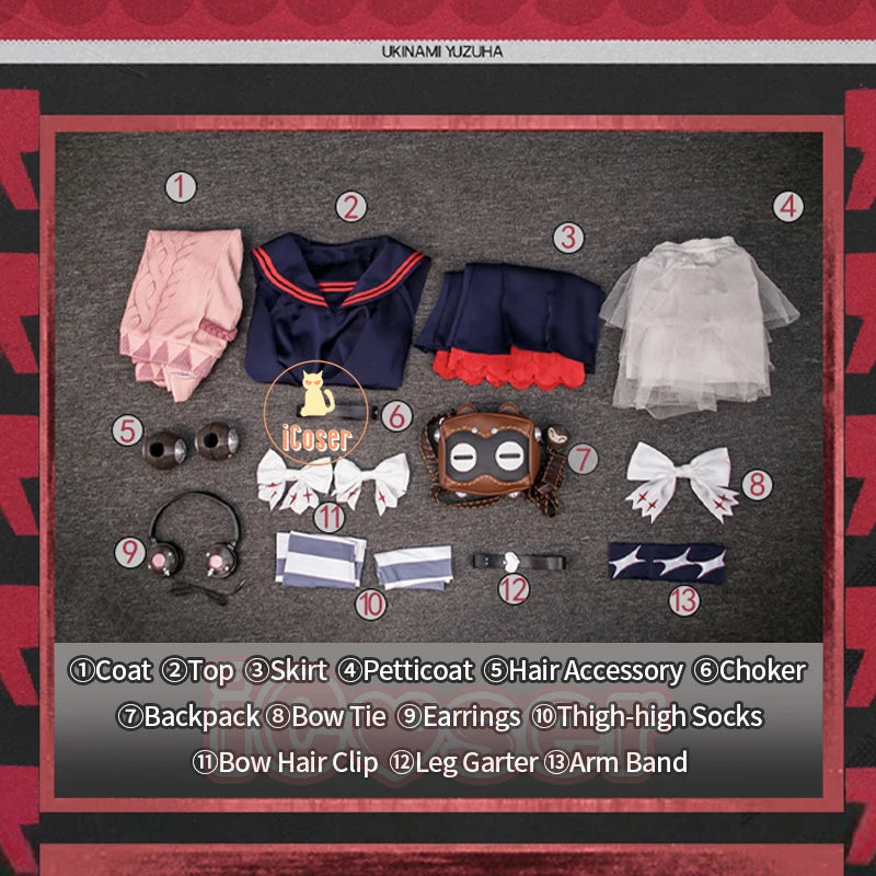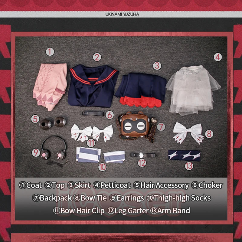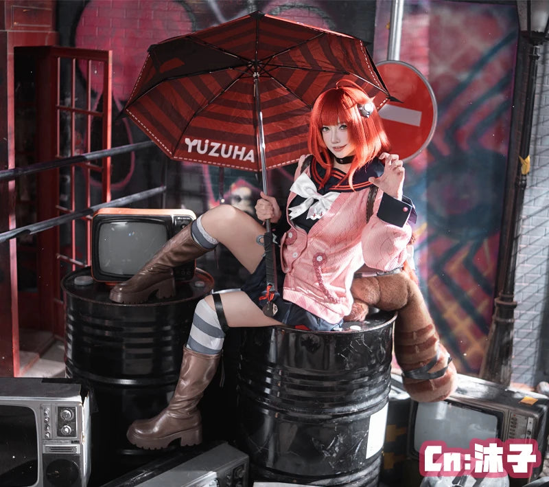 Zenless Zone Zero Ukinami Yuzuha Cosplay Costume Wig Skirt Uniform Earrings Headwear Spook Shack Halloween Party for Women Girls