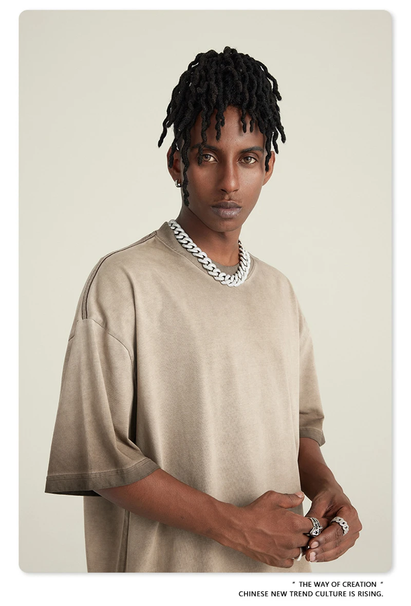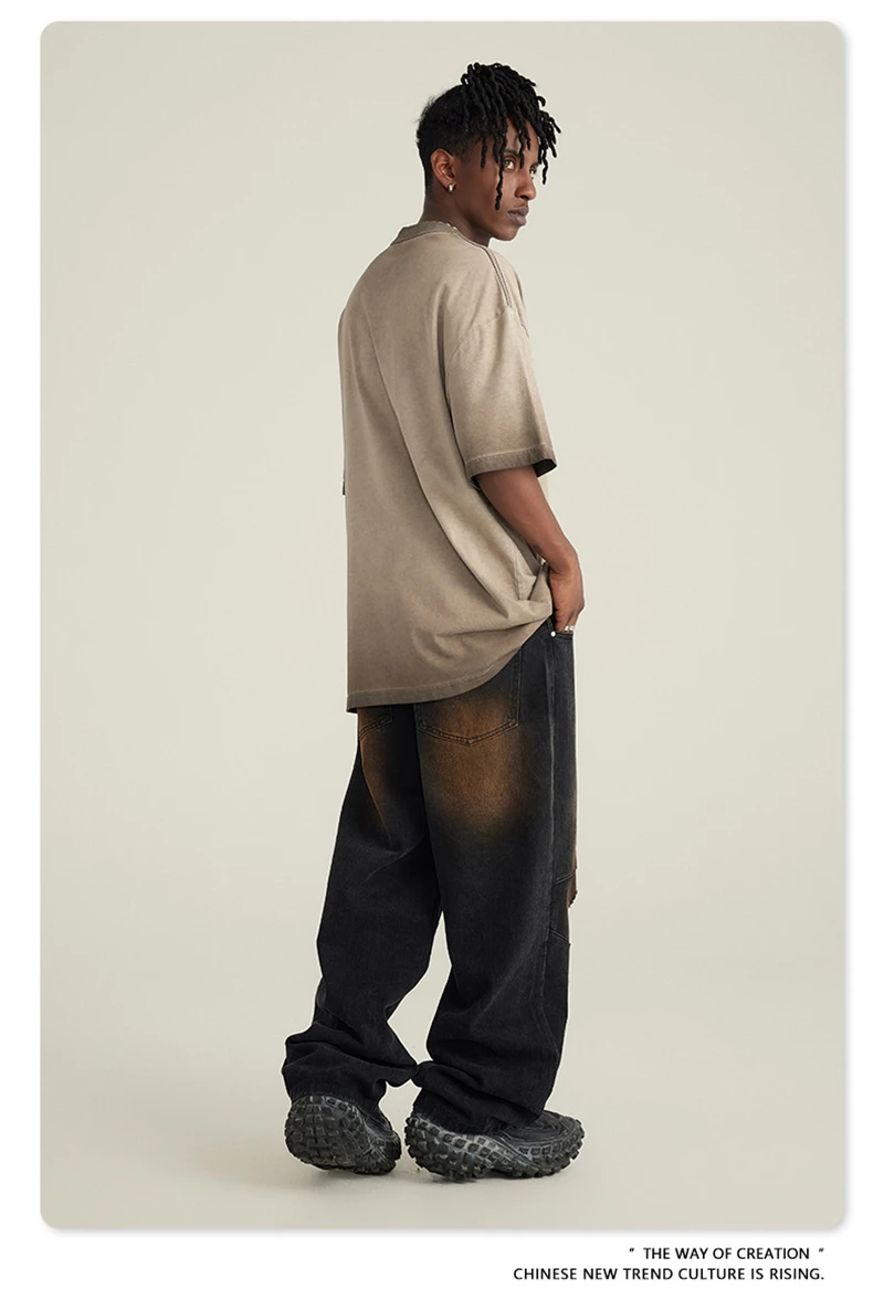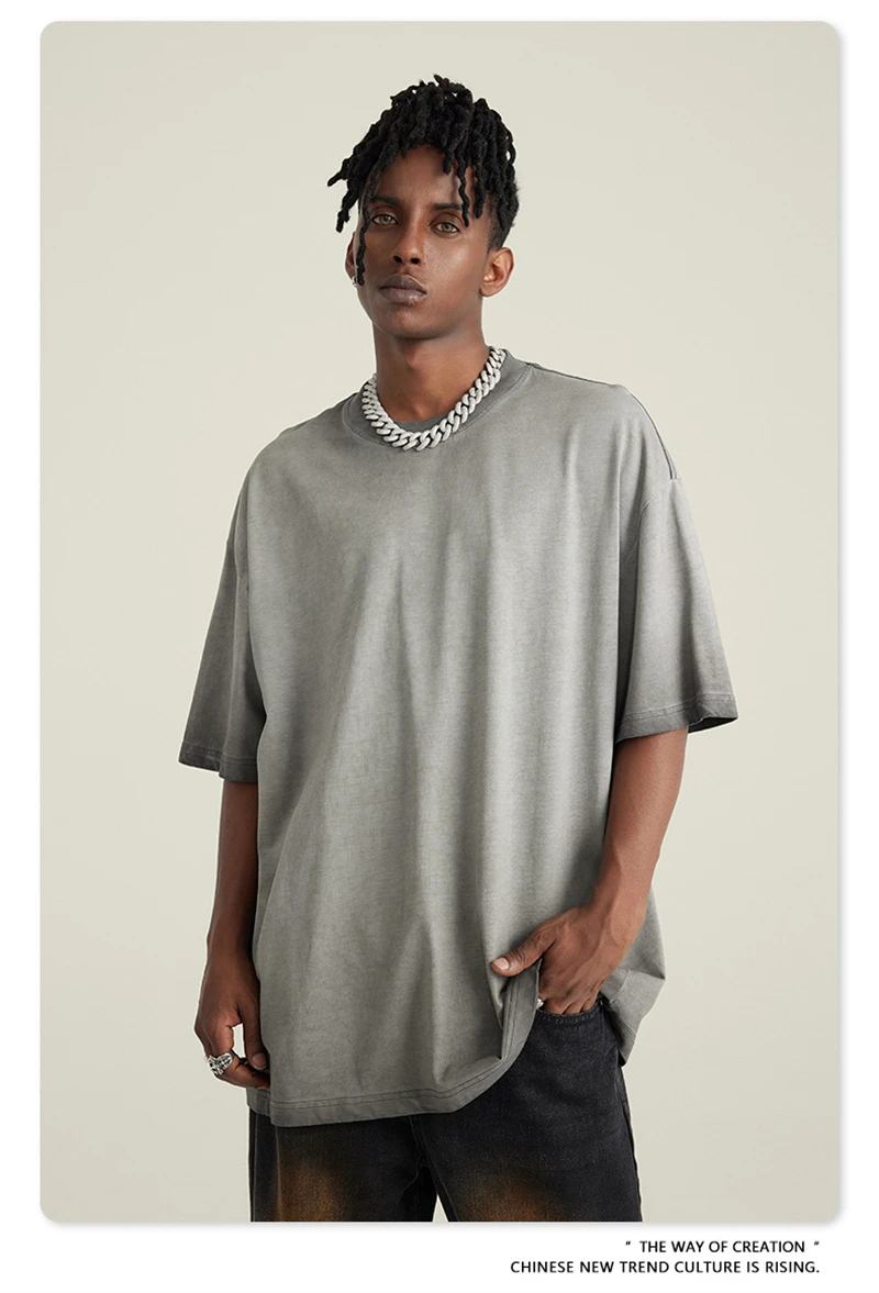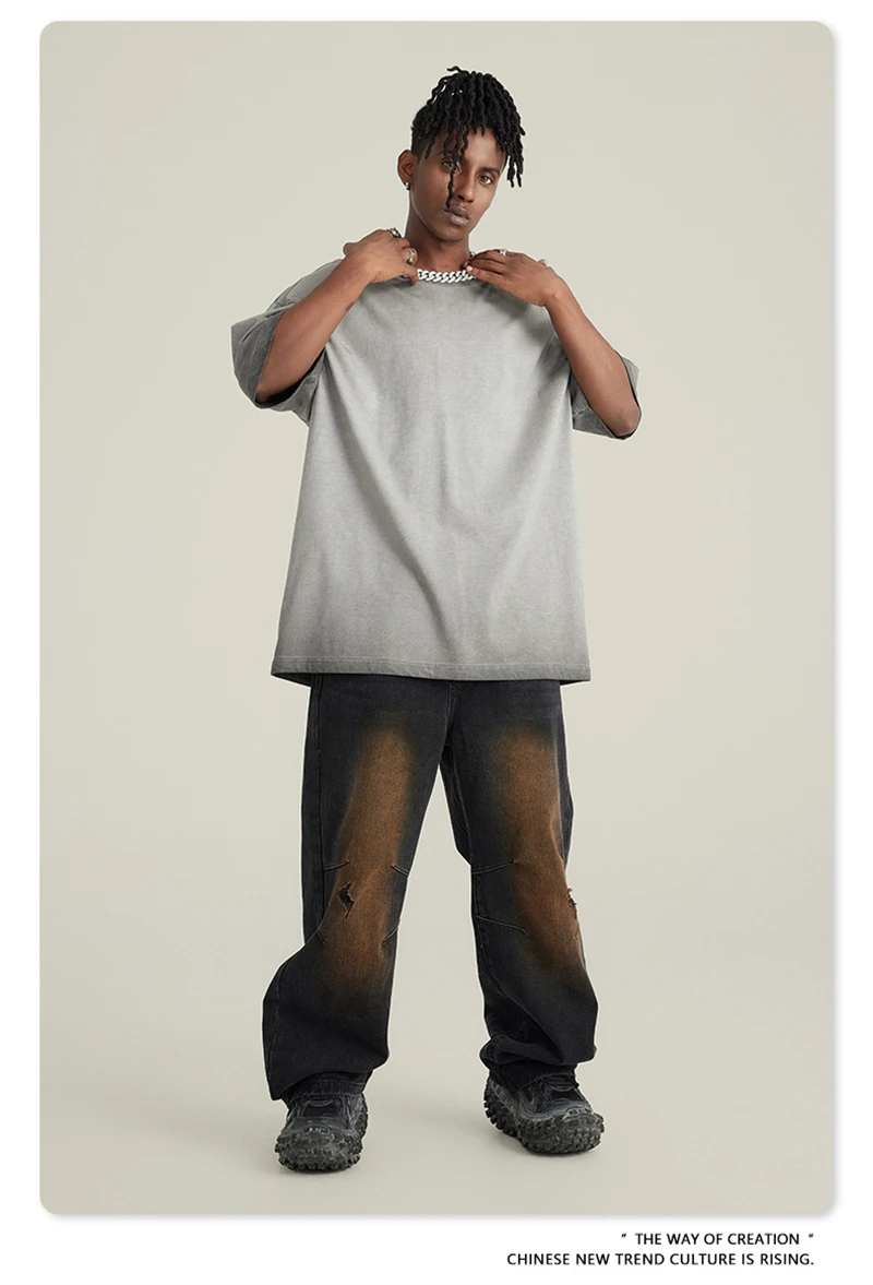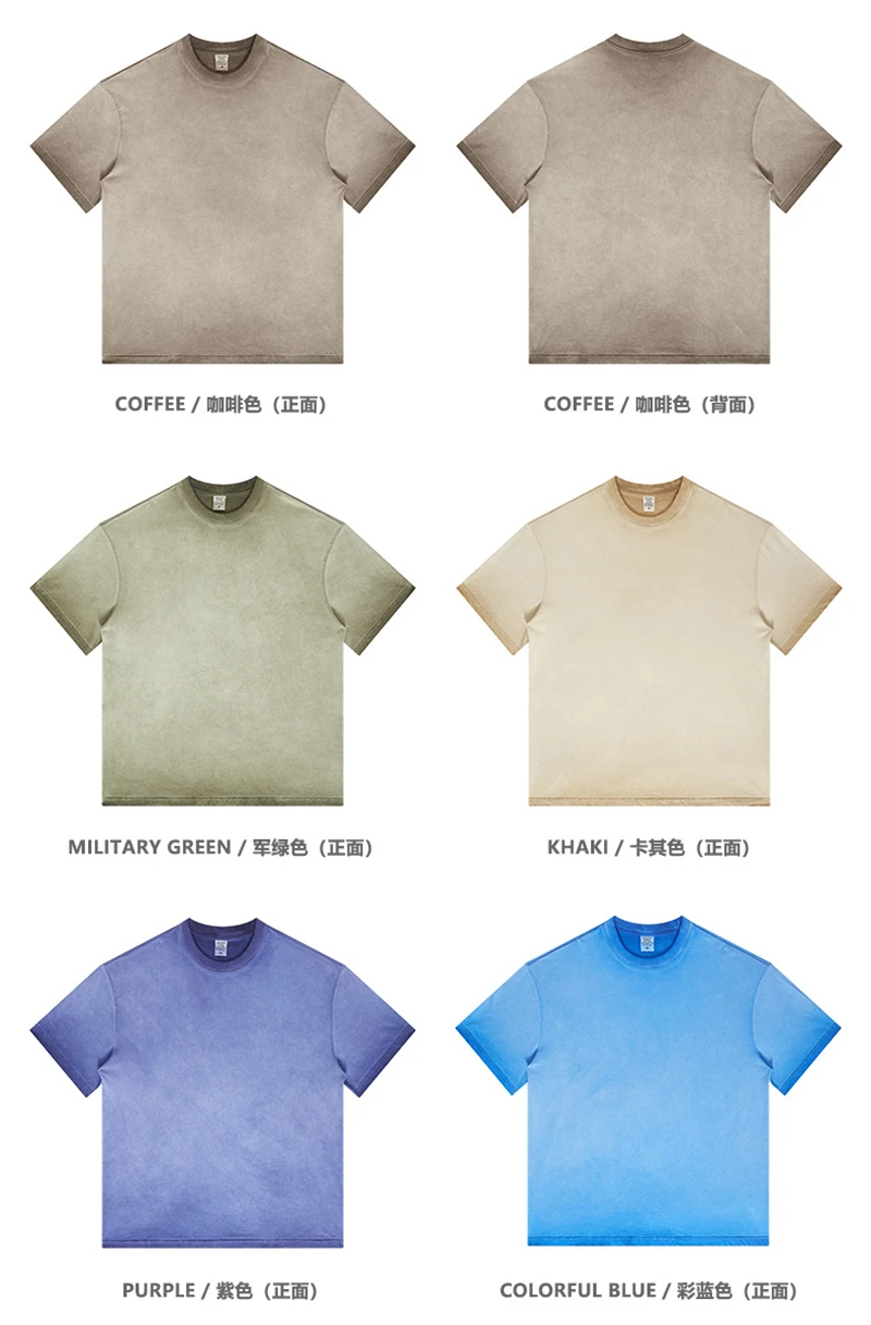 ZODF 2023 Men's Summer 255G Wash Gradient Fried Cotton T Shirt Round Neck Short Sleeve American Retro Loose T-Shirt HY0547