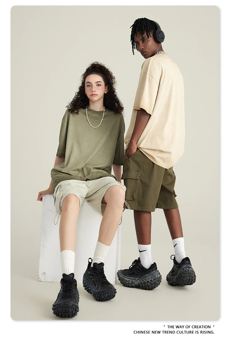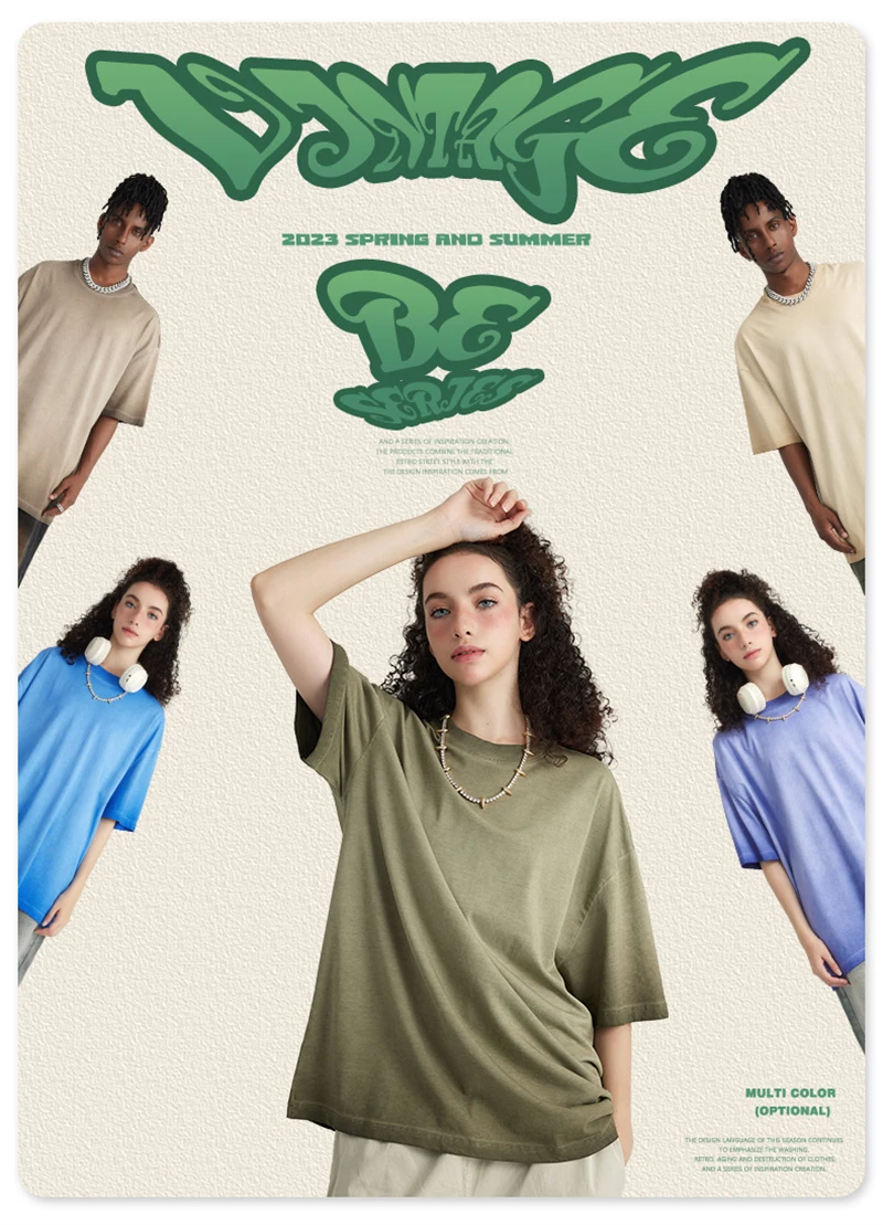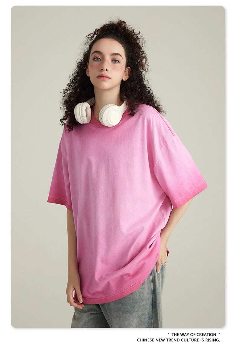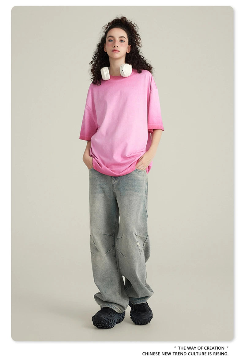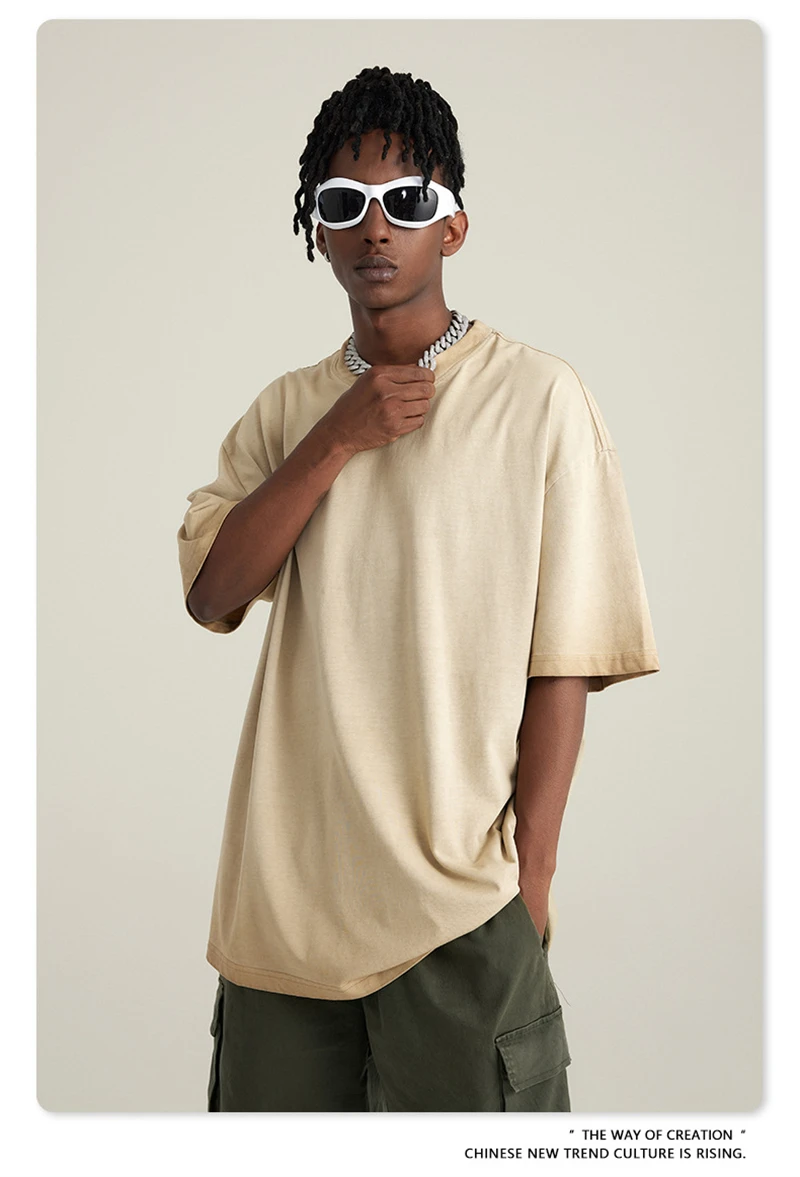 ZODF 2023 Men's Summer 255G Wash Gradient Fried Cotton T Shirt Round Neck Short Sleeve American Retro Loose T-Shirt HY0547