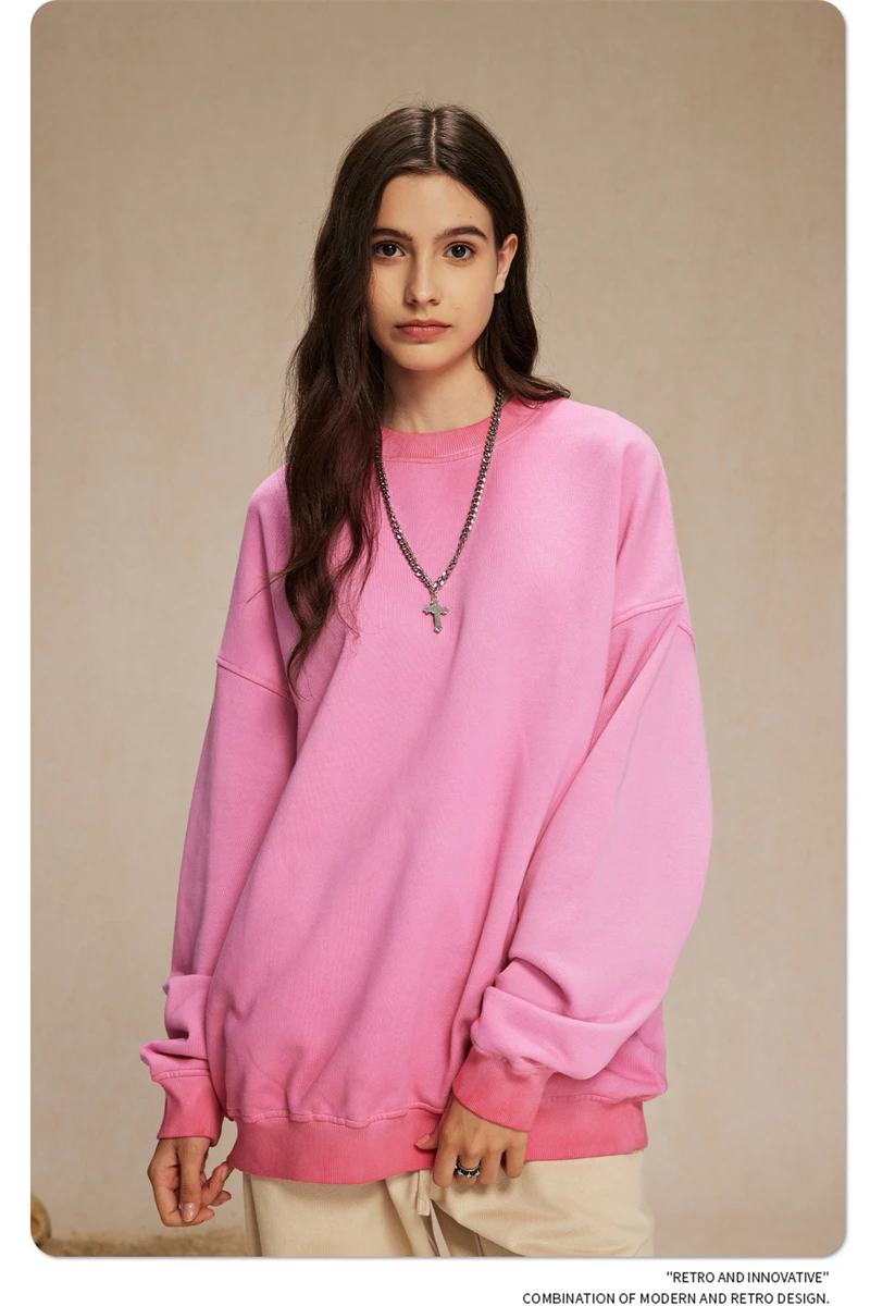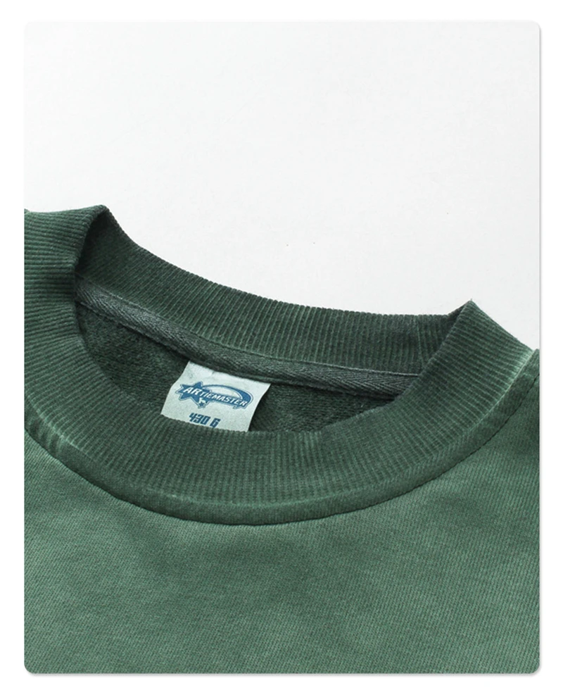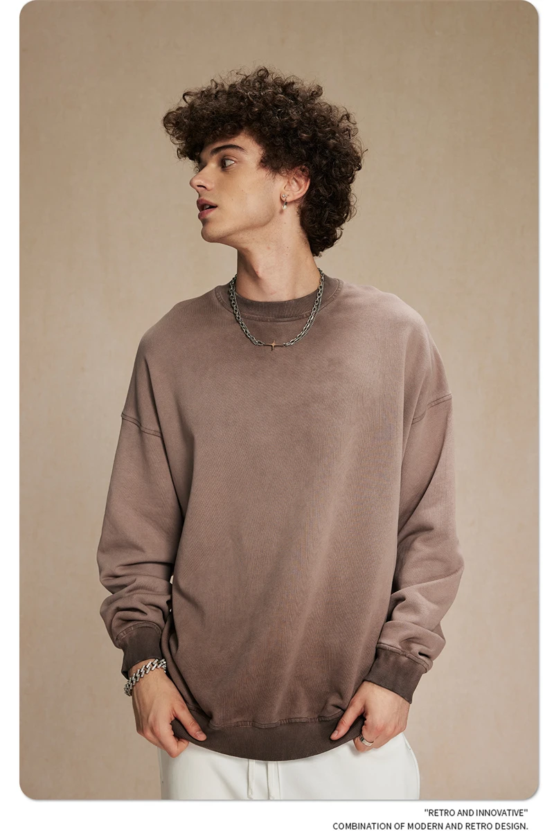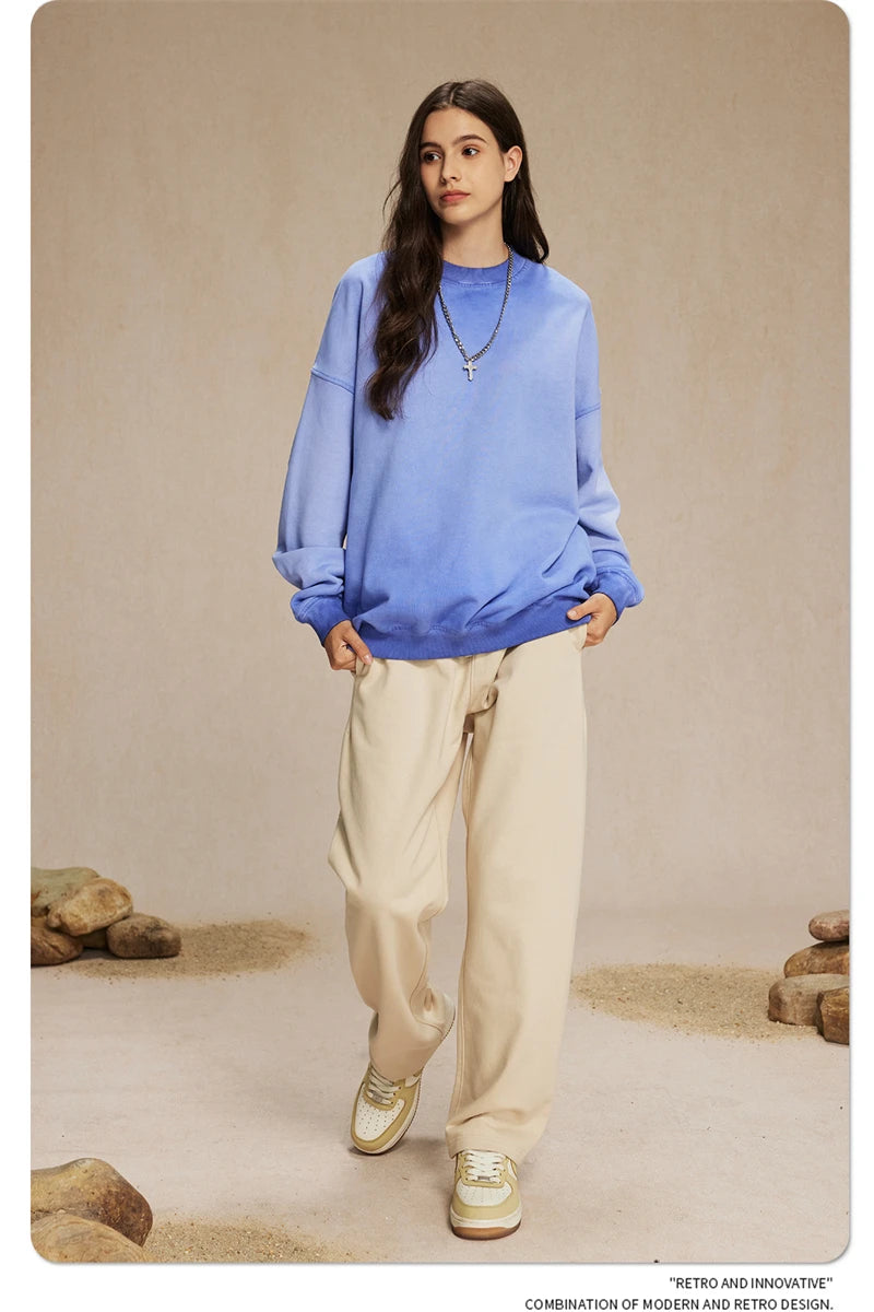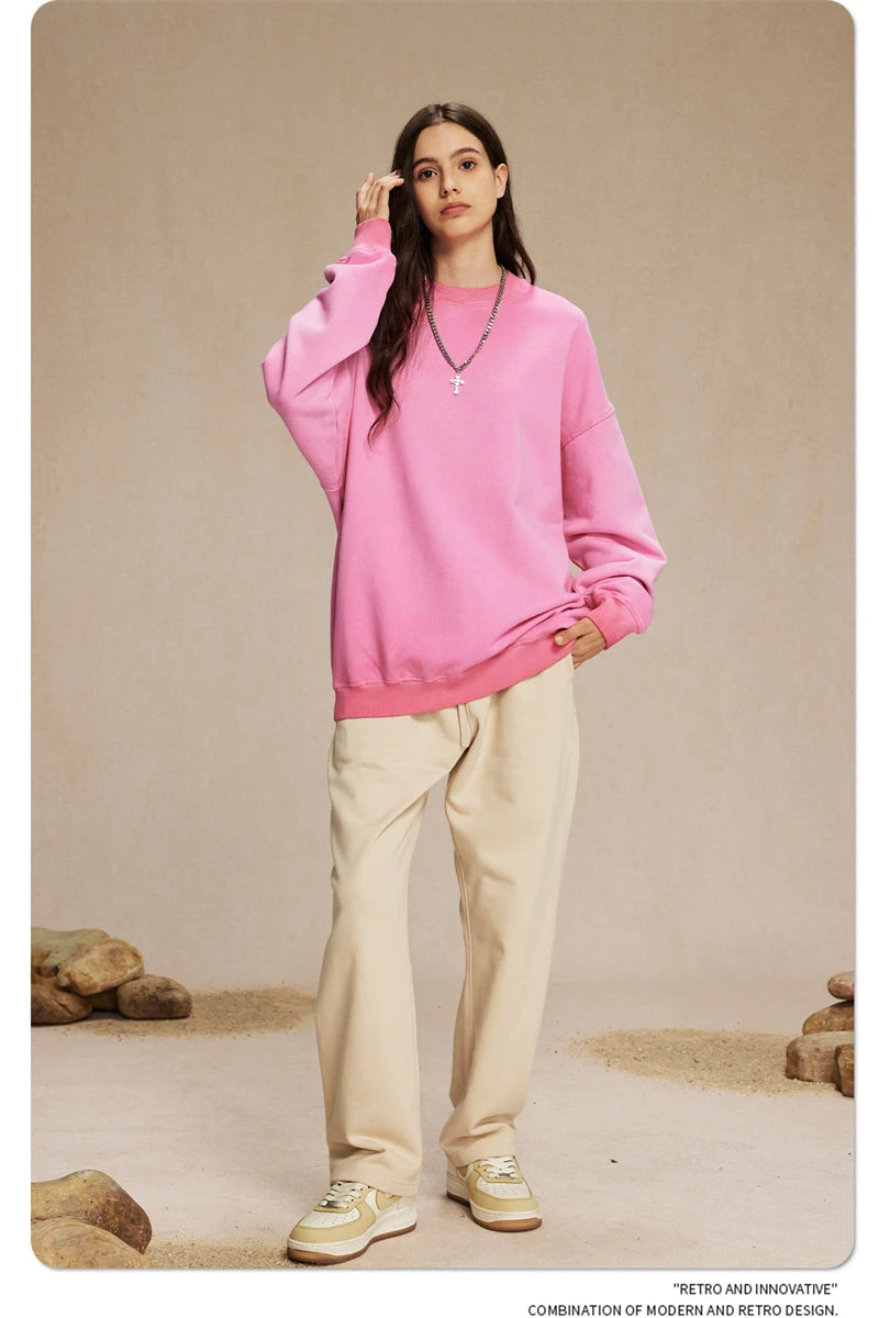 ZODF 2024 Autumn Men's Washed Sweatshirt Unisex Women Retro Solid 430gsm Terry Cotton O Neck Pullovers Coat HY0880