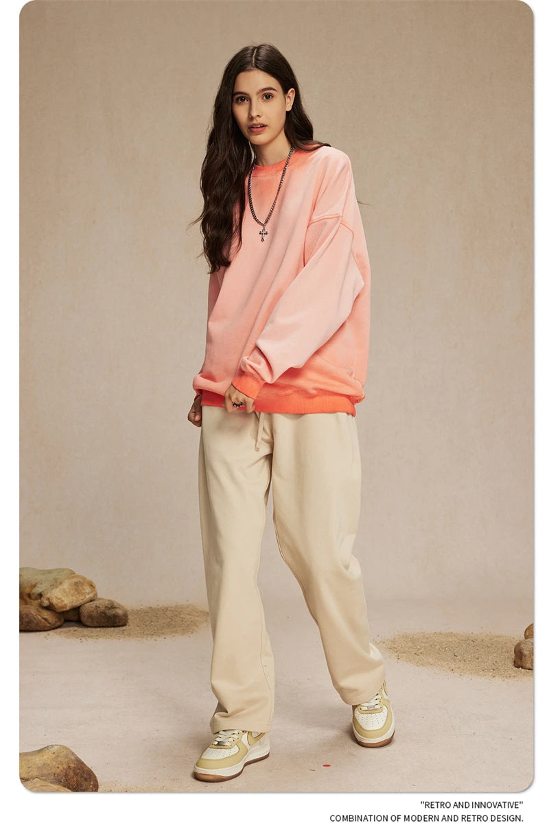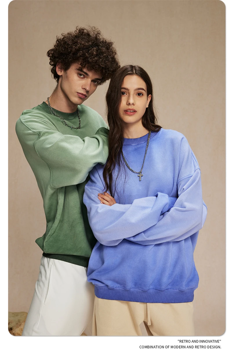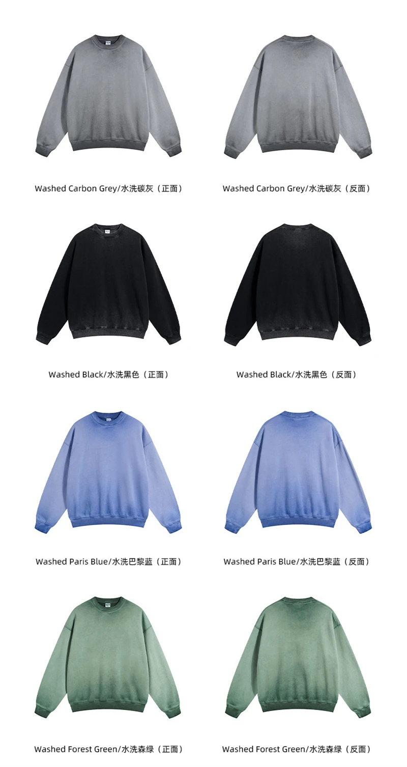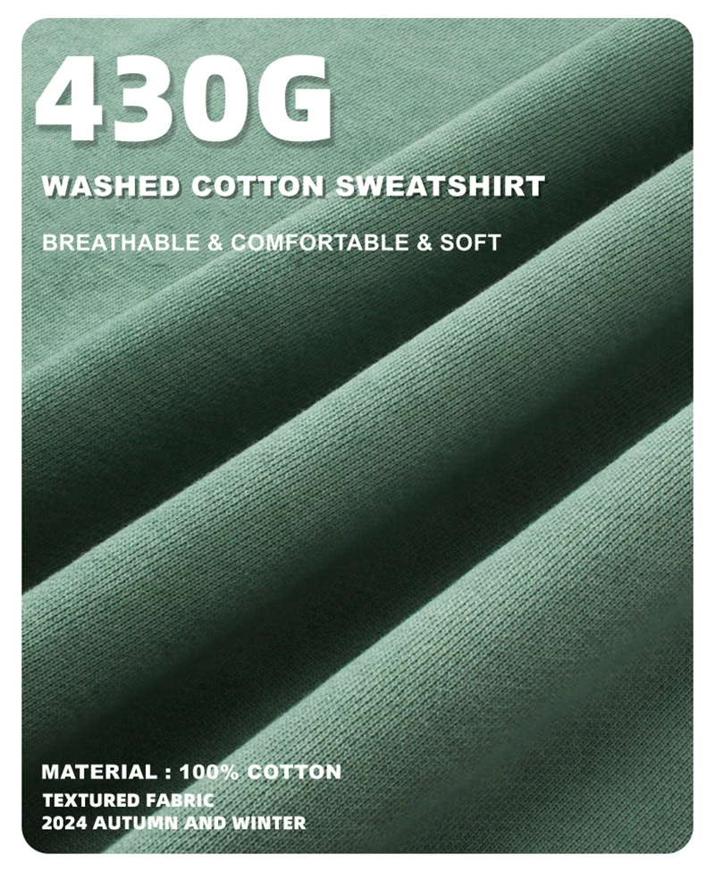 ZODF 2024 Autumn Men's Washed Sweatshirt Unisex Women Retro Solid 430gsm Terry Cotton O Neck Pullovers Coat HY0880