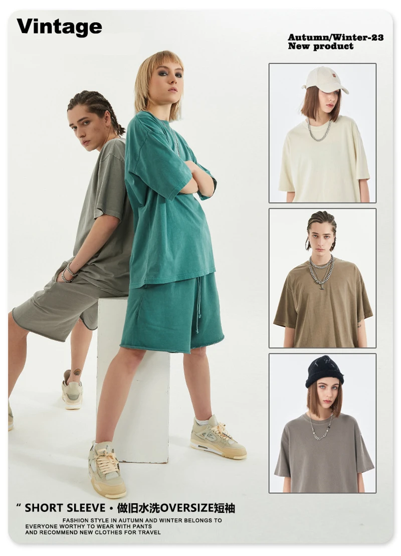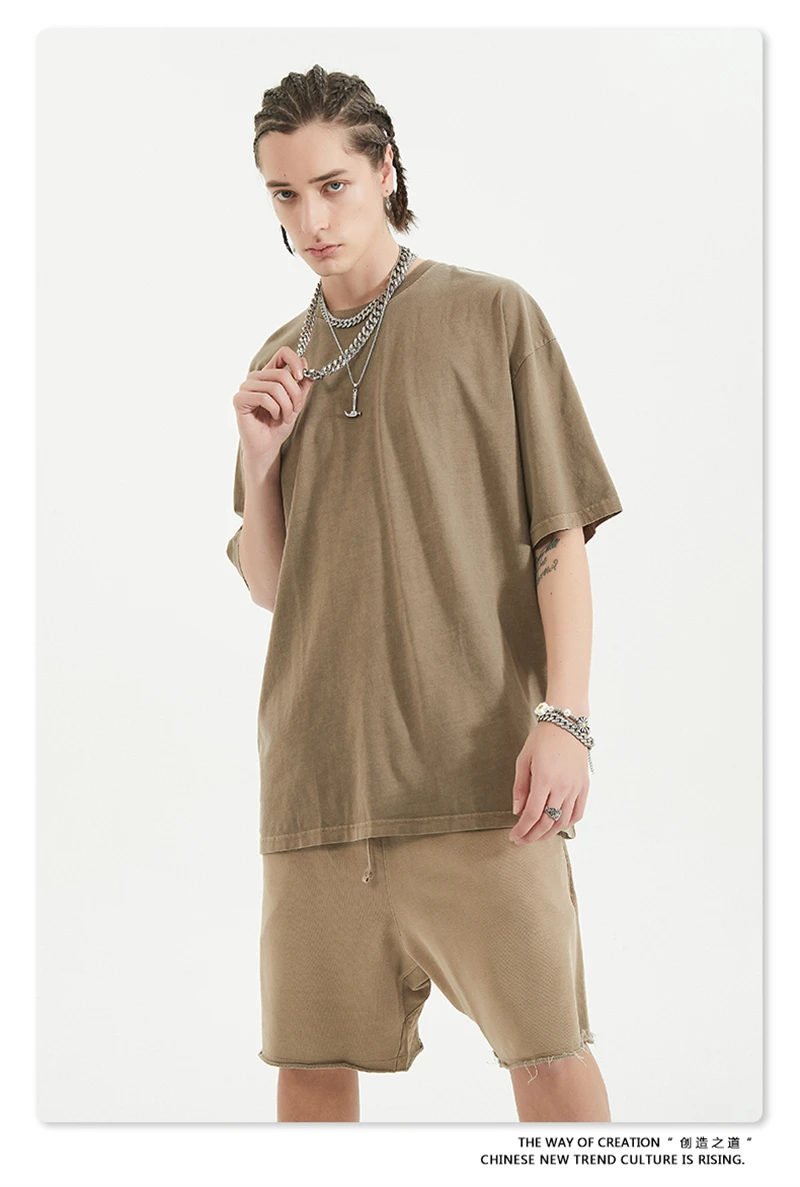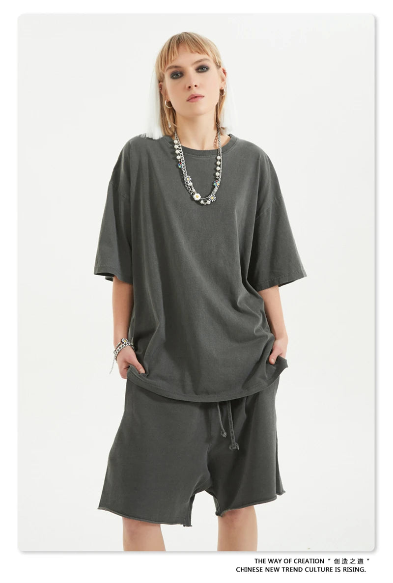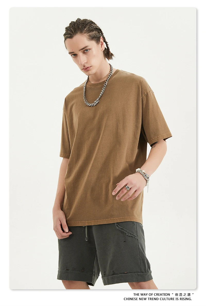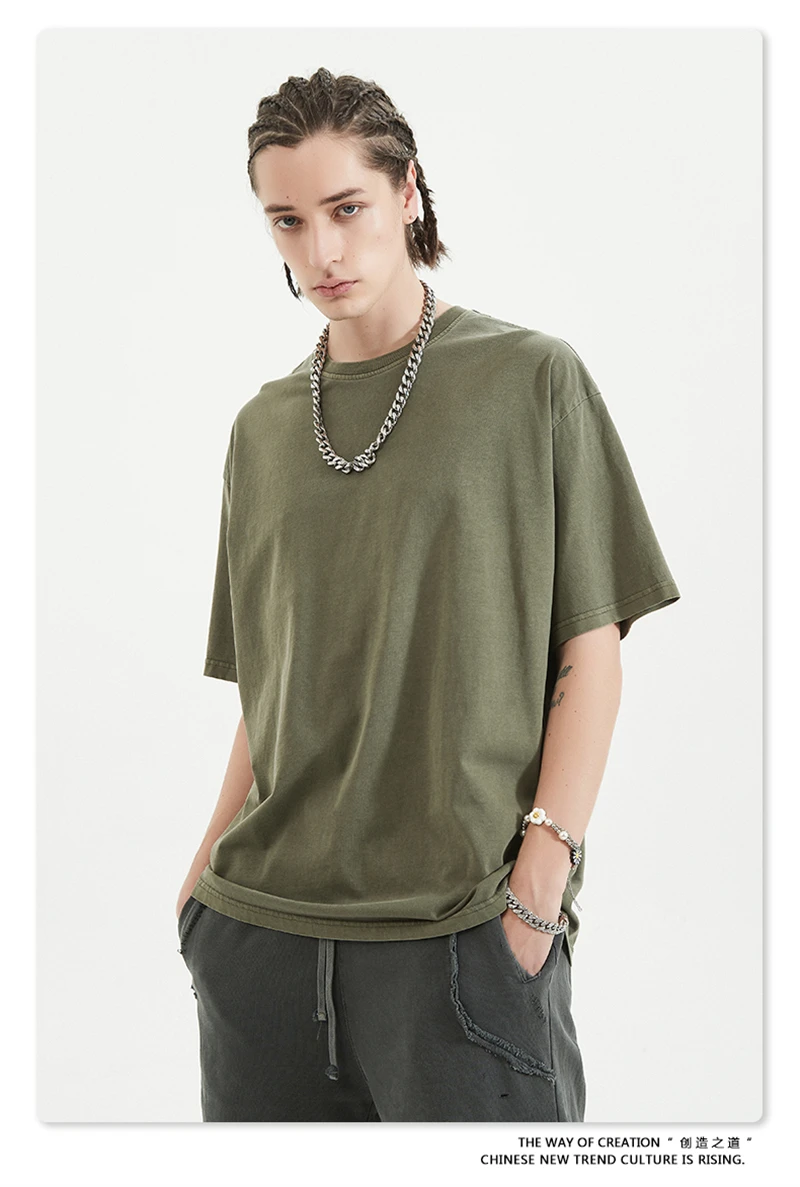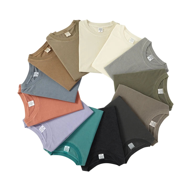 ZODF 2024 Summer Men 200gsm Washed Cotton Solid T Shirts Loose Unisex Male Casual Basic Comfortable T-Shirt Brand Tees HY0254