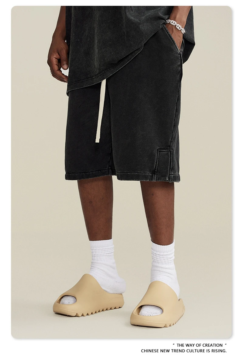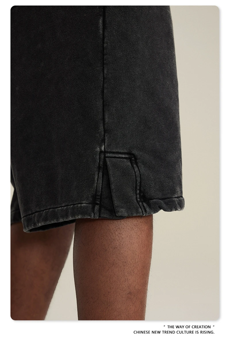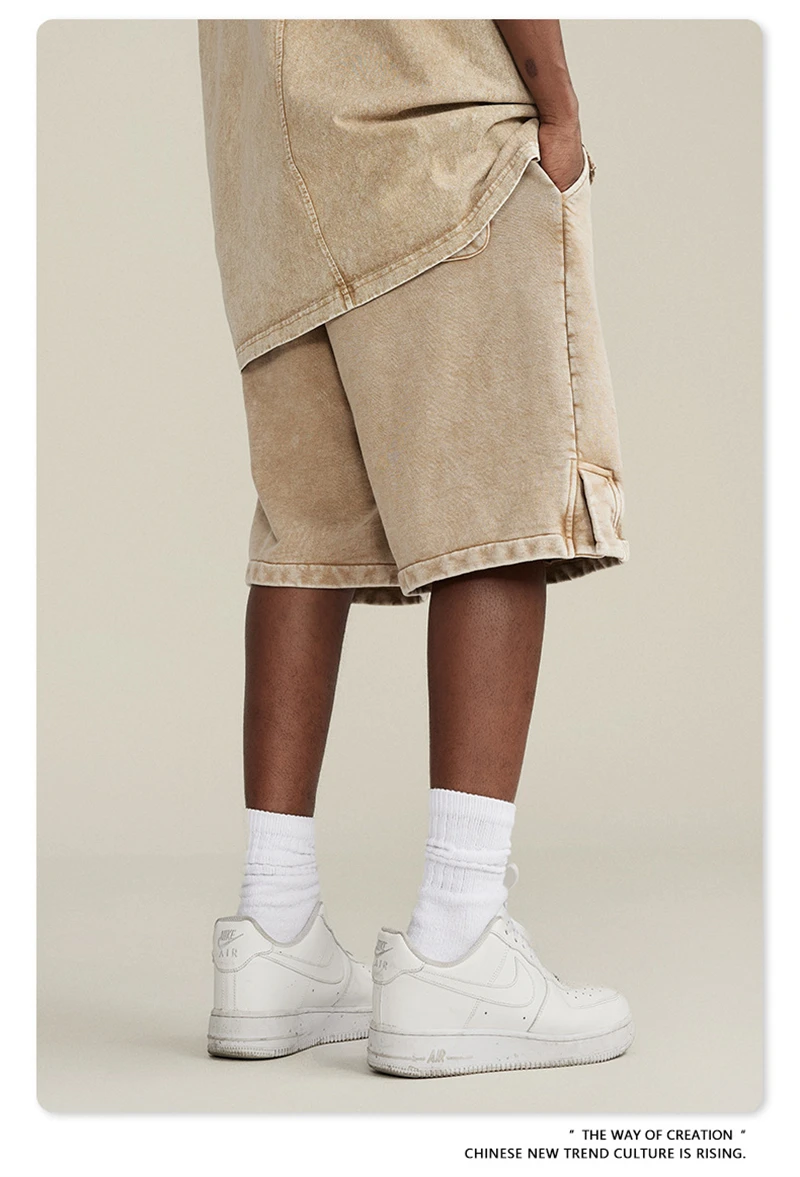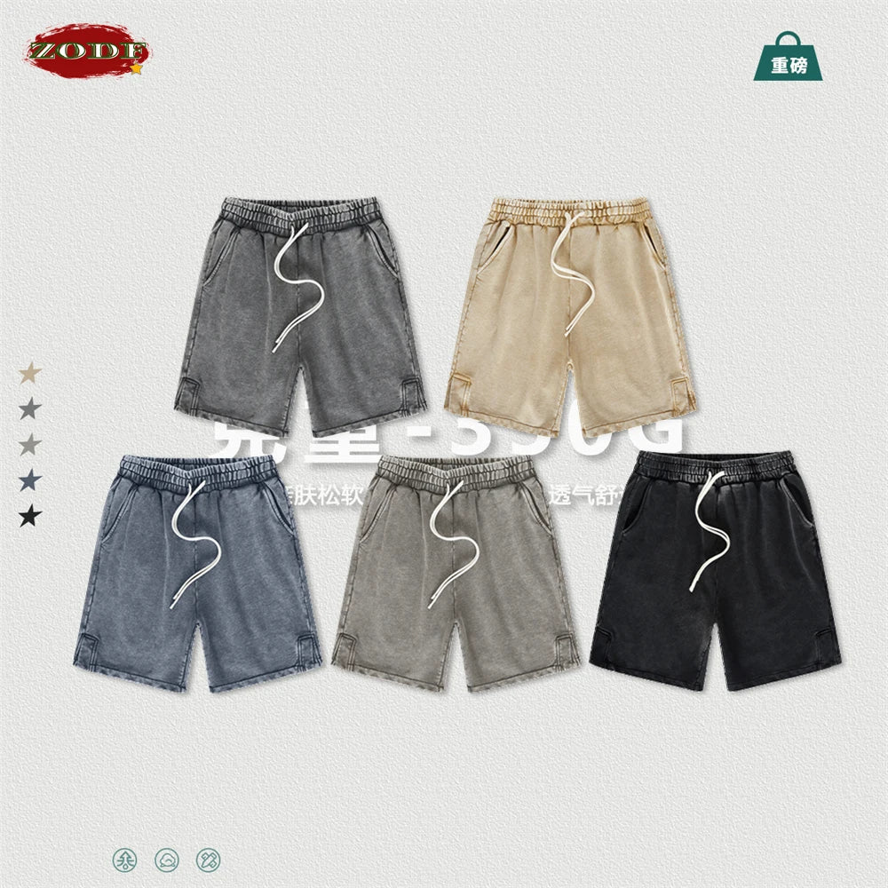 ZODF 2024 Summer Men 350gsm Washed Cotton Shorts Unisex Retro High Street Loose Side Slit Short Pants Streetwears HY0839