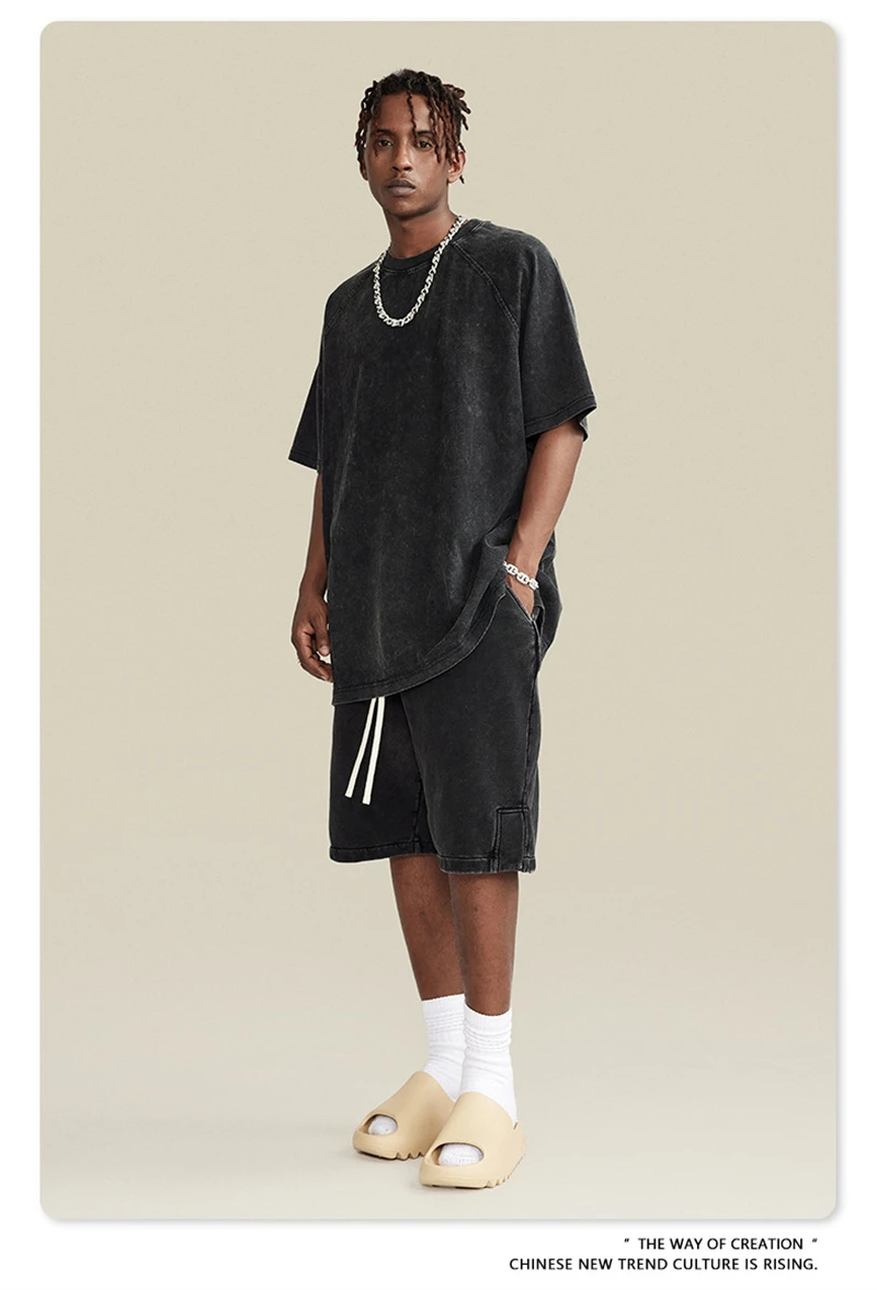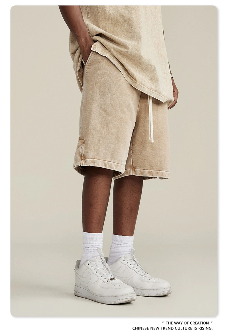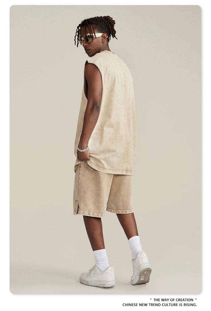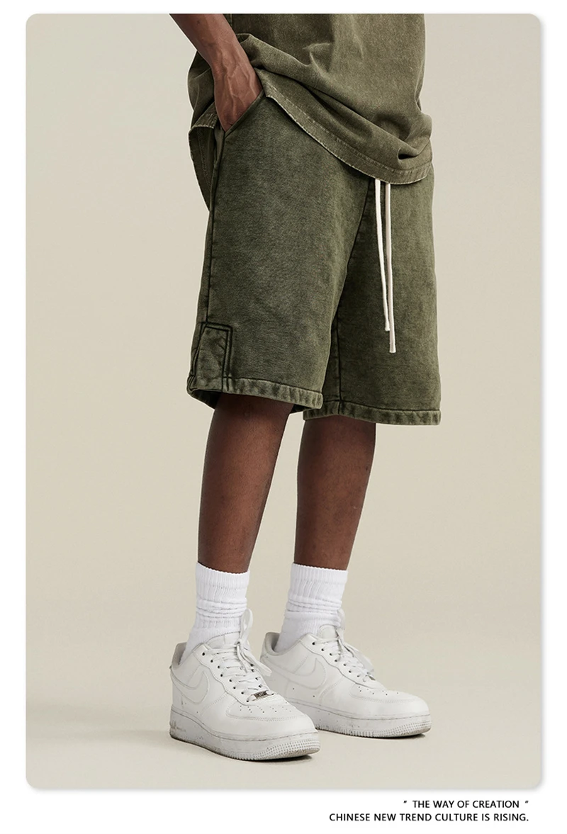 ZODF 2024 Summer Men 350gsm Washed Cotton Shorts Unisex Retro High Street Loose Side Slit Short Pants Streetwears HY0839
