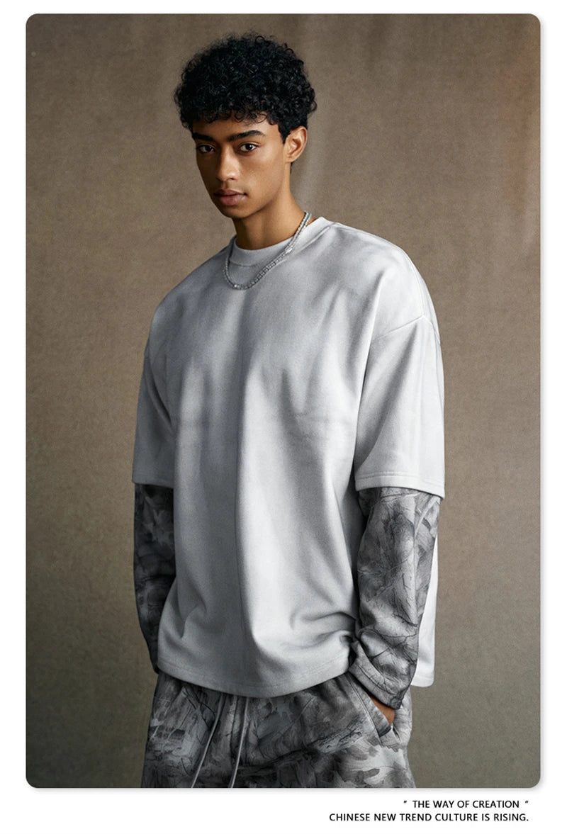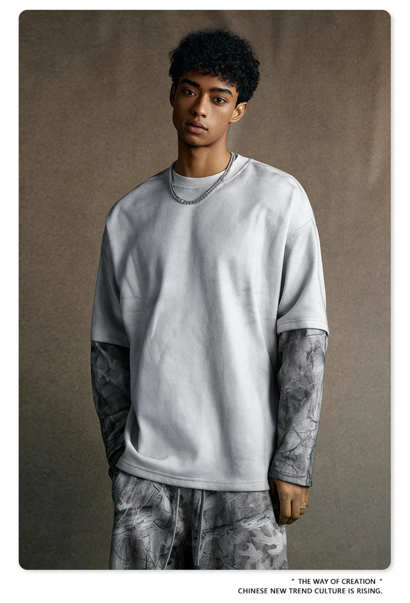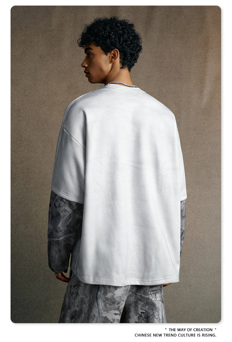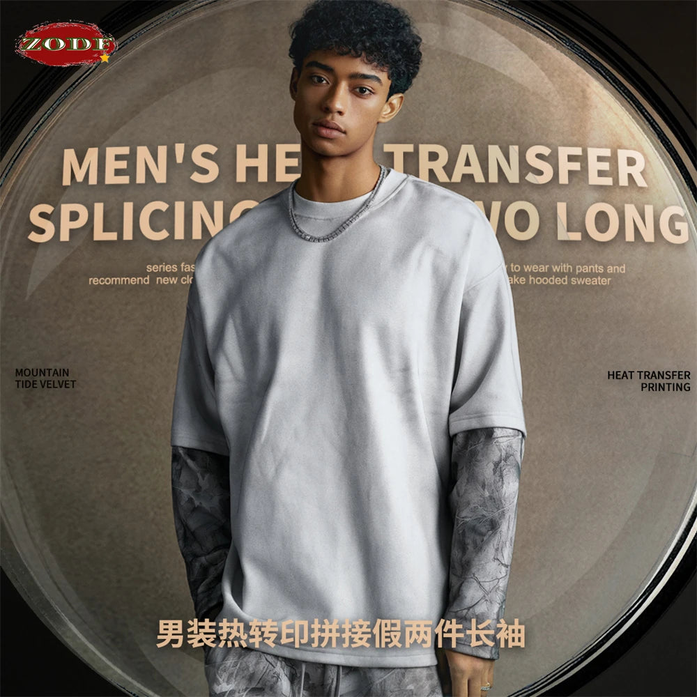 ZODF 2025 Autumn 340gsm Fake 2-Piece T-Shirt For Man Unisex Oversized Heat Transfer Printing Long Sleeve T Shirts Tee HY1151