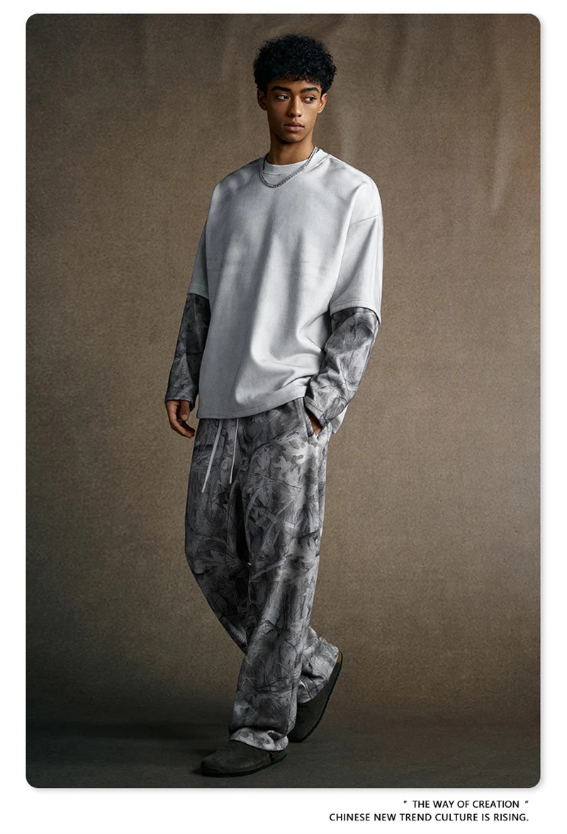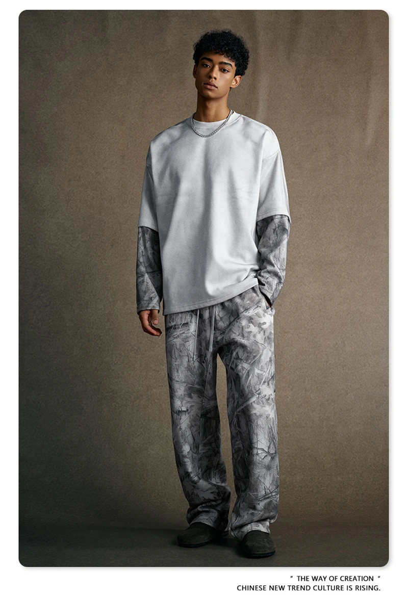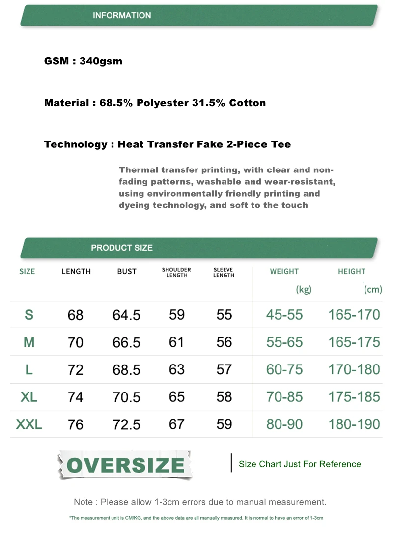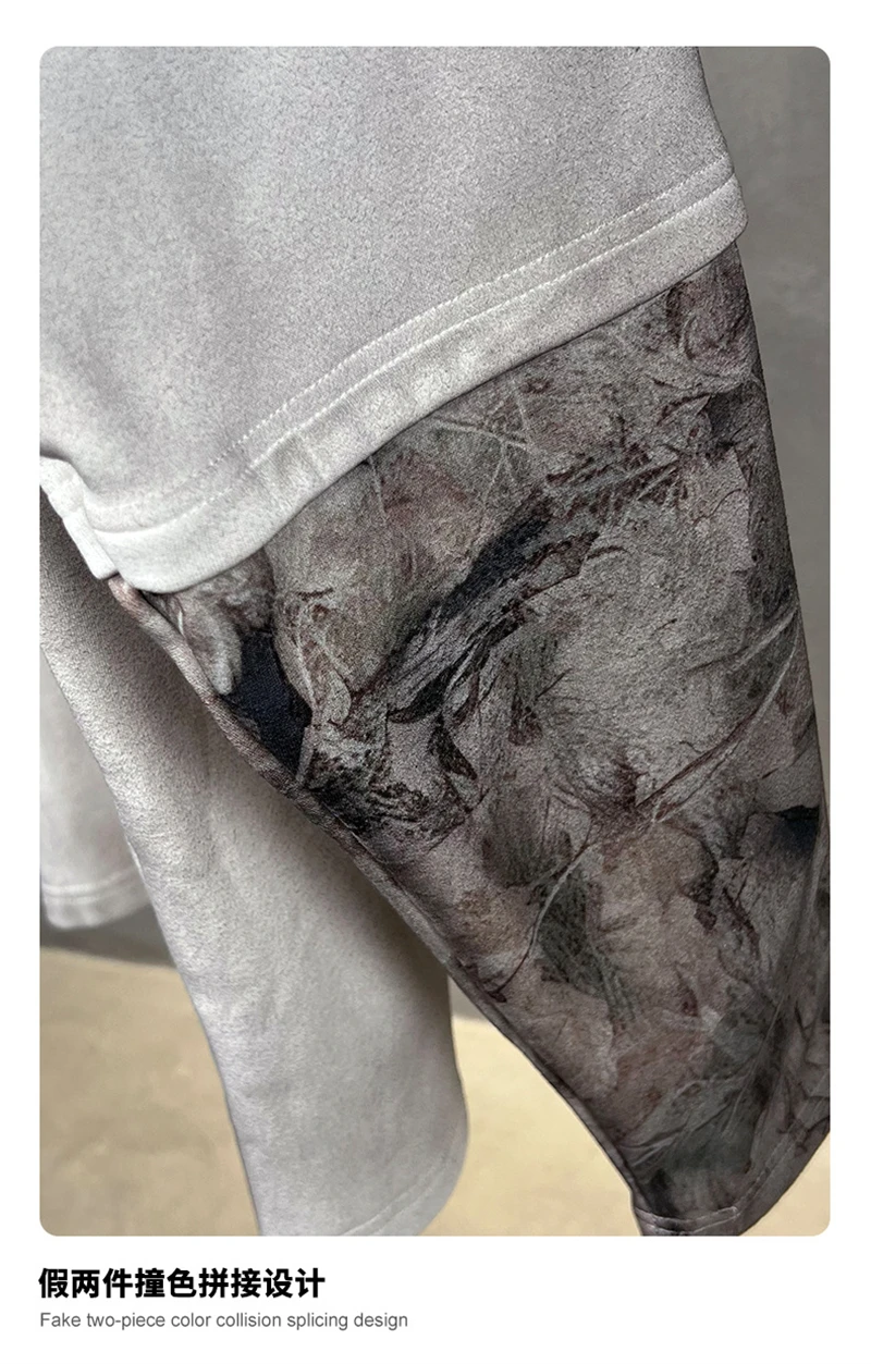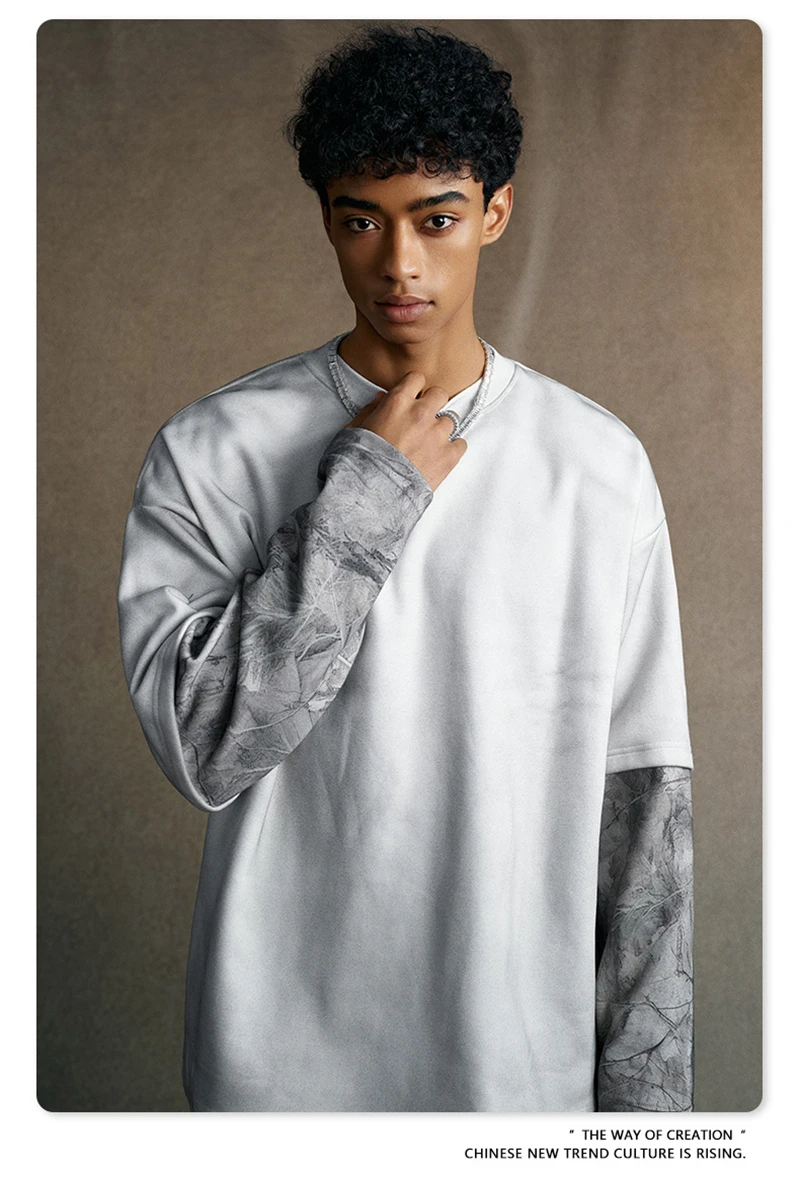 ZODF 2025 Autumn 340gsm Fake 2-Piece T-Shirt For Man Unisex Oversized Heat Transfer Printing Long Sleeve T Shirts Tee HY1151