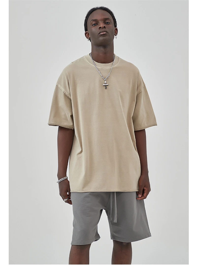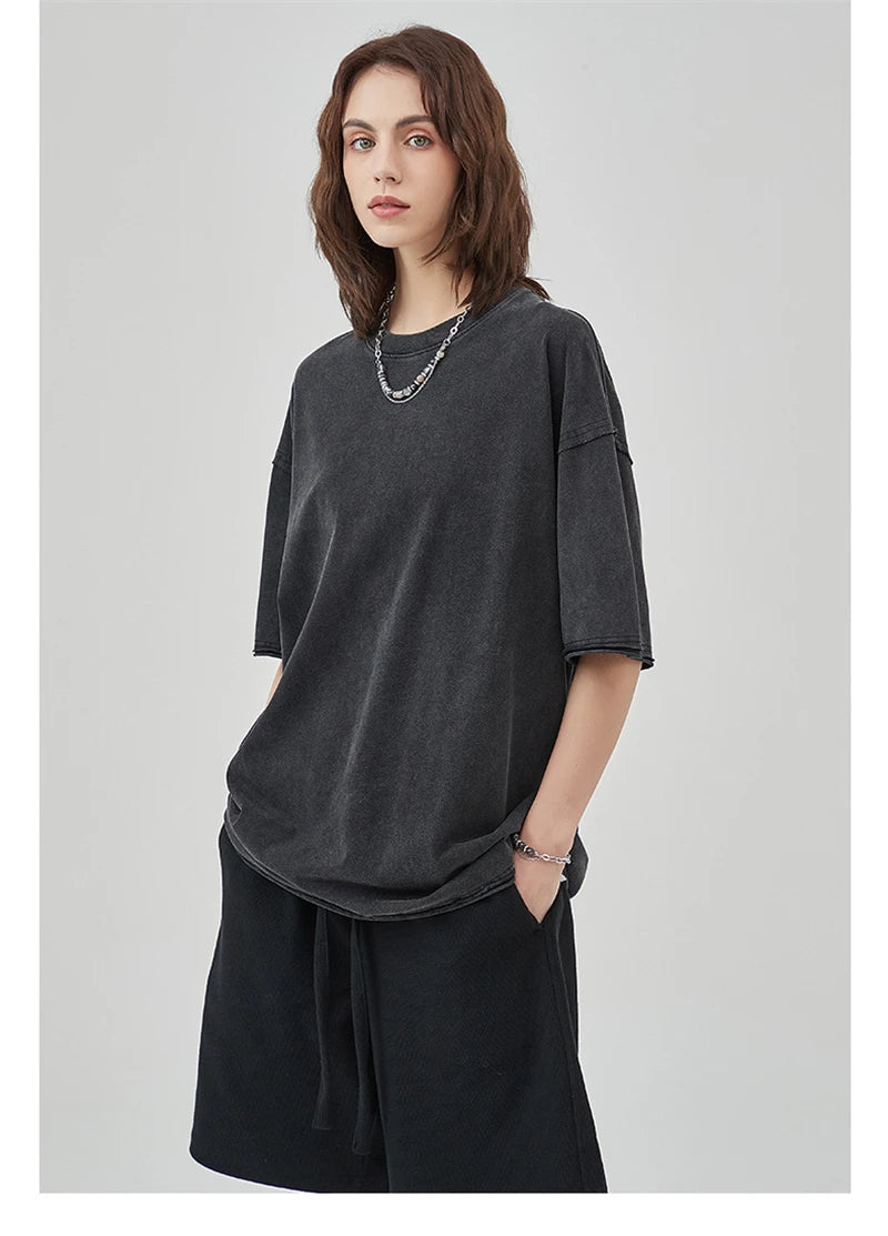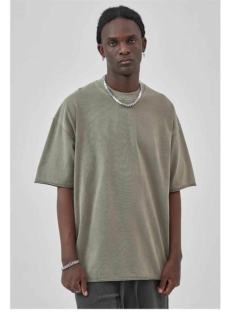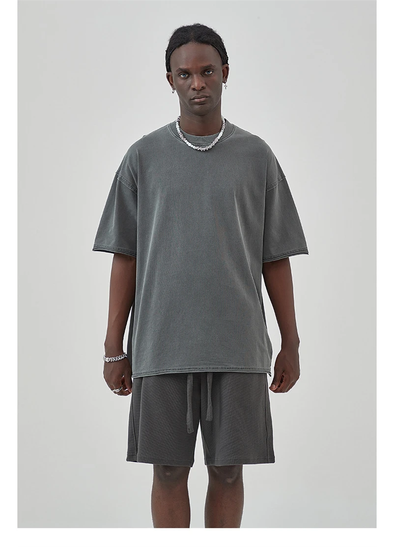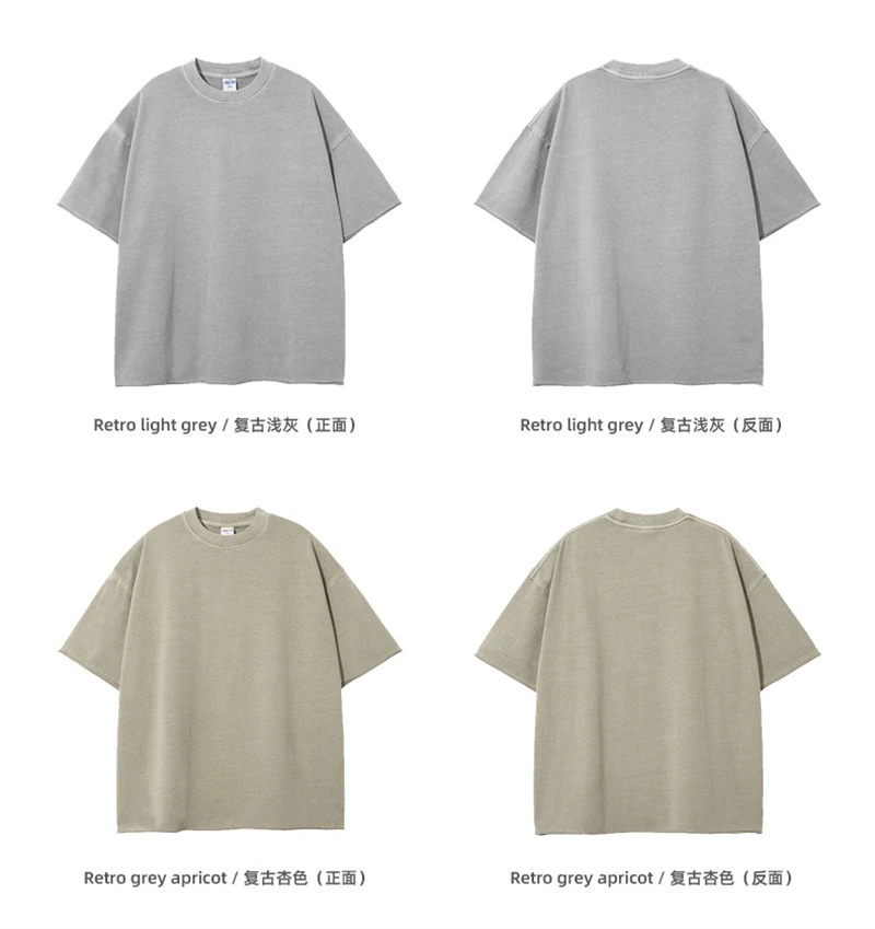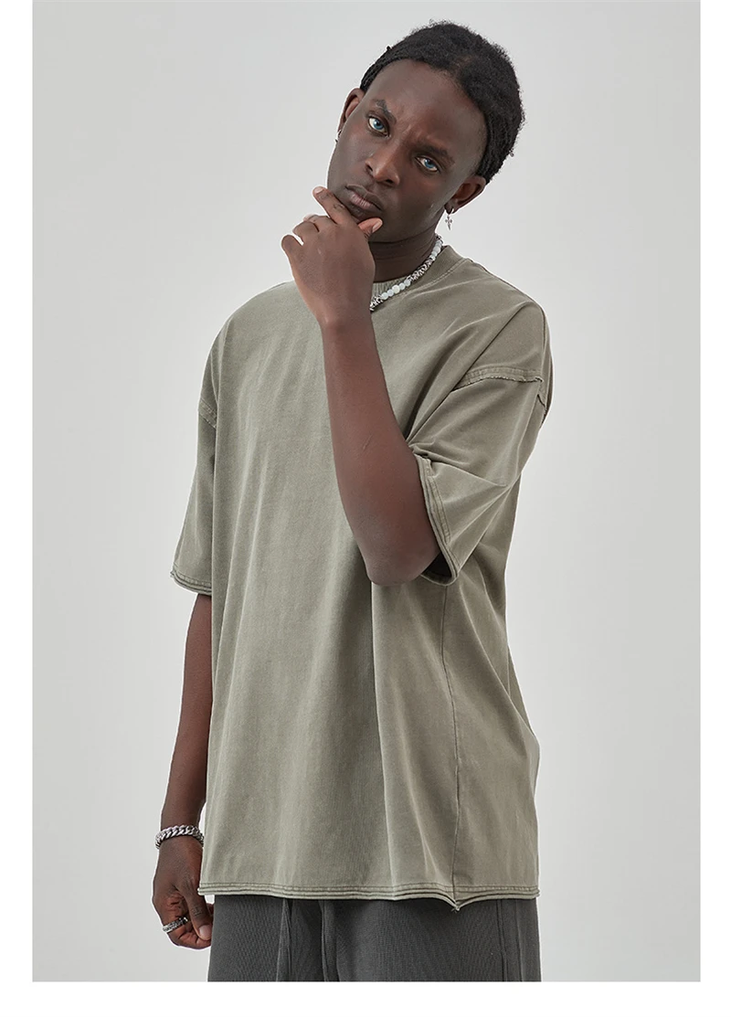 ZODF 2025 High Street Men Batik Washed Solid T Shirts Unisex Summer Loose Edge Noshrink 275gsm Cotton T-Shirt Streetwears HY0466
