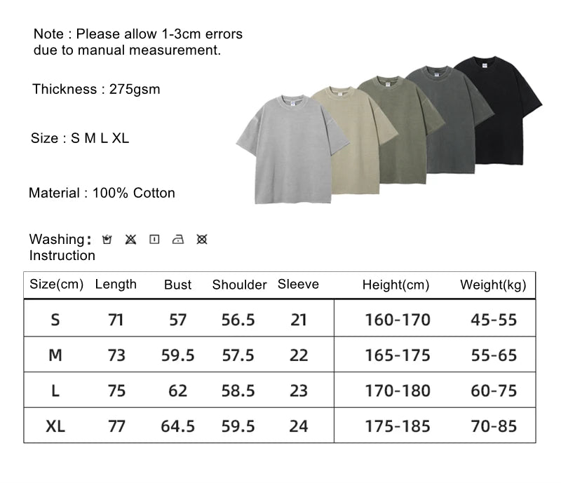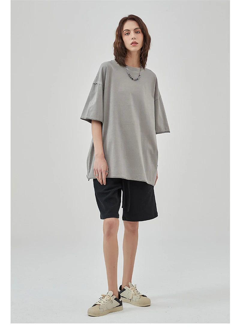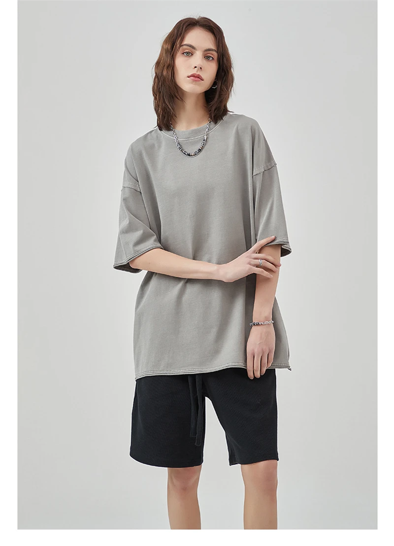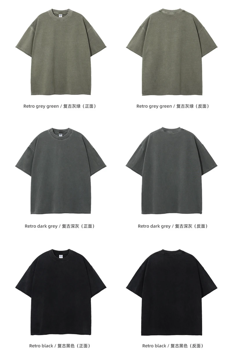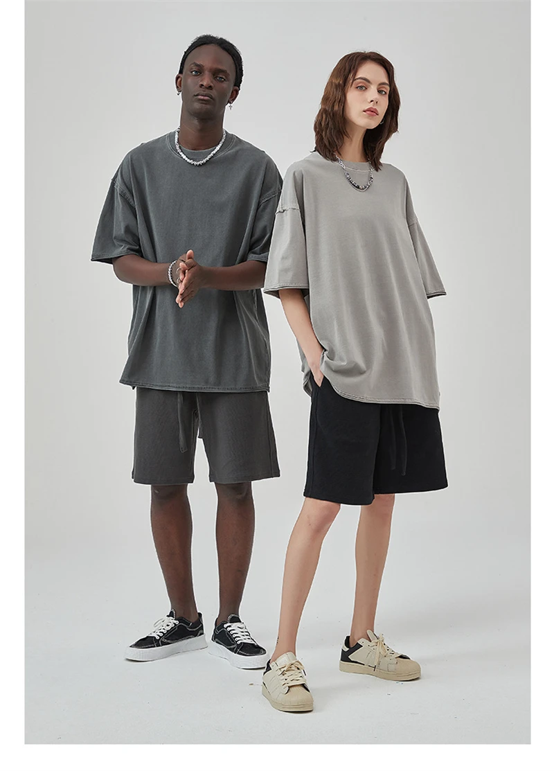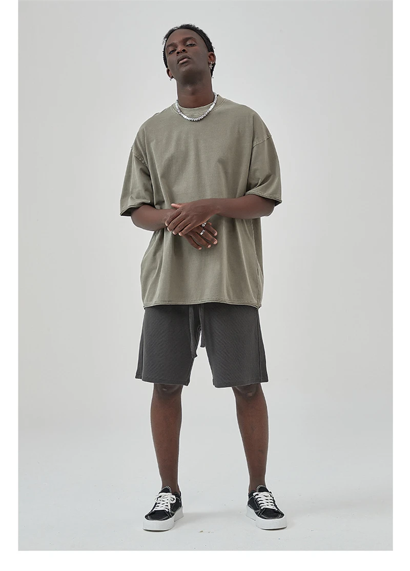 ZODF 2025 High Street Men Batik Washed Solid T Shirts Unisex Summer Loose Edge Noshrink 275gsm Cotton T-Shirt Streetwears HY0466