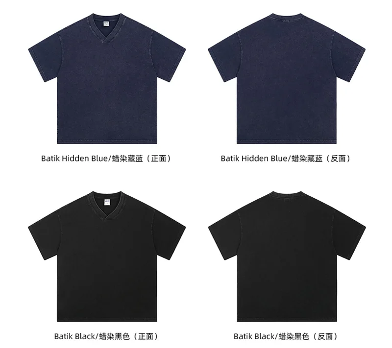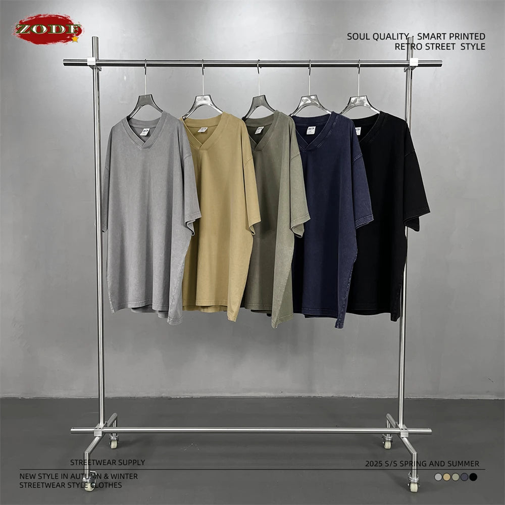ZODF 2025 Men Summer 250gsm Batik Washed Cotton T-Shirts Retro Unisex Oversized V Neck Distressed T Shirt Brand Tees HY1067