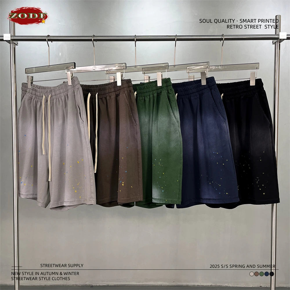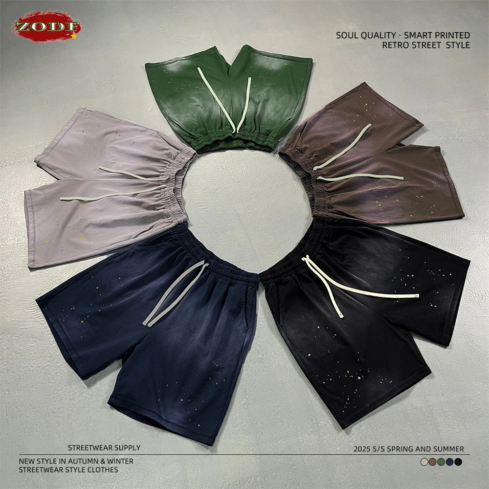 ZODF 2025 Summer 325gsm Monkey Washed Cotton Shorts For Men Unisex Retro High Street Loose Fit Paint Shorts Streetwears HY1064
