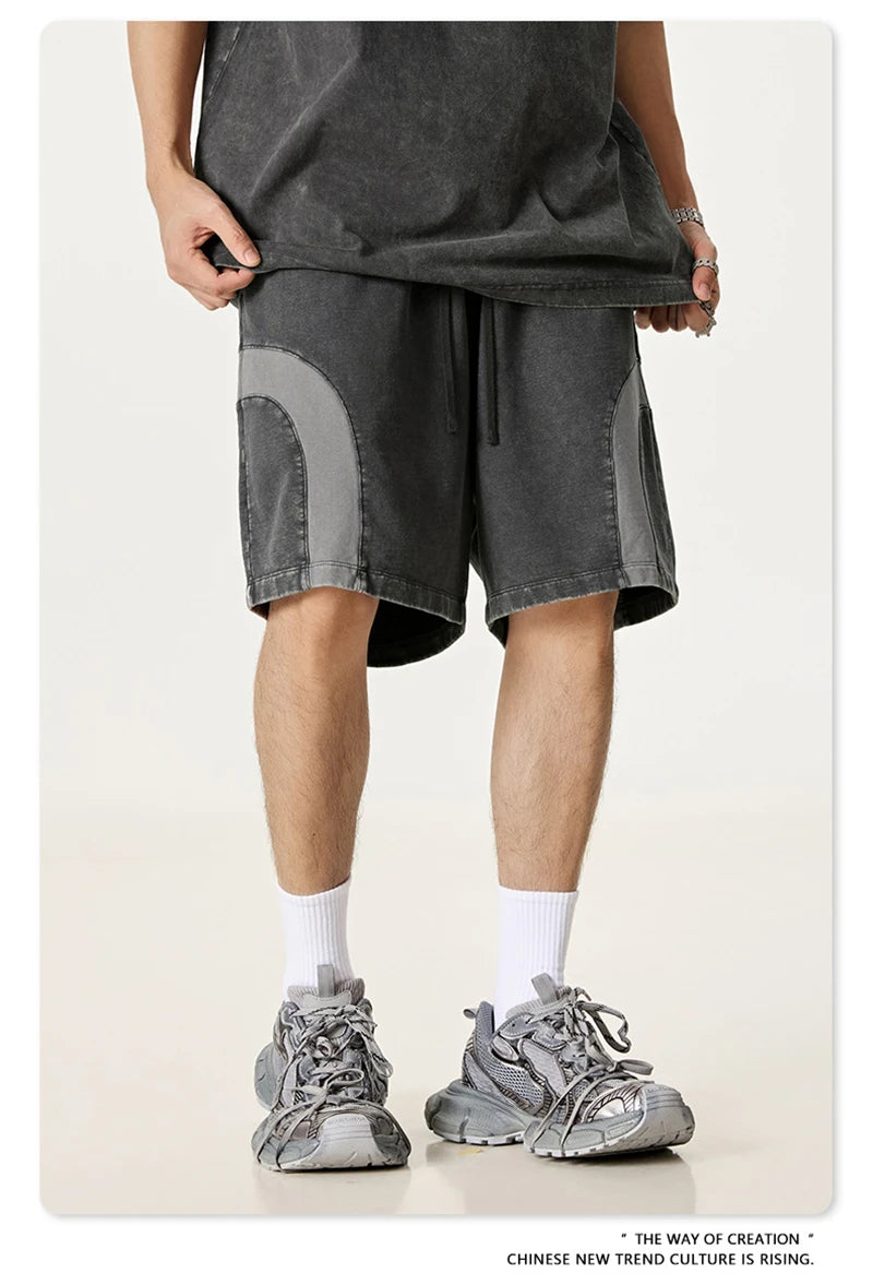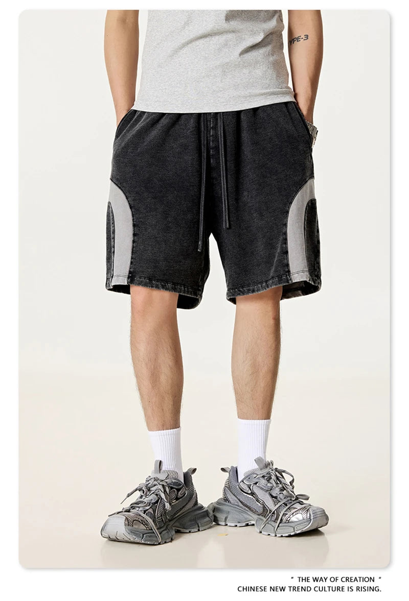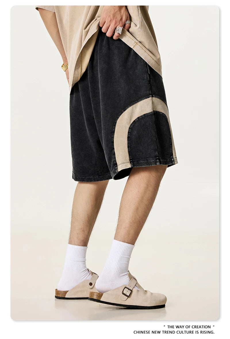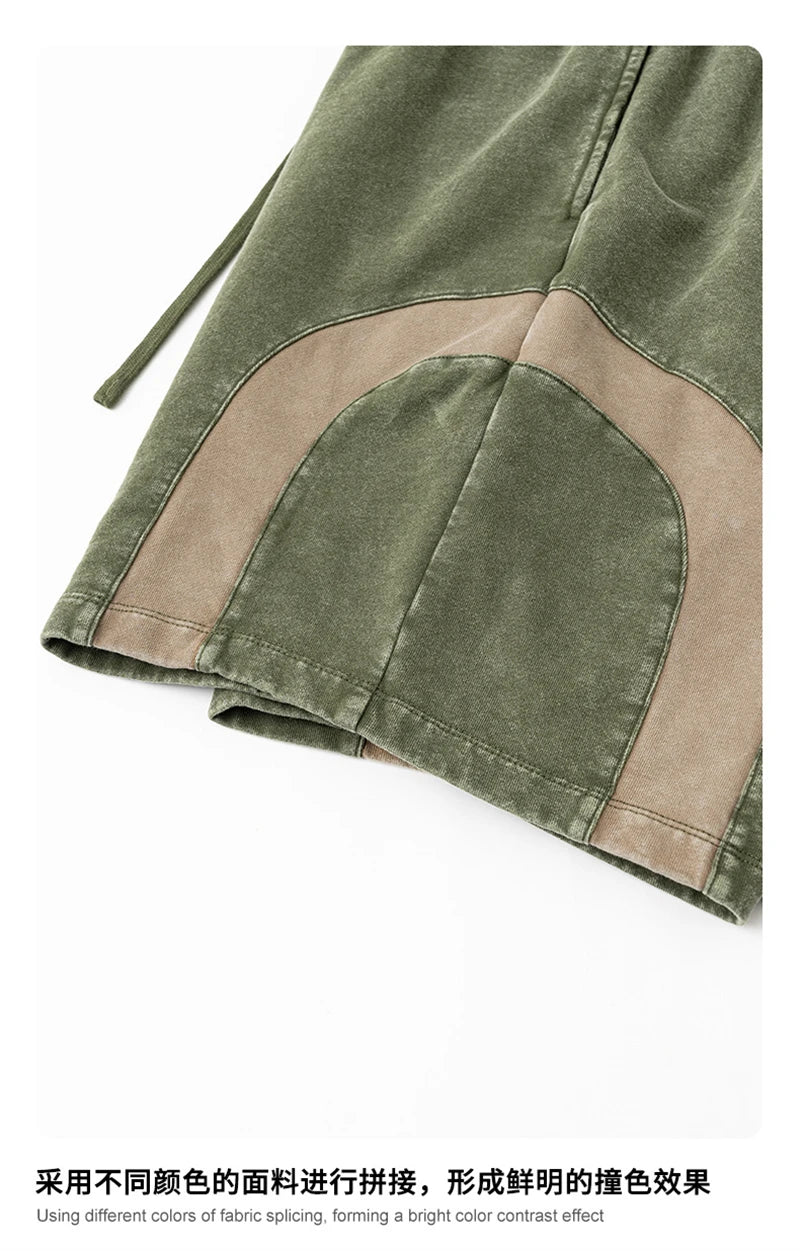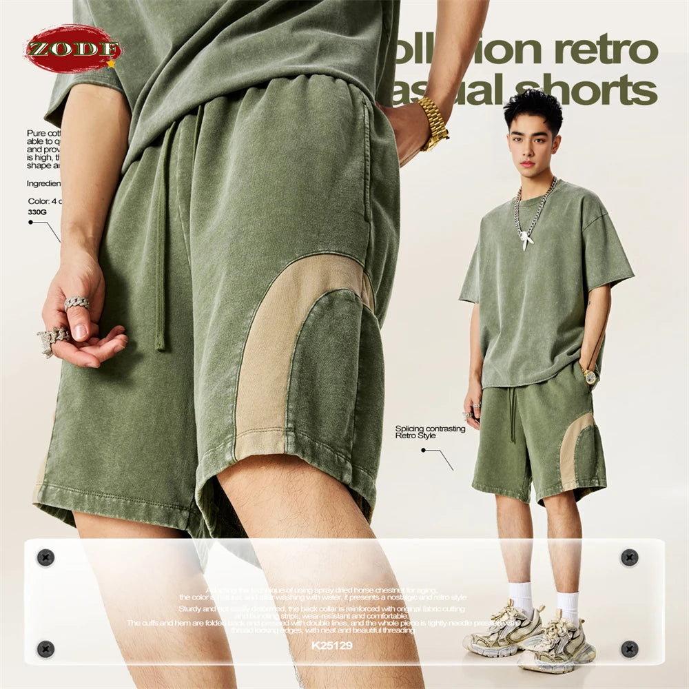ZODF 2025 Summer Patchwork Washed Cotton Shorts For Men Unisex Retro Y2K High Street Distressed 330gsm Shorts Streetwears HY1057