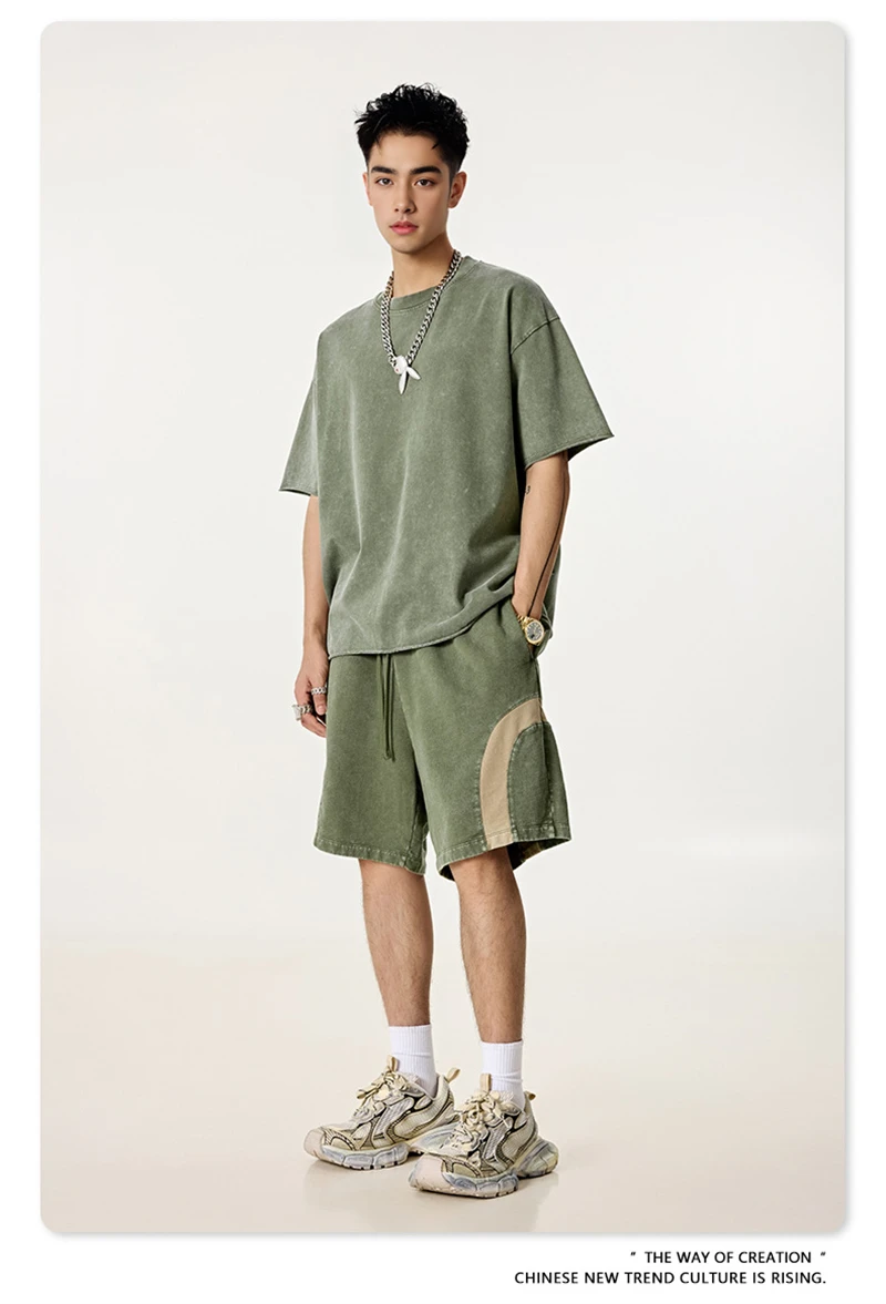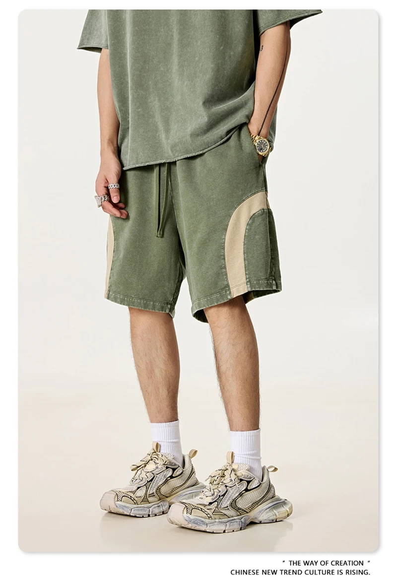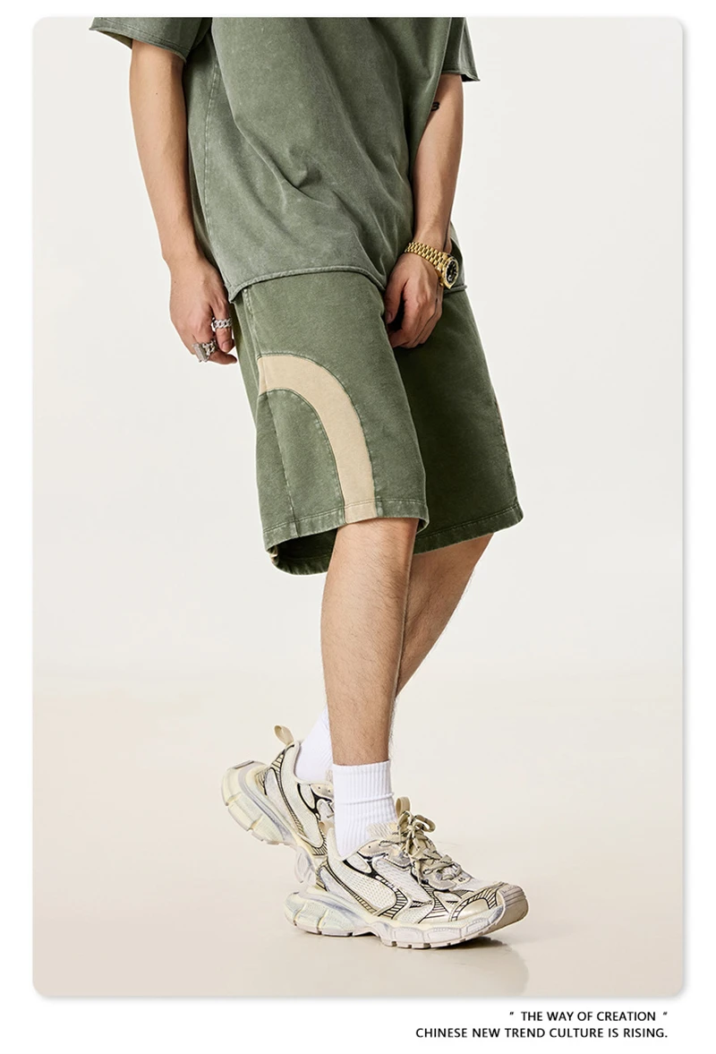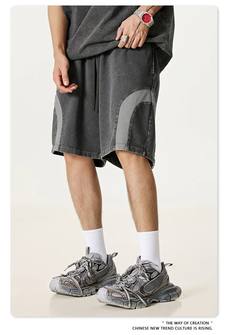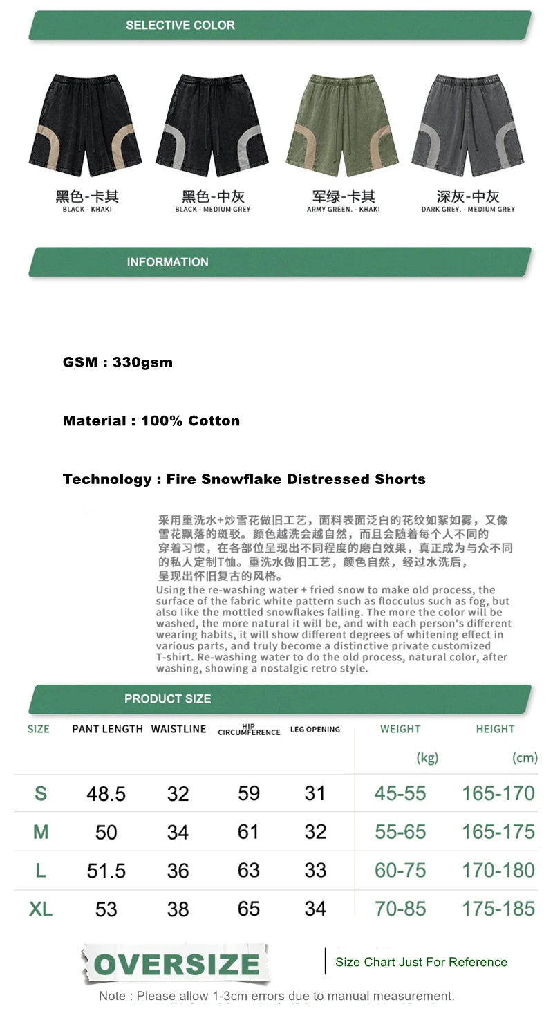 ZODF 2025 Summer Patchwork Washed Cotton Shorts For Men Unisex Retro Y2K High Street Distressed 330gsm Shorts Streetwears HY1057