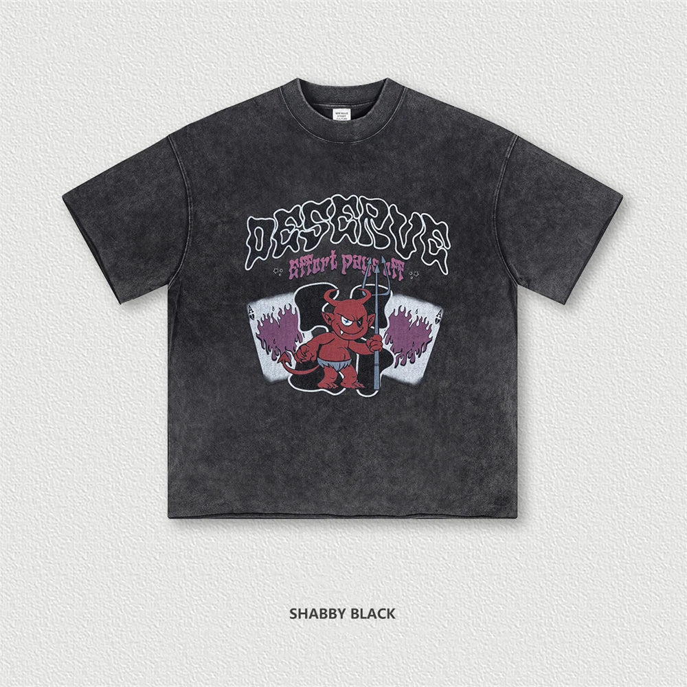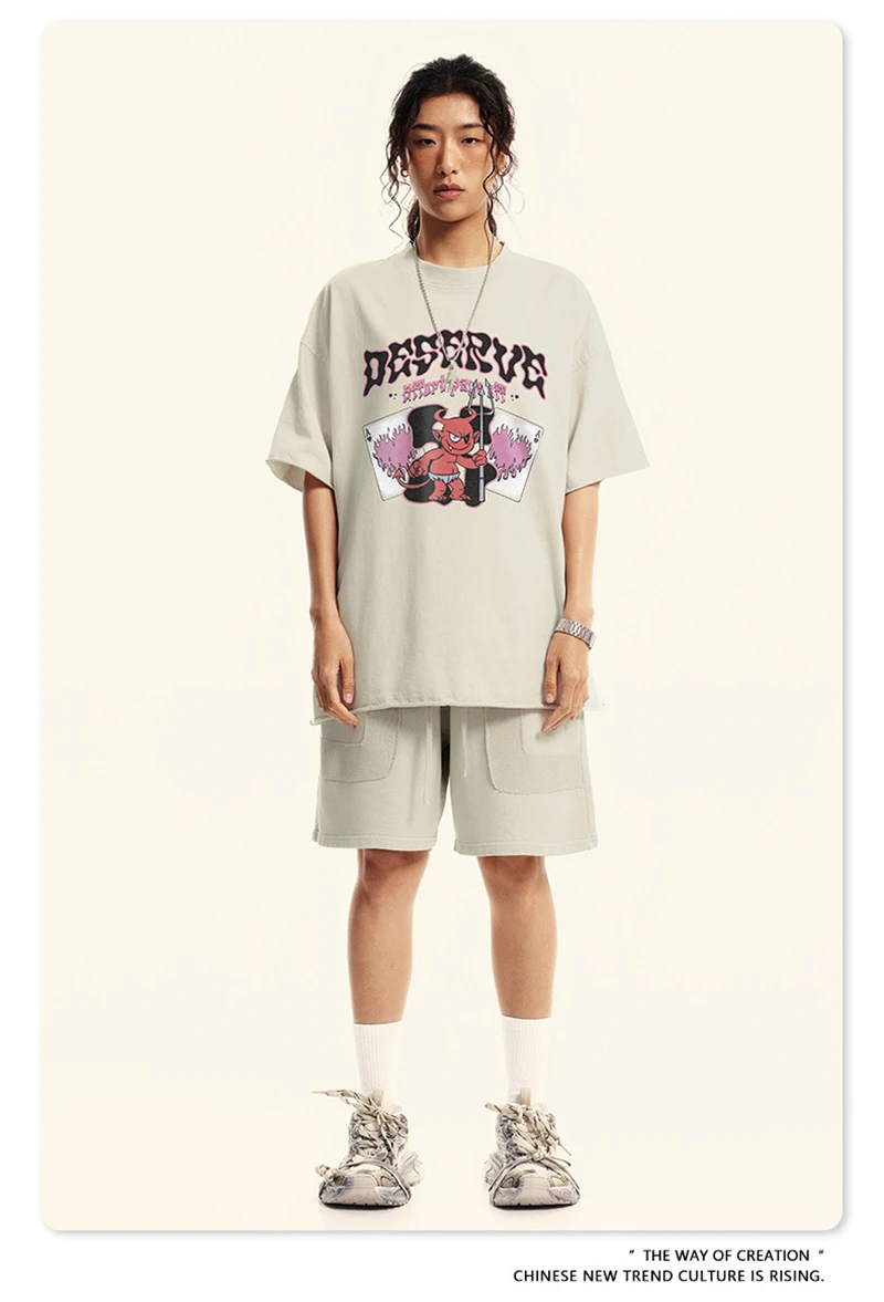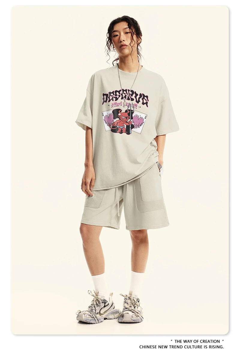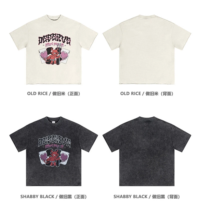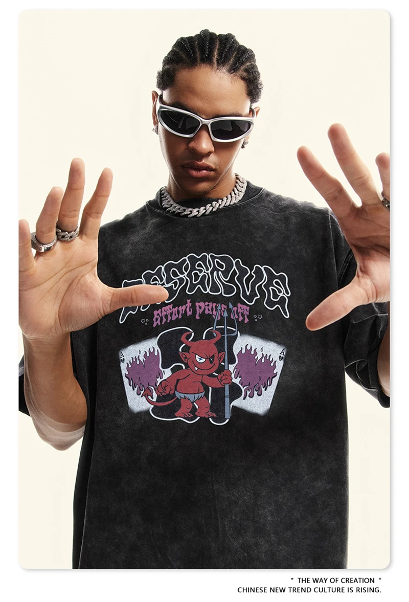 ZODF America Retro Summer 100% Cotton T-Shirts For Men Unisex Washed 310gsm Comfortable High Street Printing T Shirt Tops HY0862