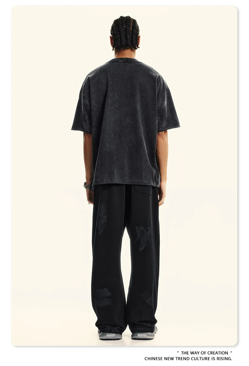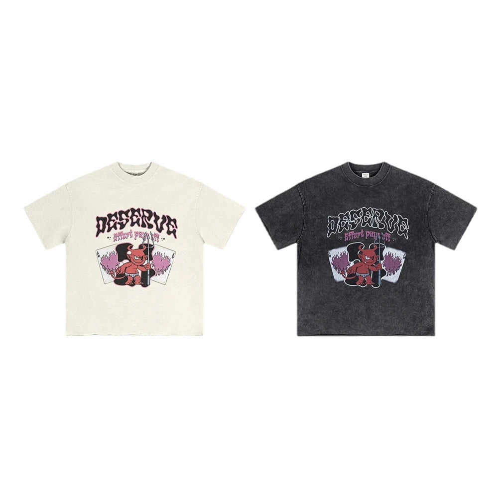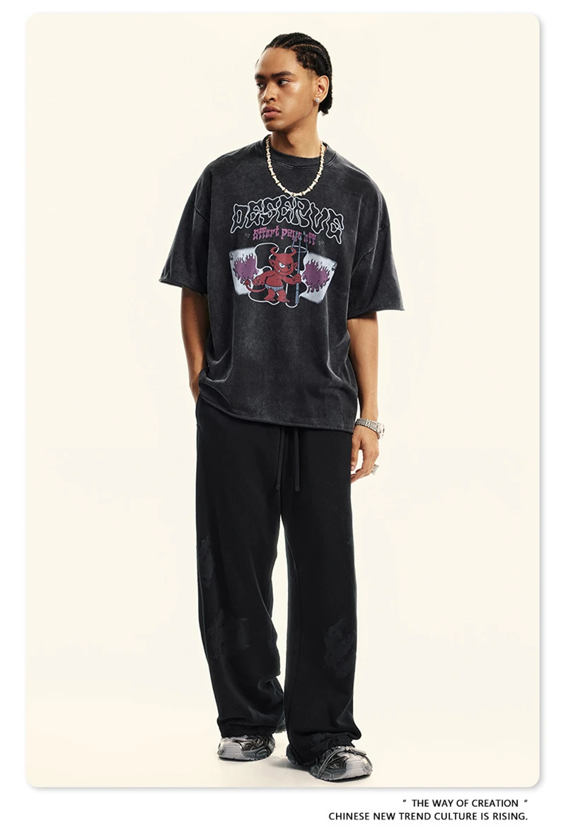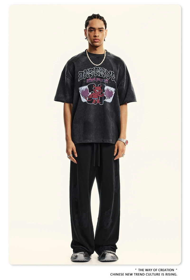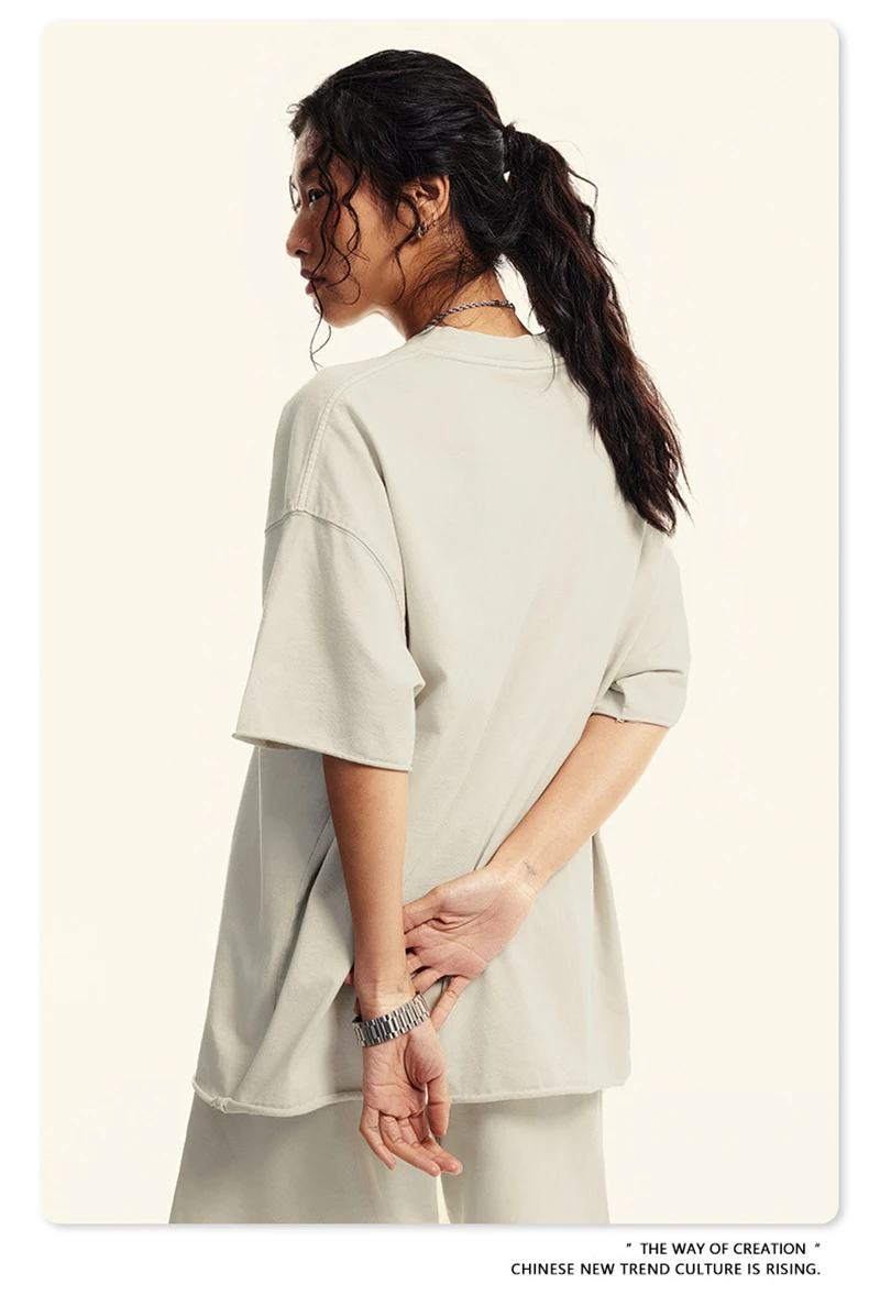 ZODF America Retro Summer 100% Cotton T-Shirts For Men Unisex Washed 310gsm Comfortable High Street Printing T Shirt Tops HY0862