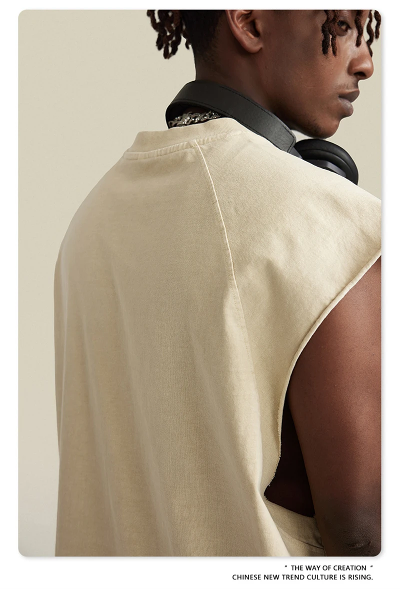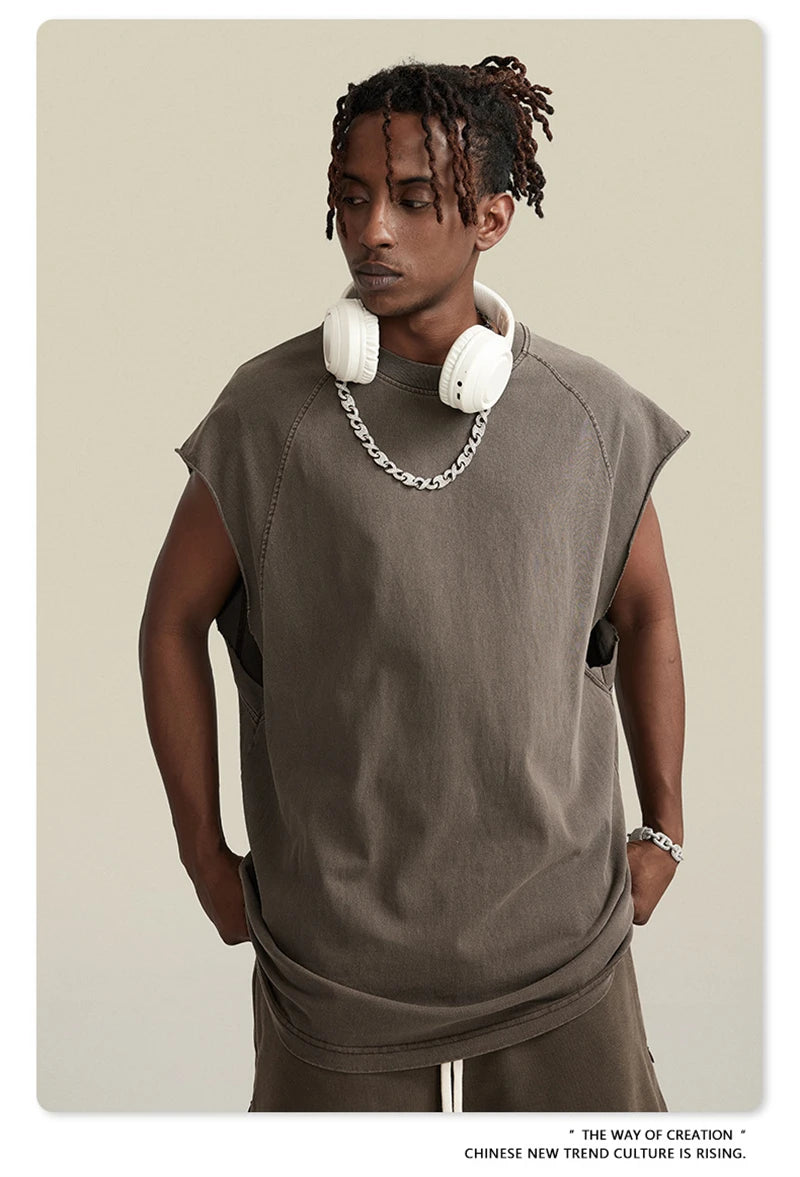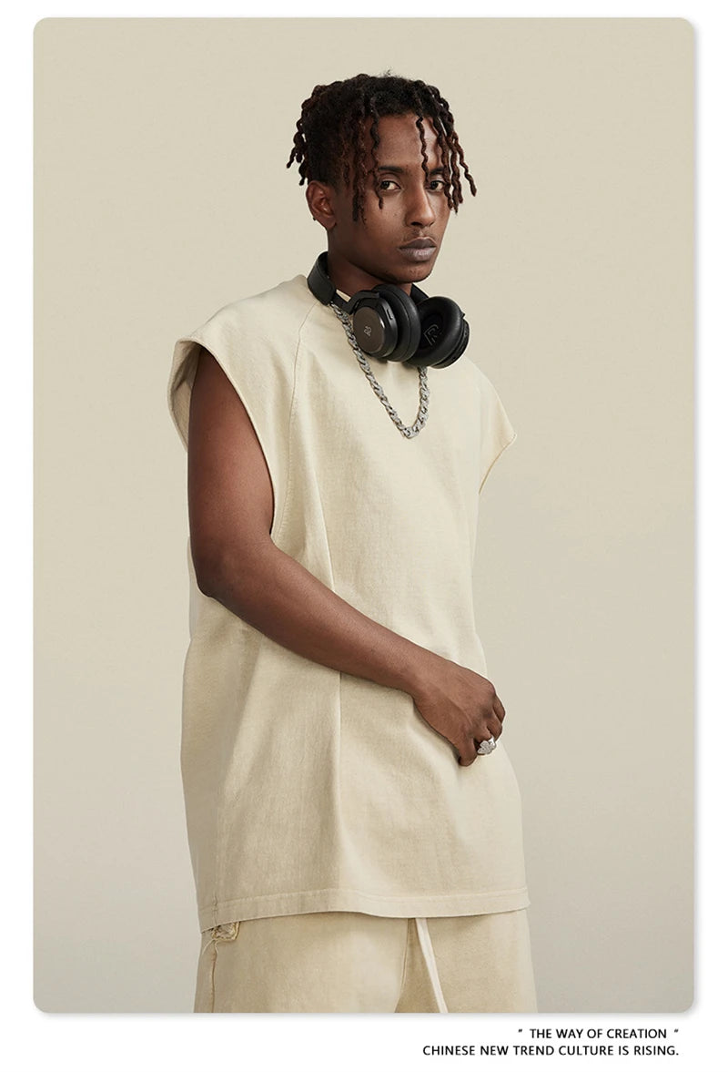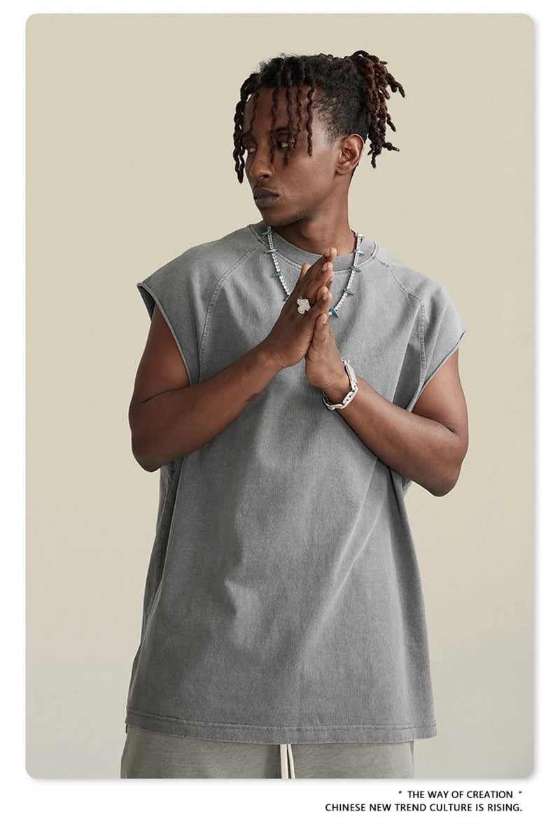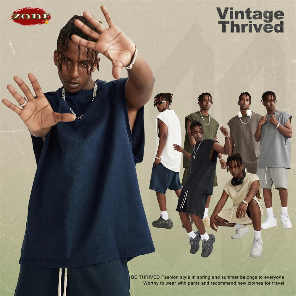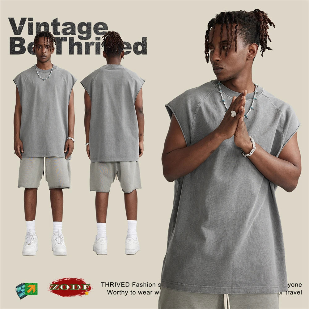 ZODF American Retro Men Washed Solid Tank Tops Women Unisex Loose Edge 275gsm Cotton Sleeveless Tees Brand Streetwears HY0503