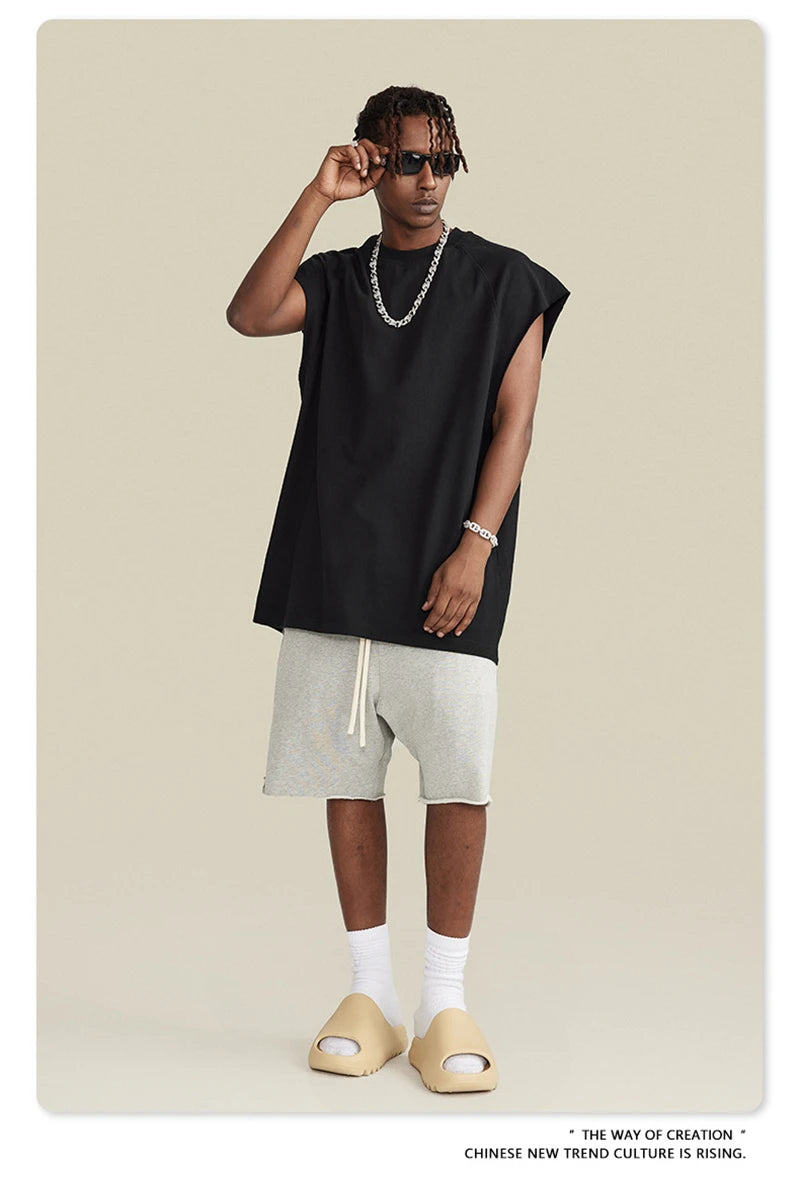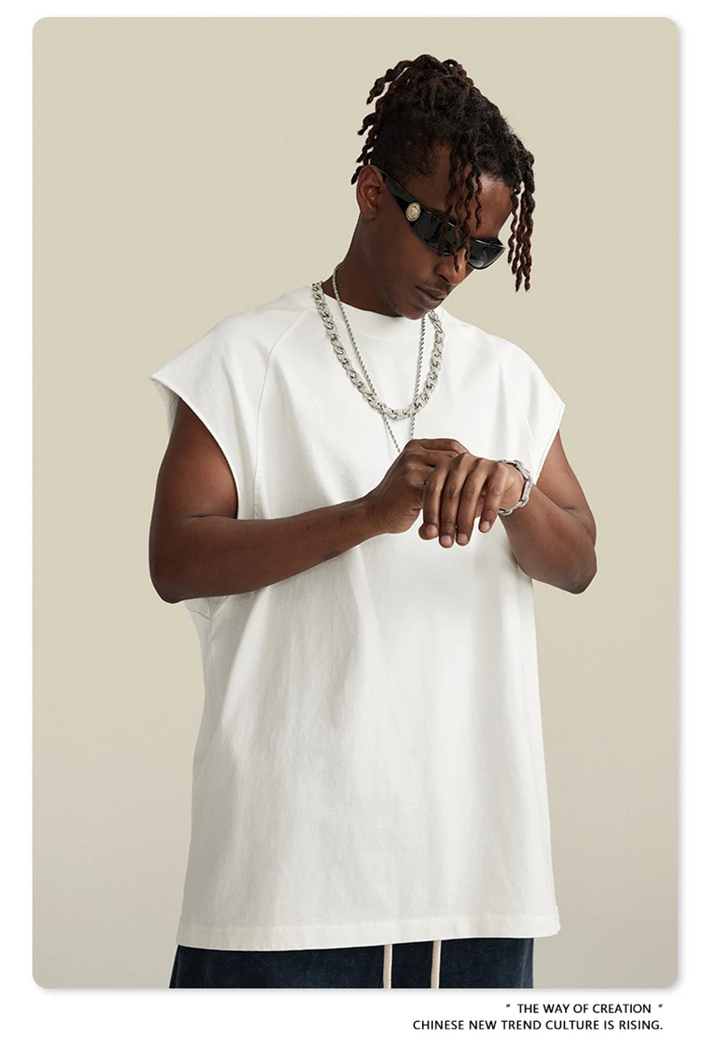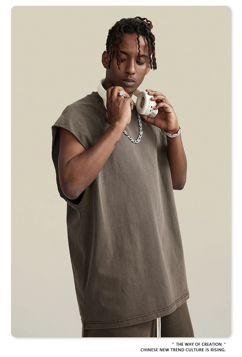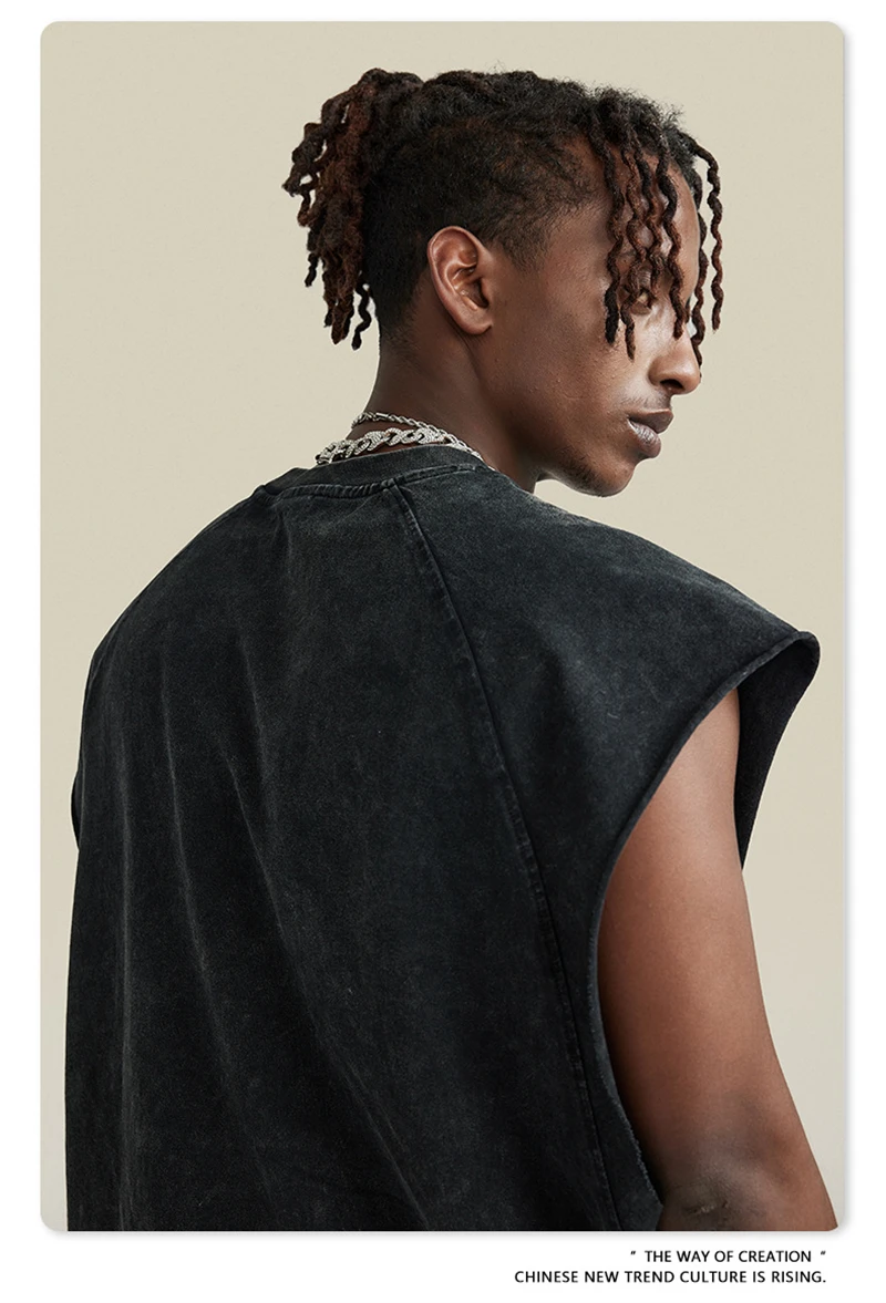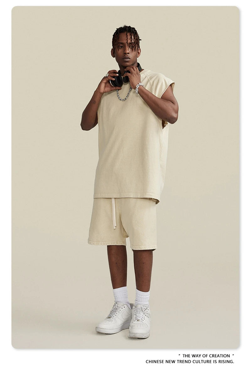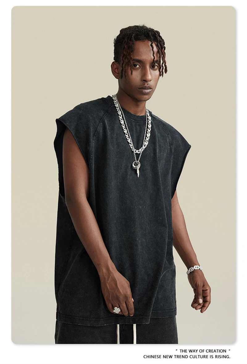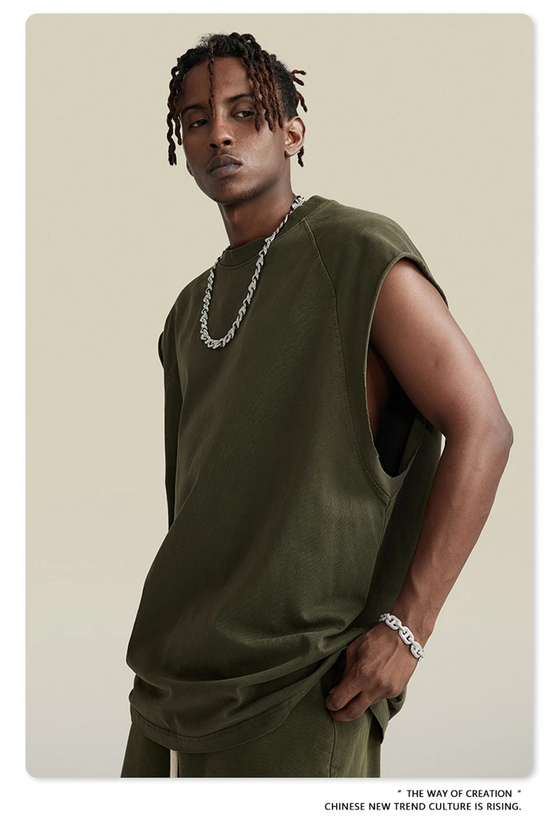 ZODF American Retro Men Washed Solid Tank Tops Women Unisex Loose Edge 275gsm Cotton Sleeveless Tees Brand Streetwears HY0503