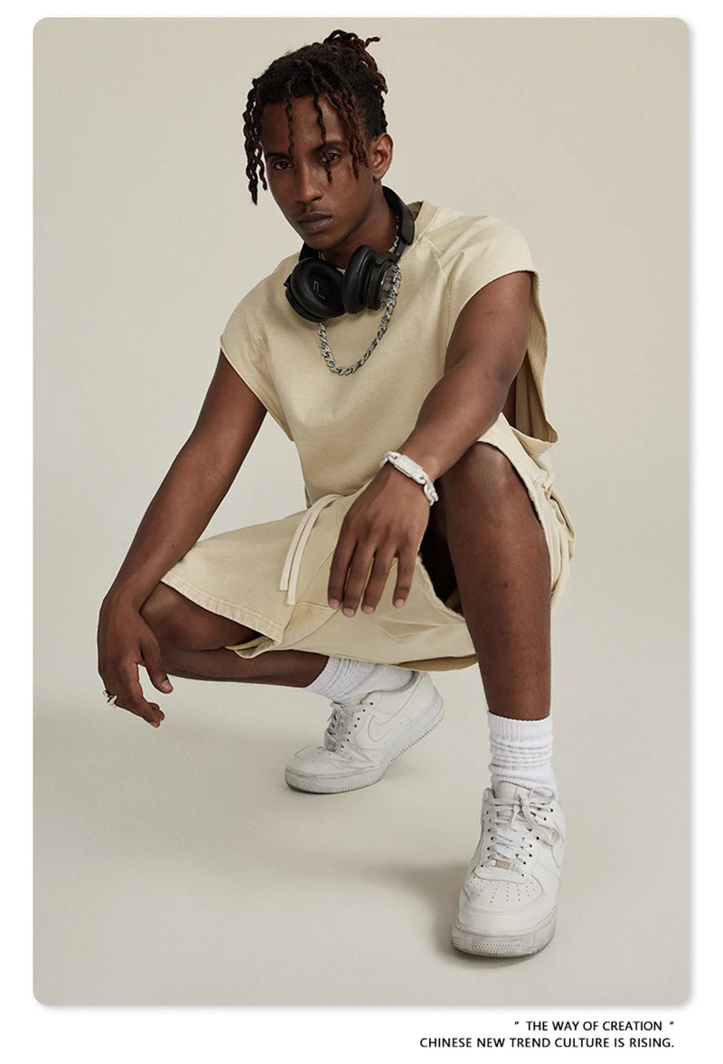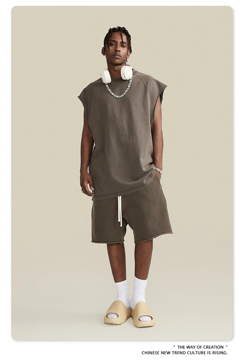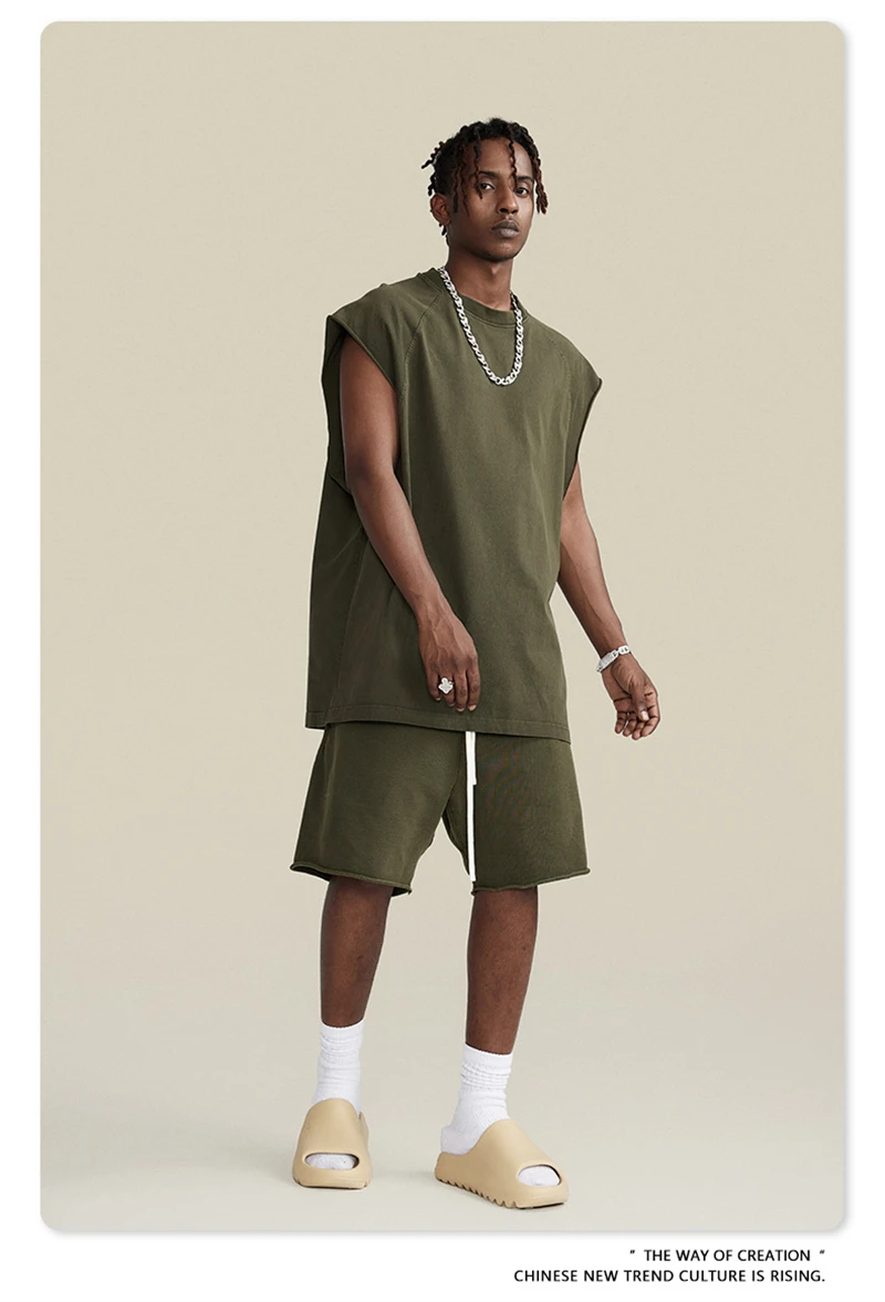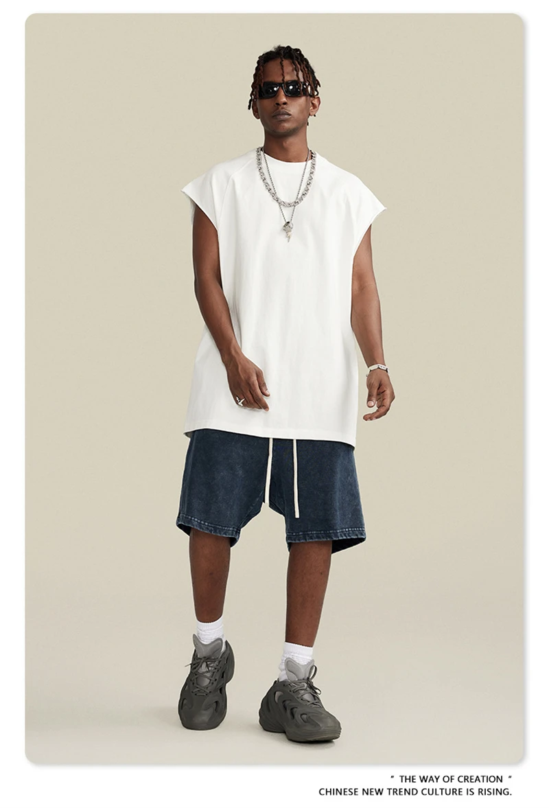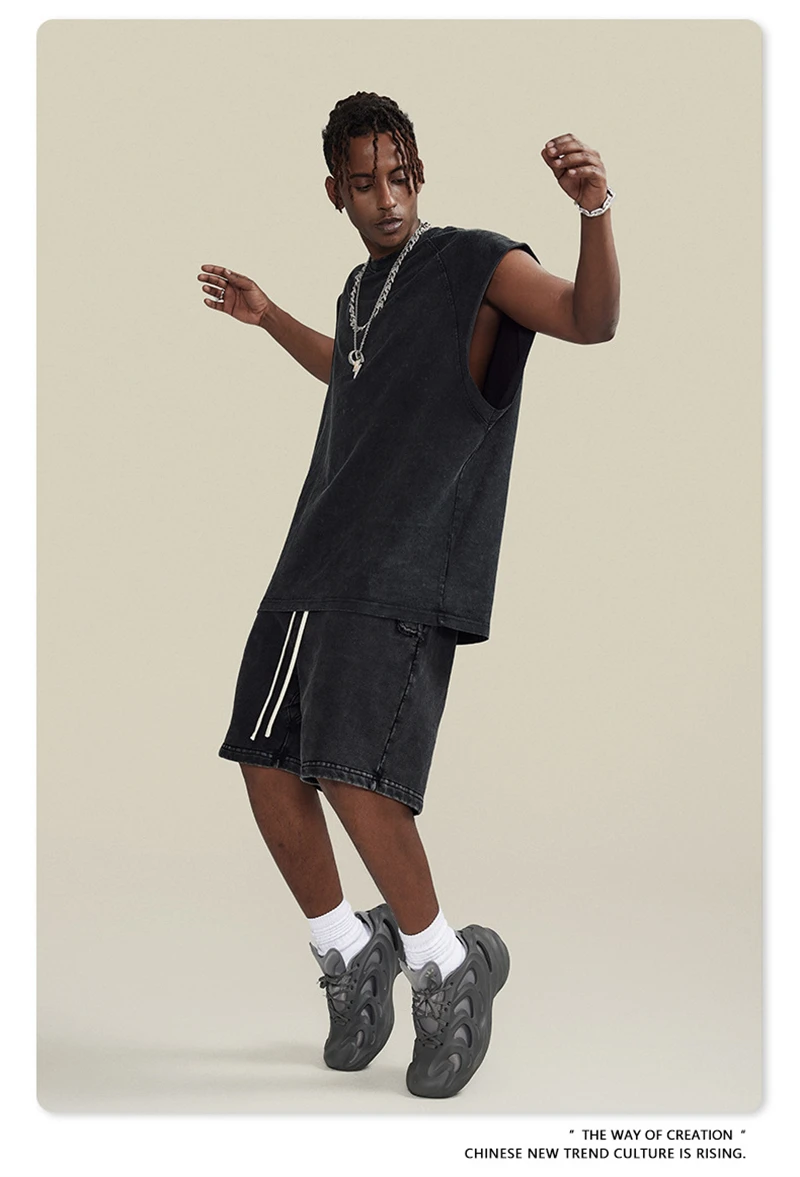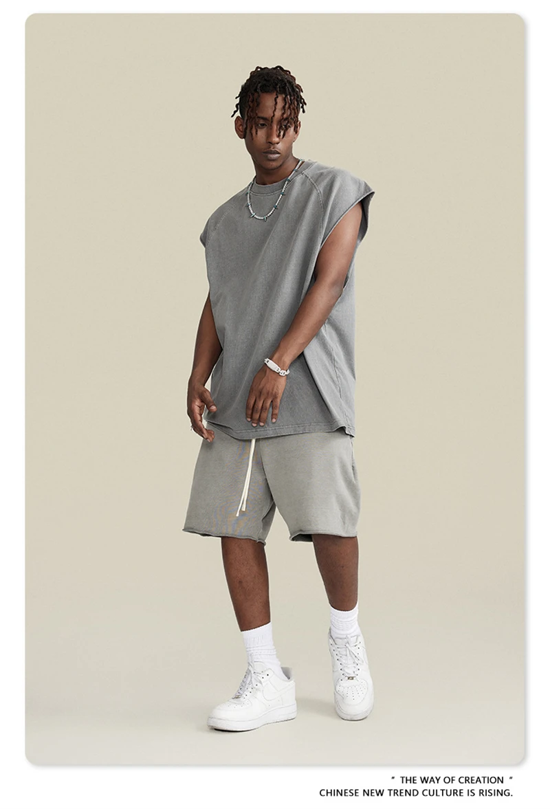 ZODF American Retro Men Washed Solid Tank Tops Women Unisex Loose Edge 275gsm Cotton Sleeveless Tees Brand Streetwears HY0503