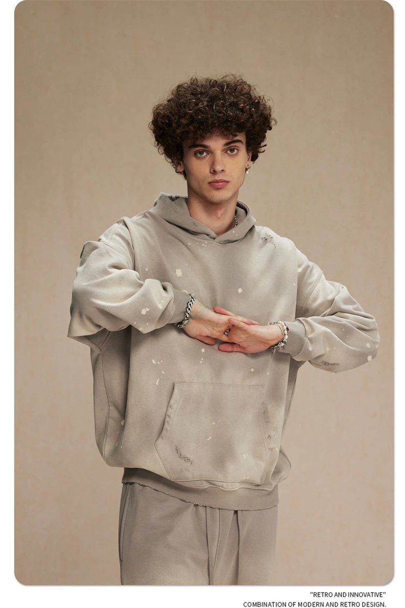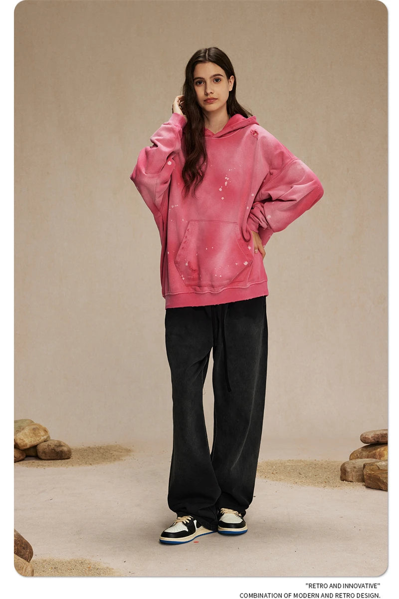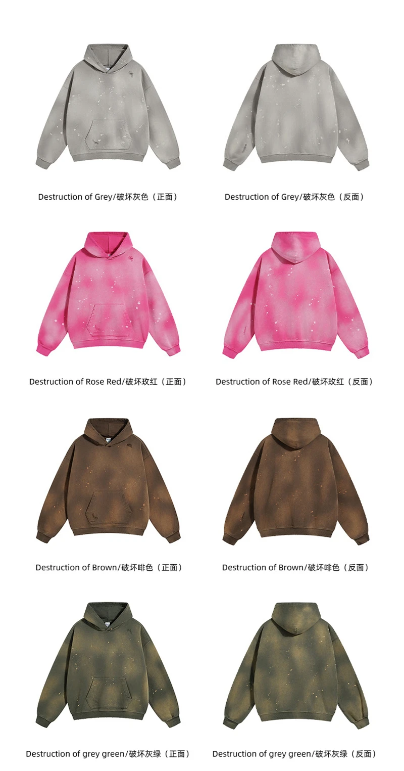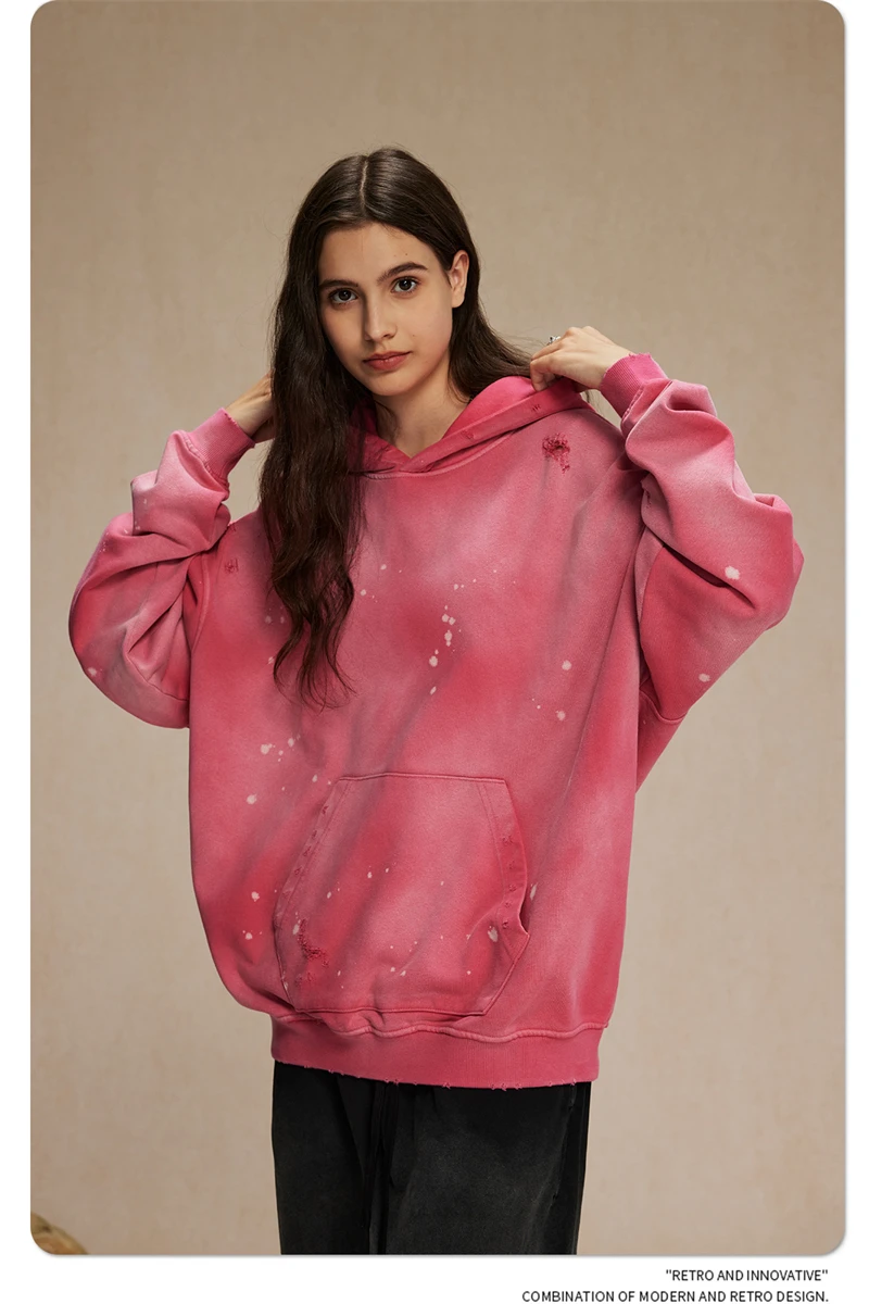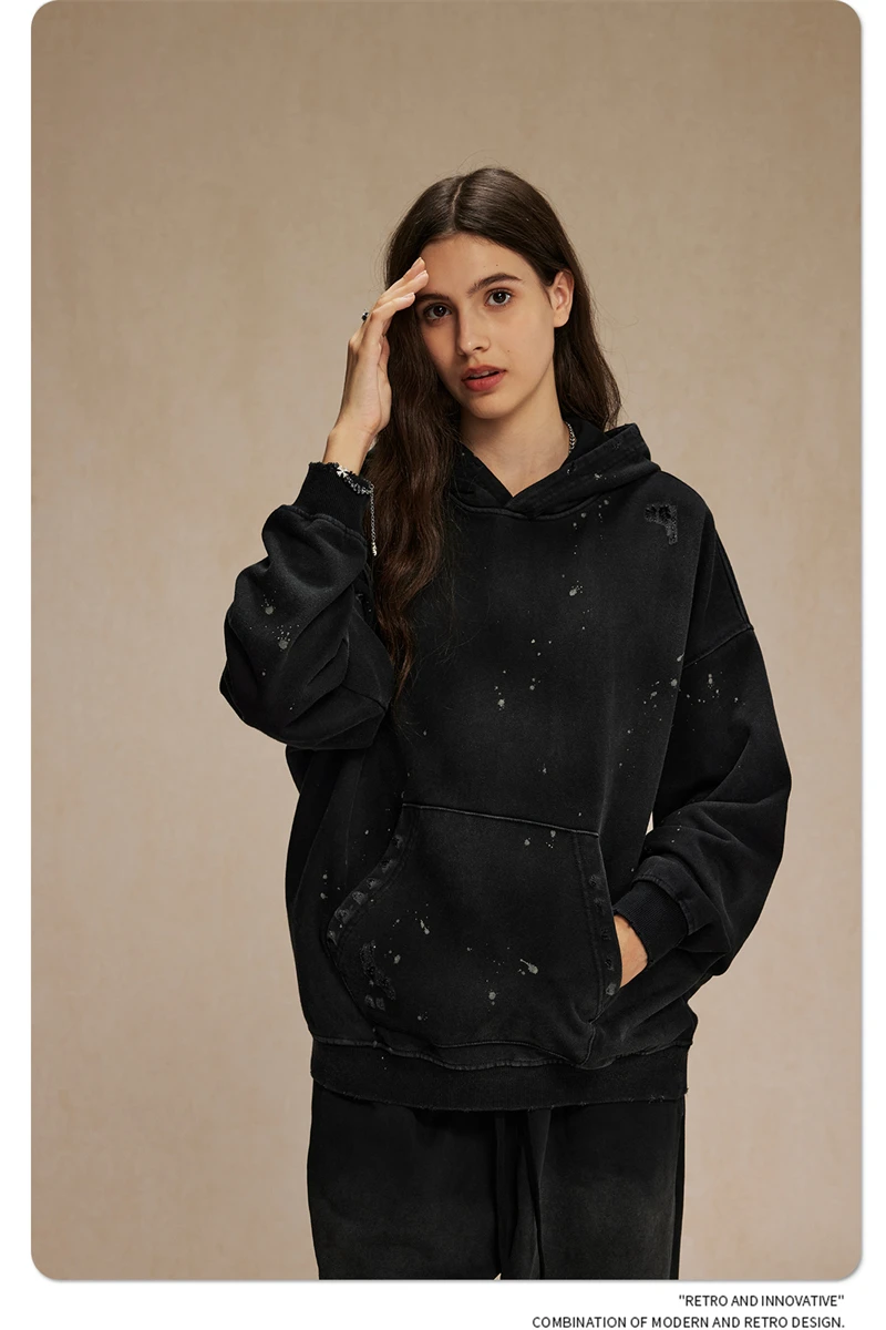 ZODF Autumn Winter Spray Dyeing Ink Splashing Hoodies For Men Unisex 450gsm Washed Oversized Knitted Hooded Pullovers HY0908