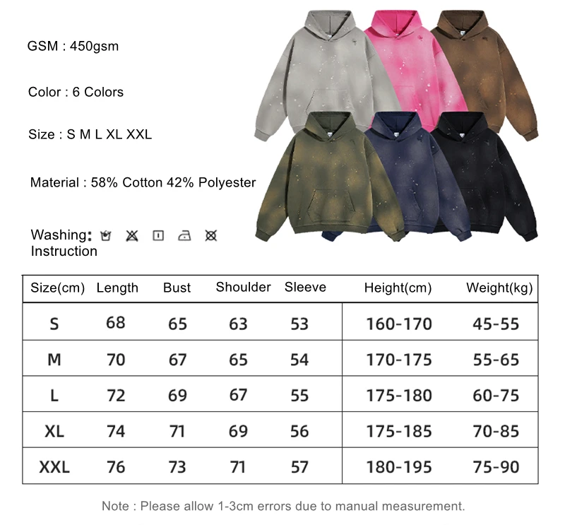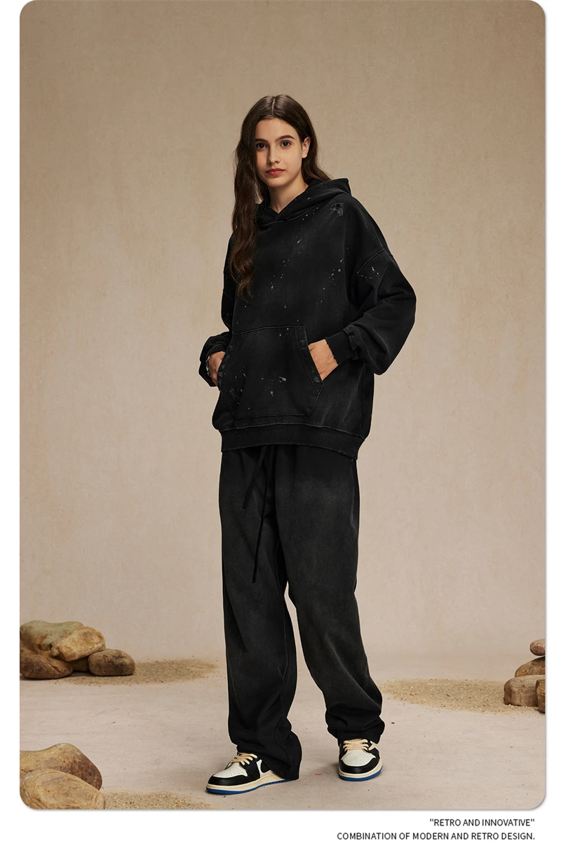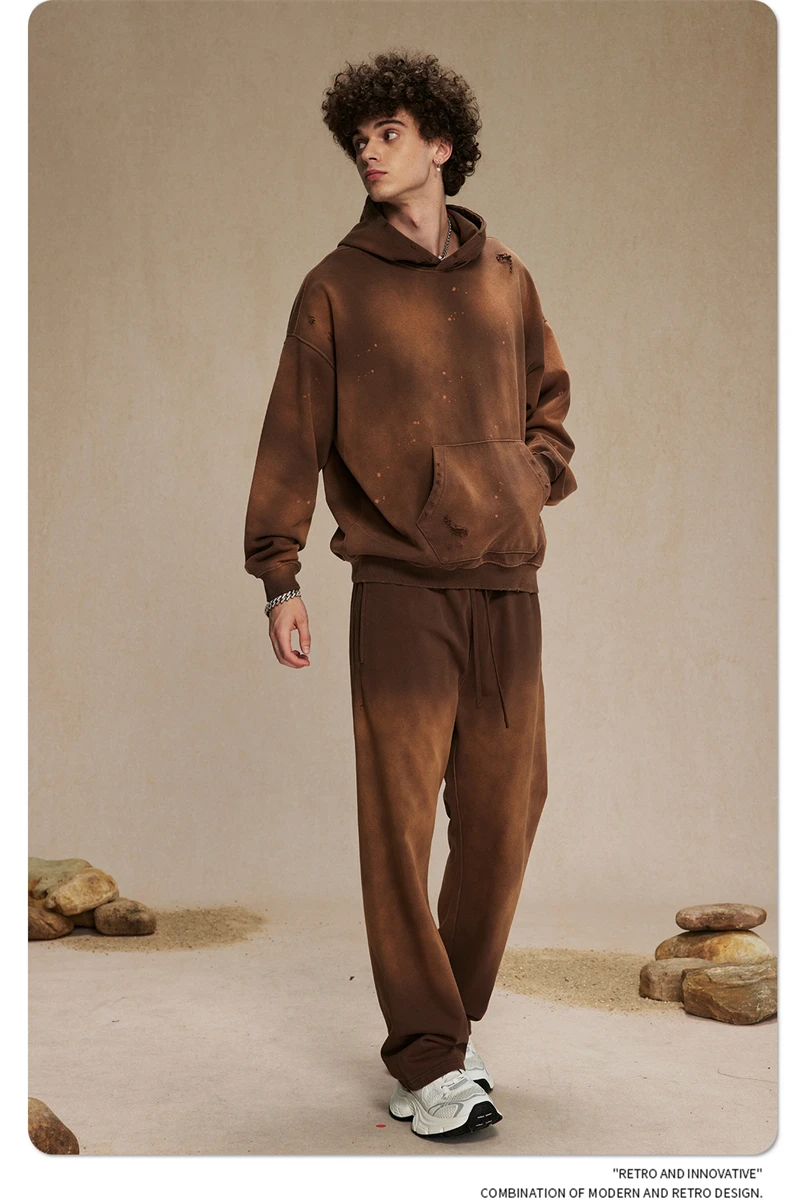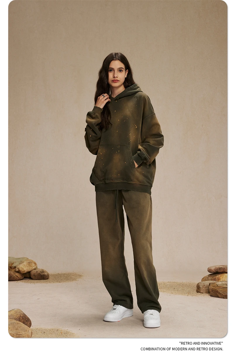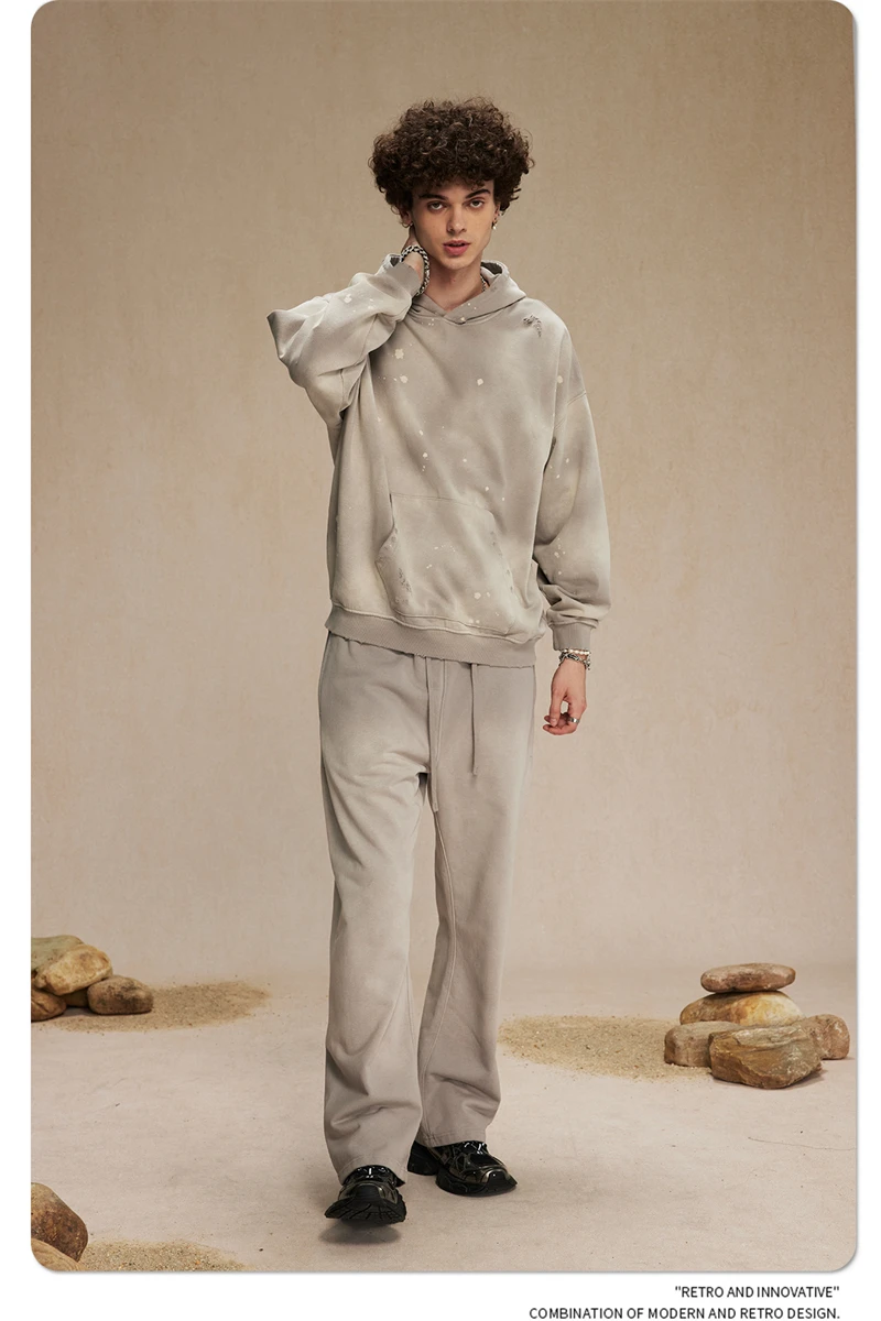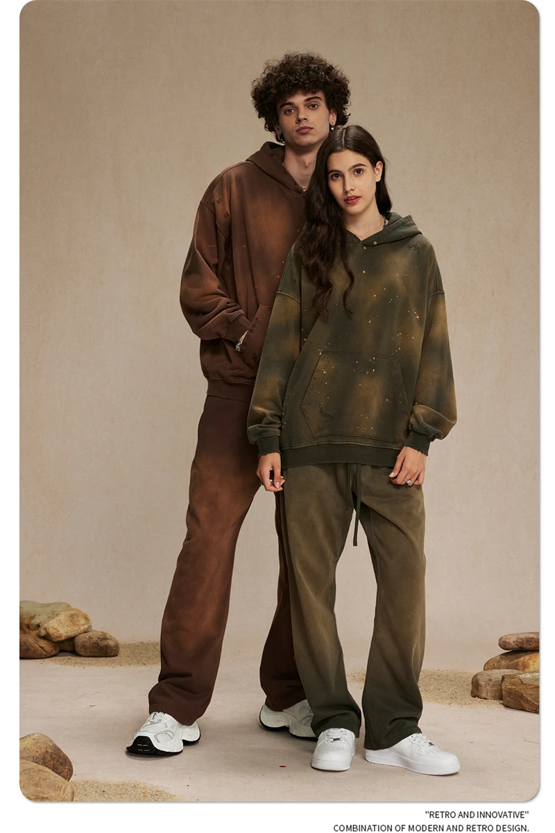 ZODF Autumn Winter Spray Dyeing Ink Splashing Hoodies For Men Unisex 450gsm Washed Oversized Knitted Hooded Pullovers HY0908