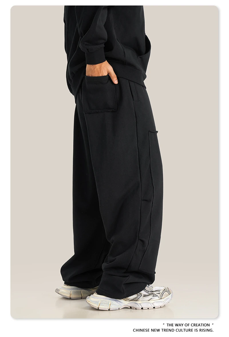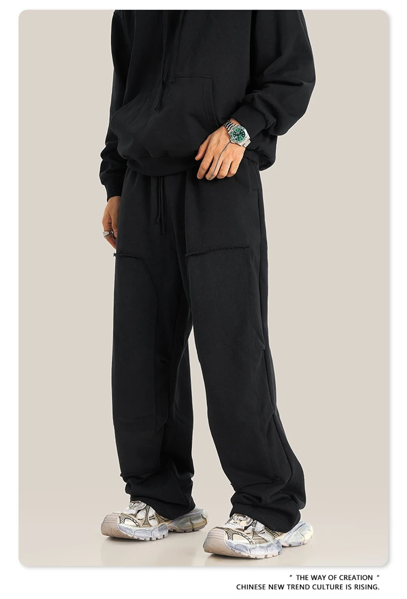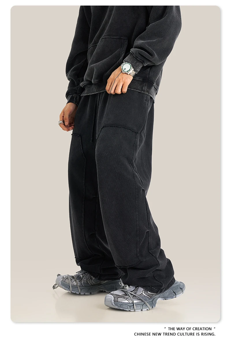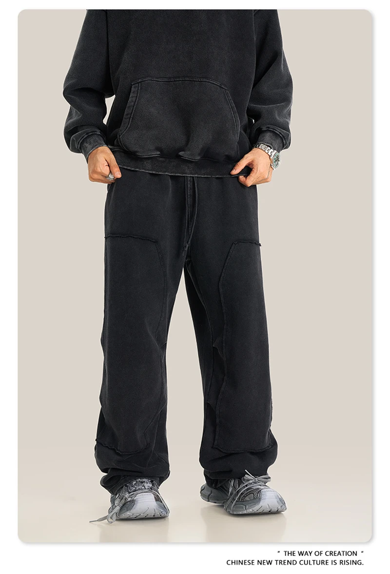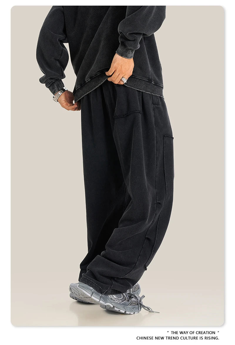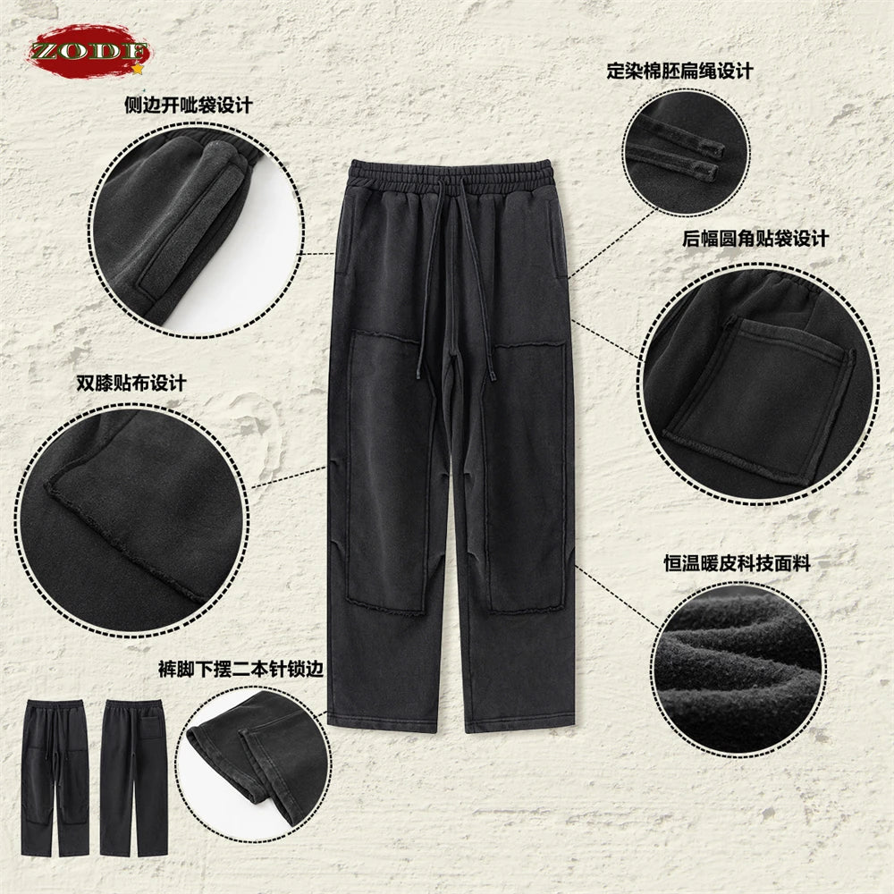 ZODF Fashion 2024 Winter Patches Fleece Straight Pants Retro Unisex Loose Washed 305gsm Warm Soft Trousers Brand Bottoms HY0872