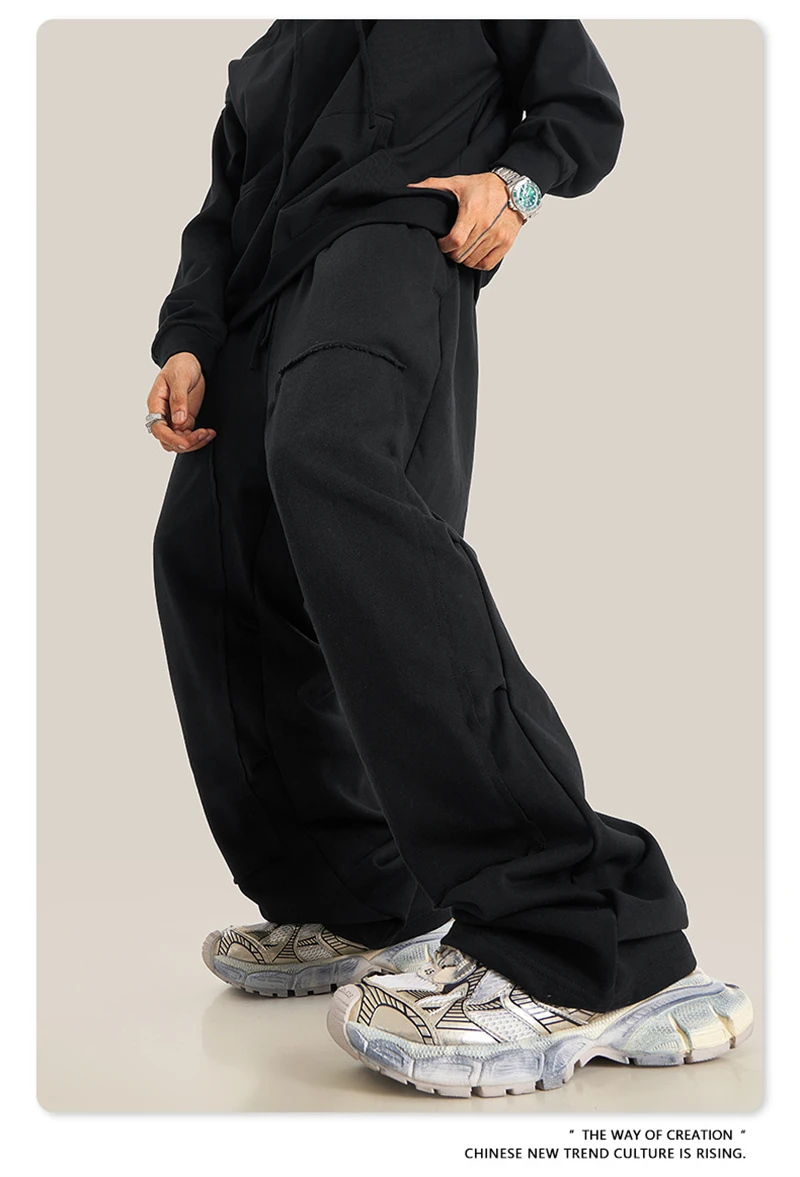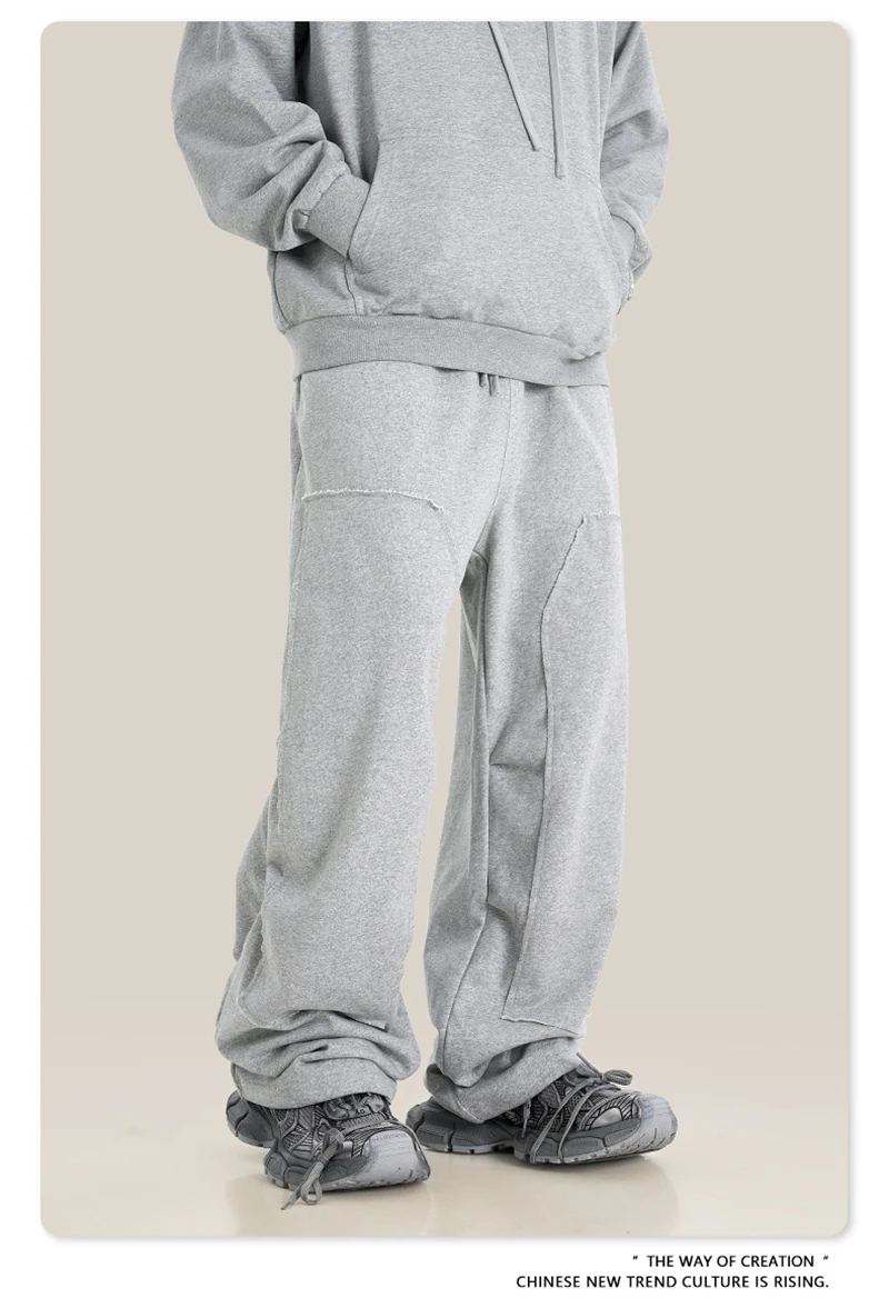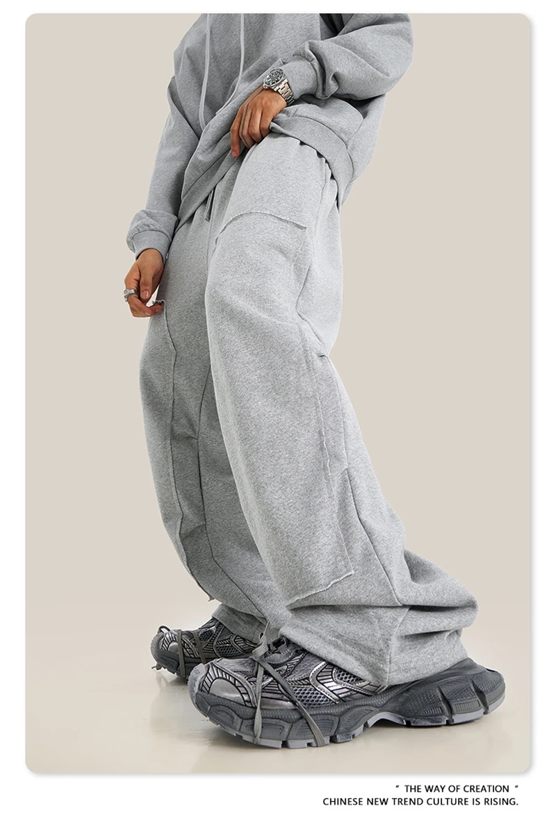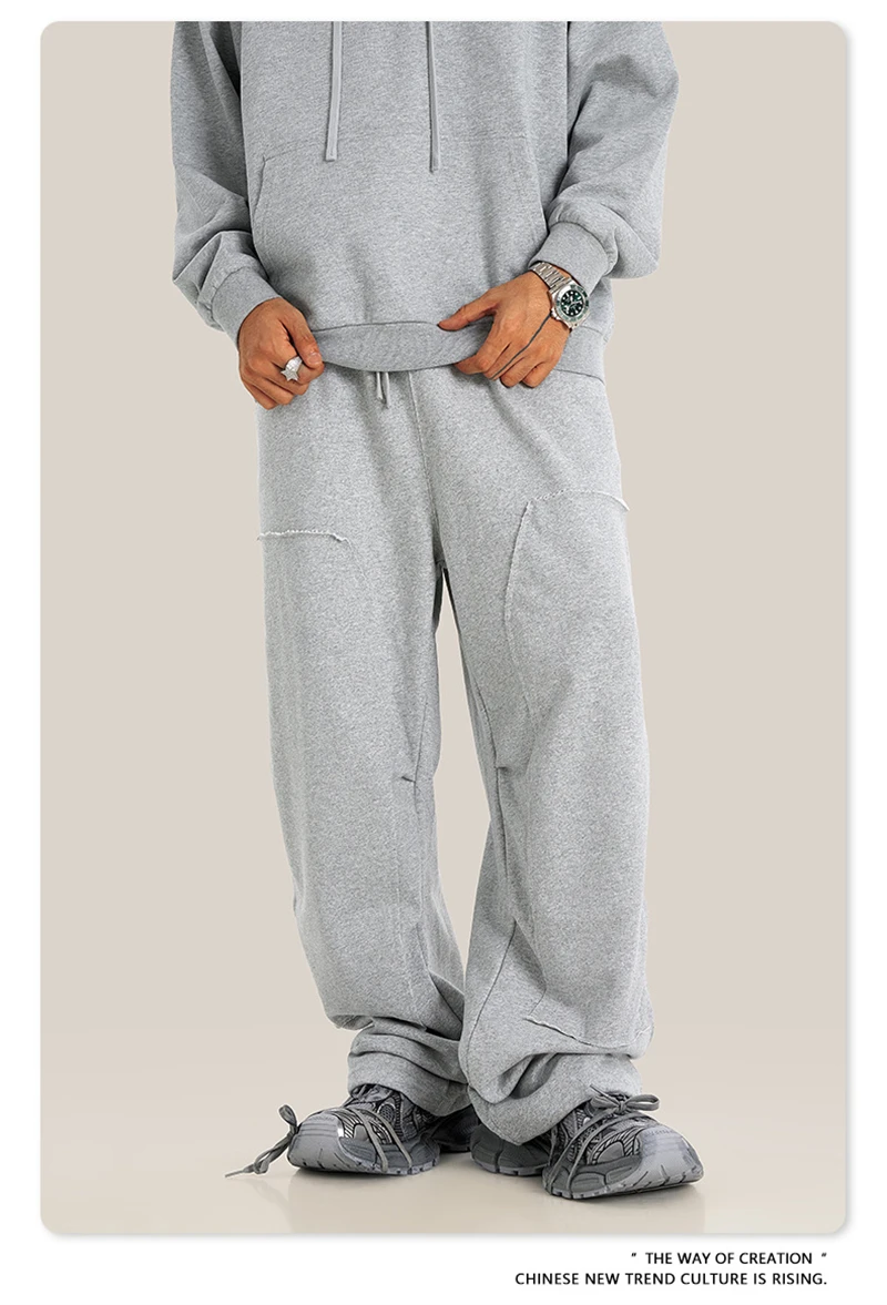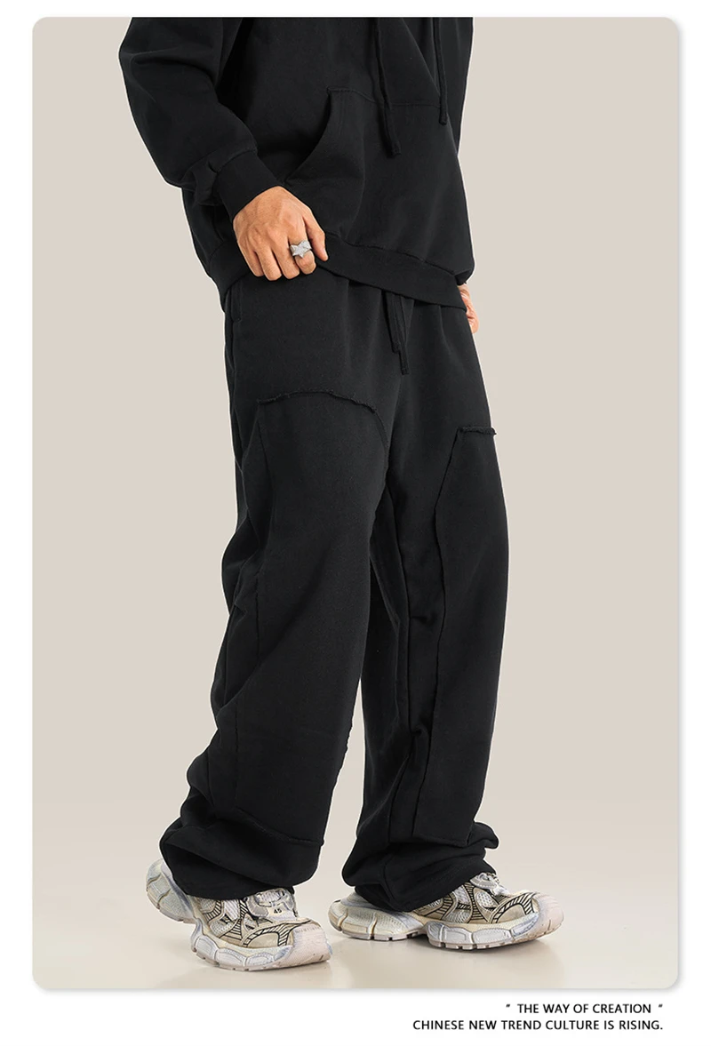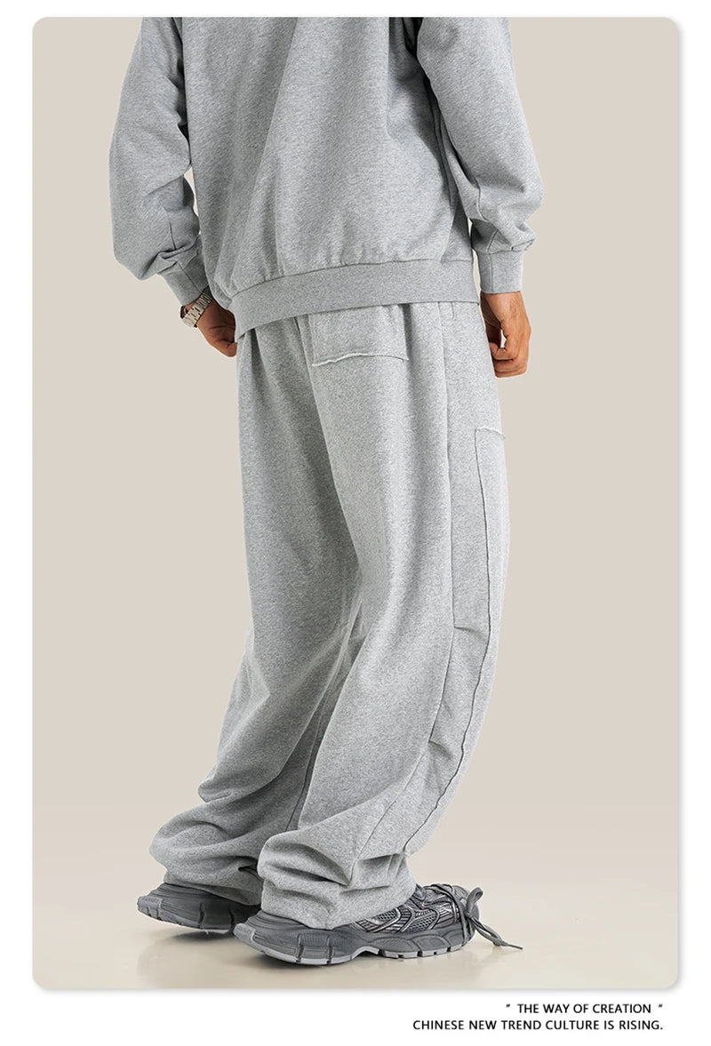 ZODF Fashion 2024 Winter Patches Fleece Straight Pants Retro Unisex Loose Washed 305gsm Warm Soft Trousers Brand Bottoms HY0872