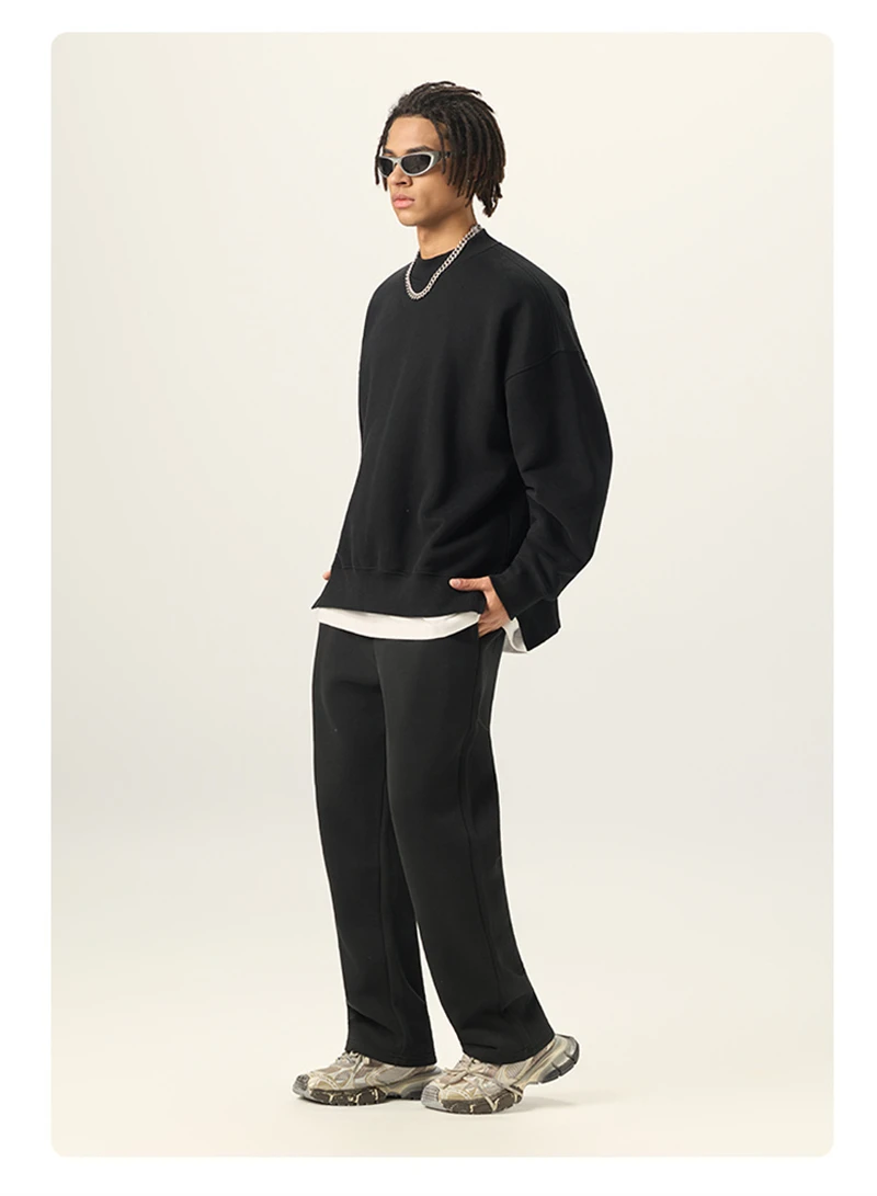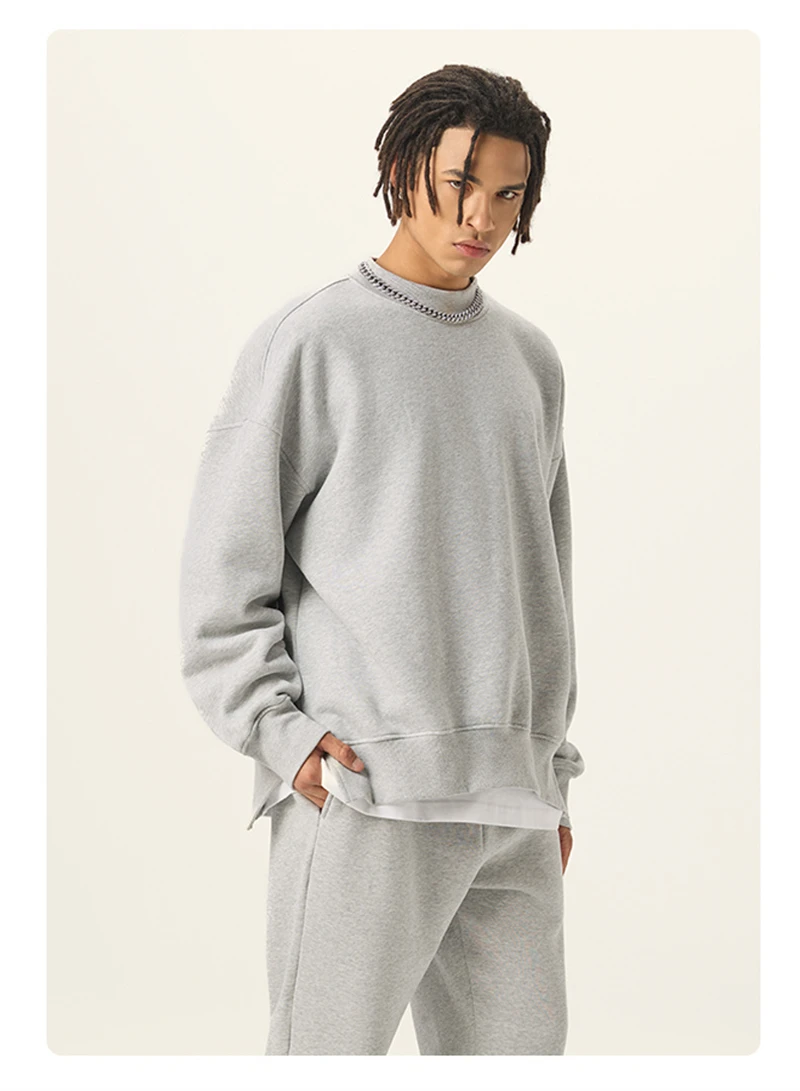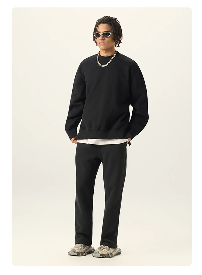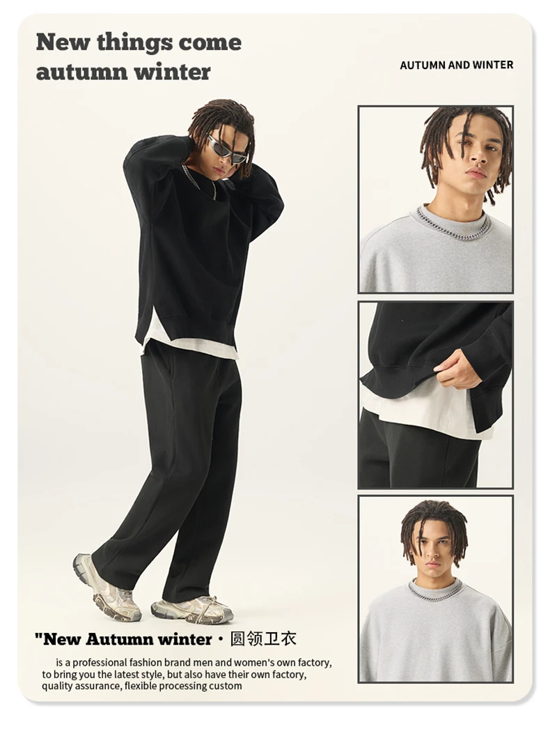 ZODF Fashion Men Winter Side Split Fleece Sweatshirt Winter Unisex Oversized 350gsm O Neck Warm Pullovers Brand Clothing HY0058