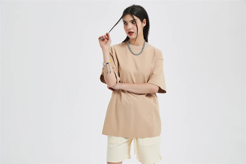 ZODF Fashion Spring Summer Washed Solid T Shirts For Men Loose Unisex 310gsm Cotton Heavy Weight T-Shirt Brand Tops HY0064