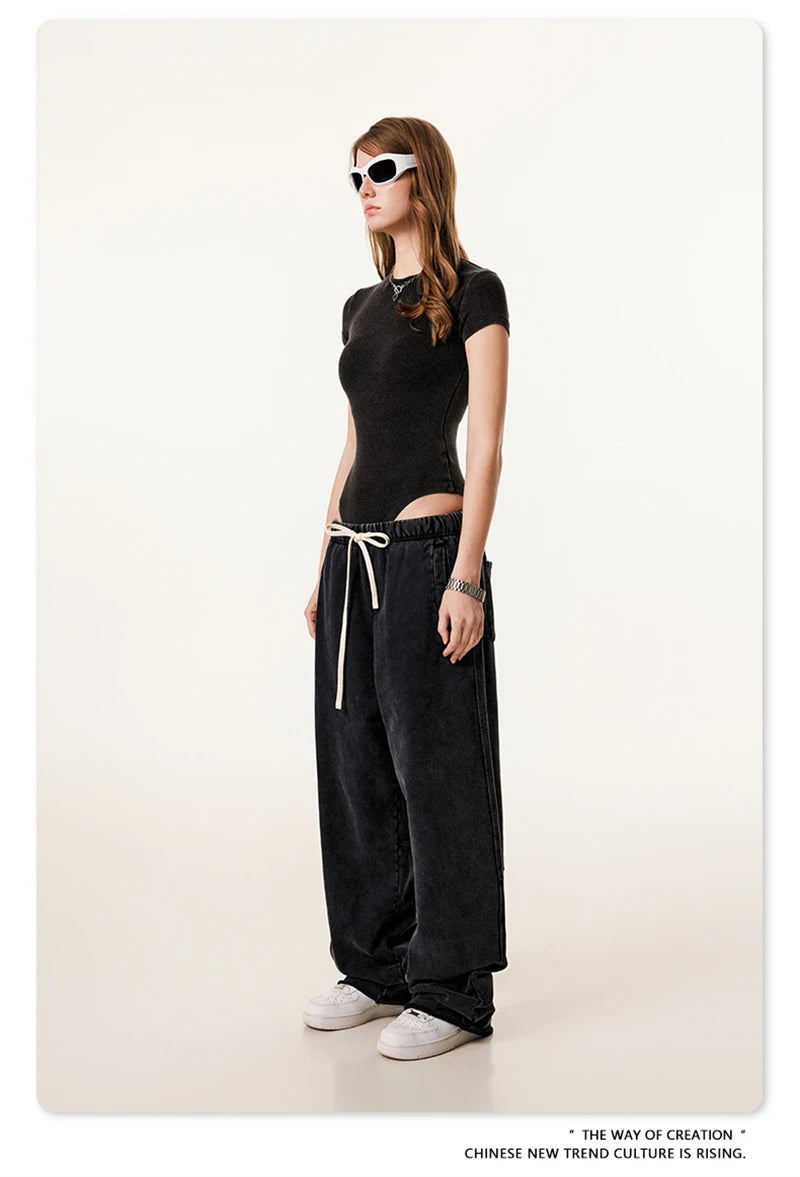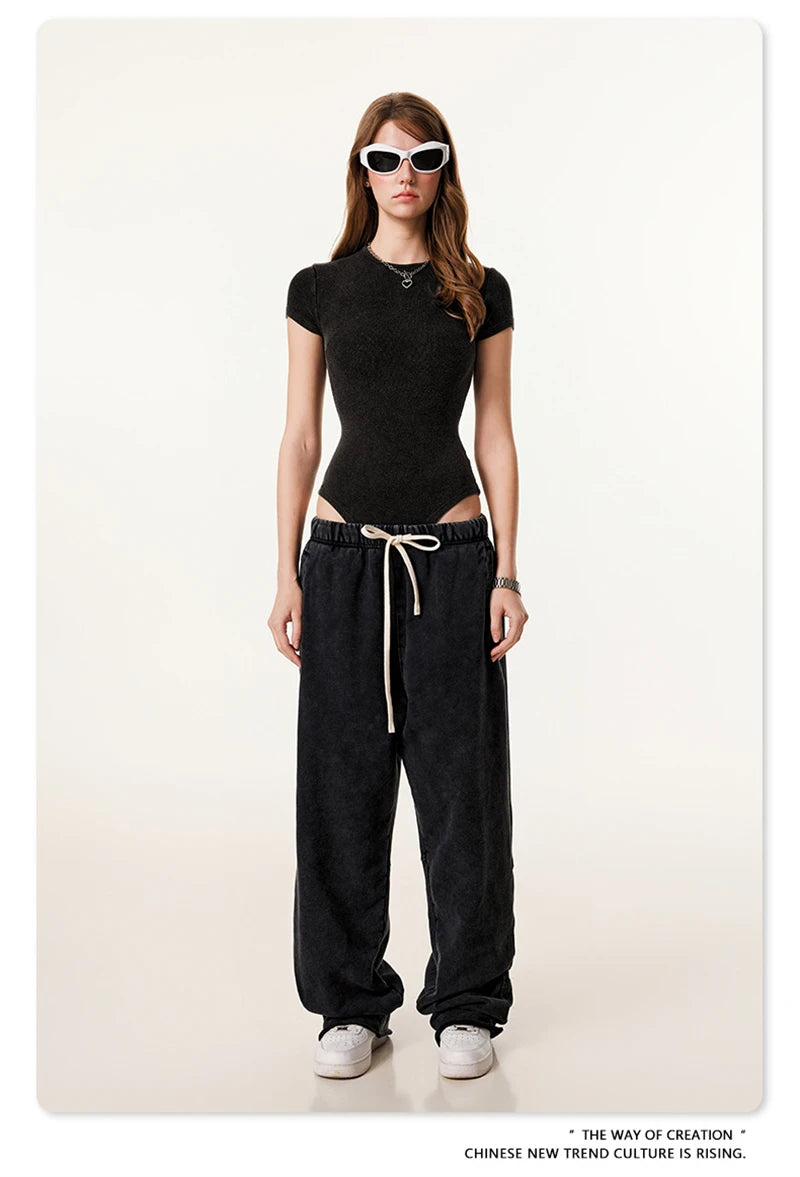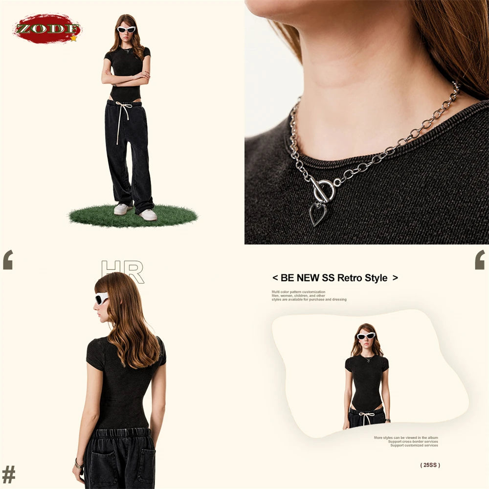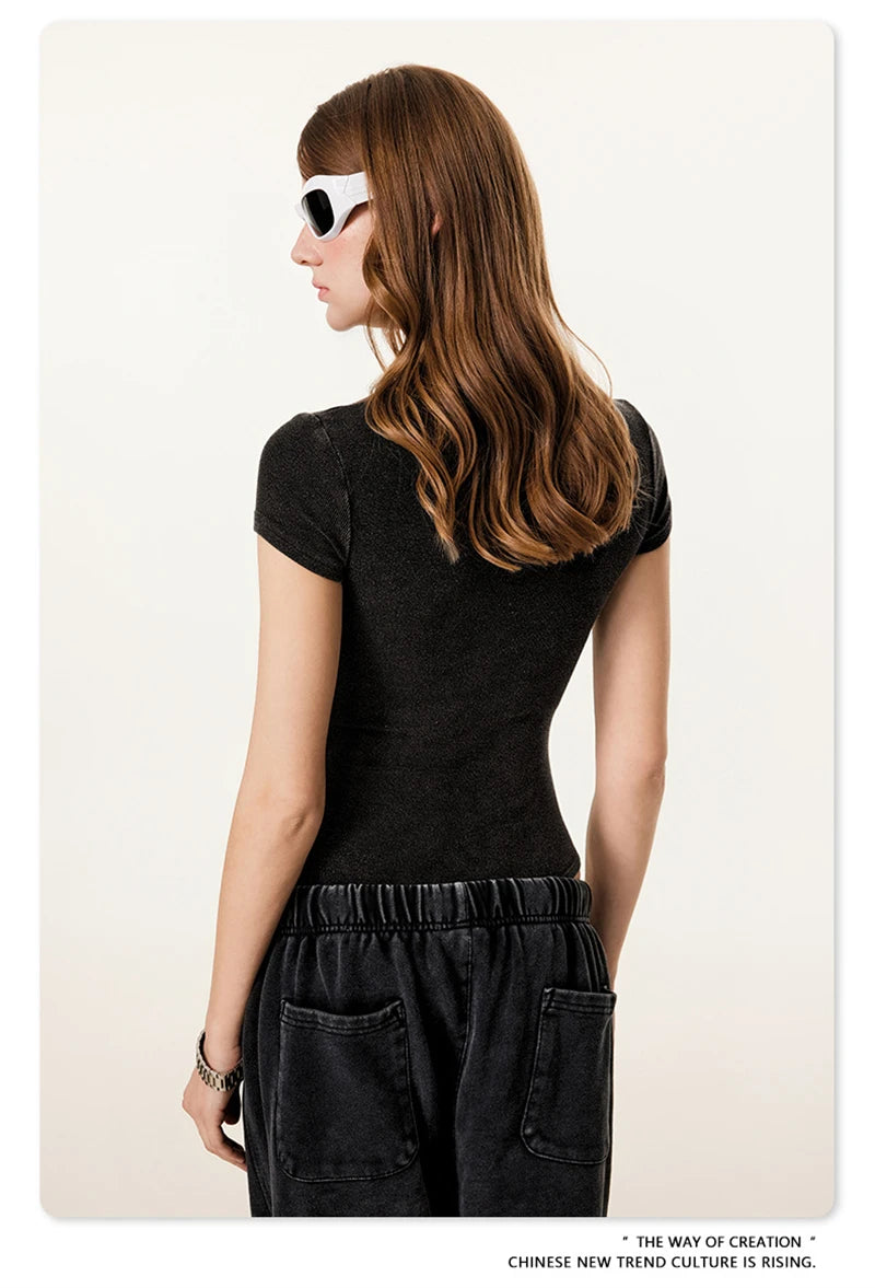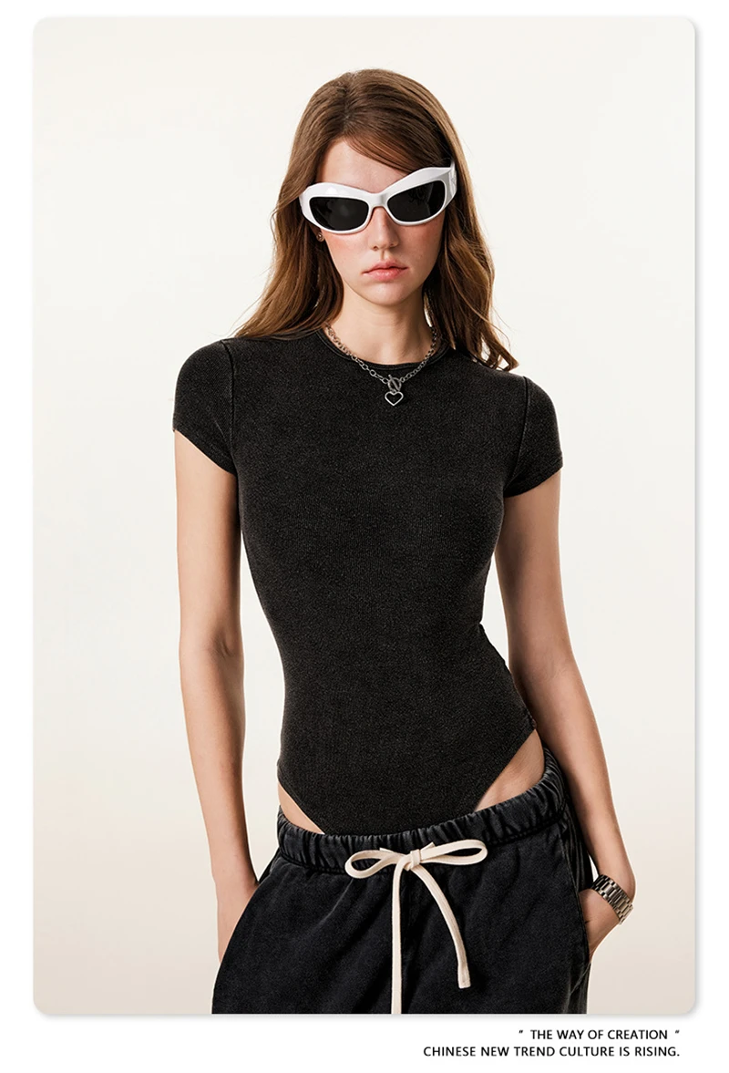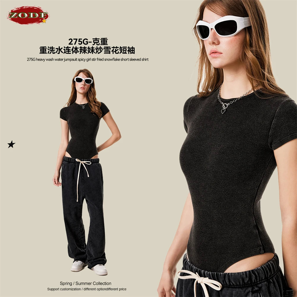 ZODF Hotsweet 2025 Women Washed Short Sleeve Bodysuits Sexy Girls Female 275gsm Slim Fit Distressed TEE Brand Tops HY1058