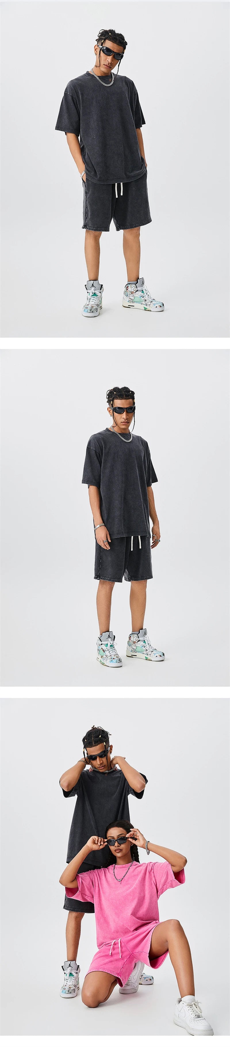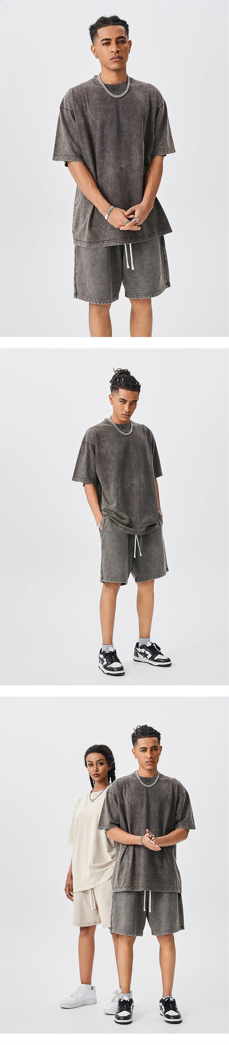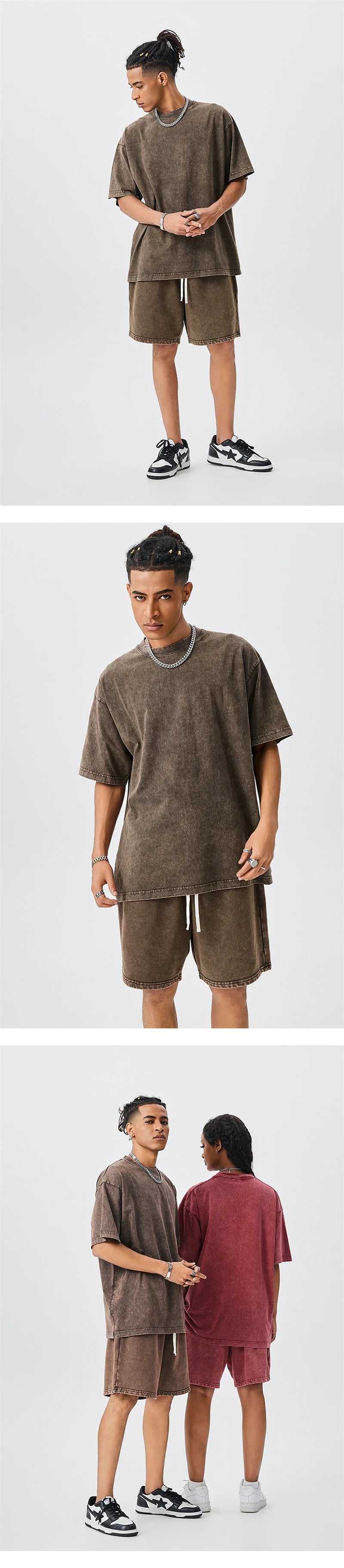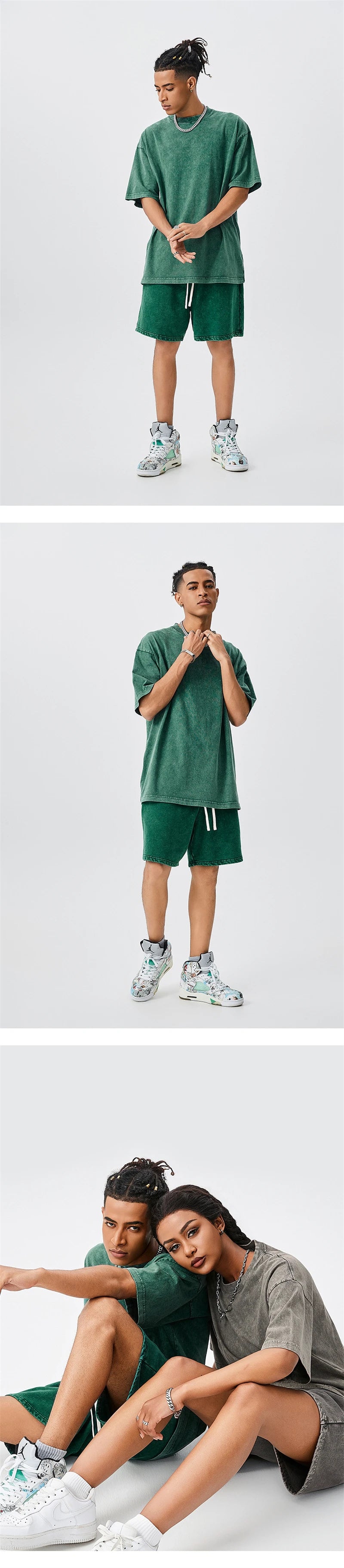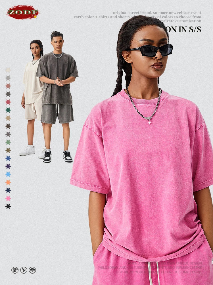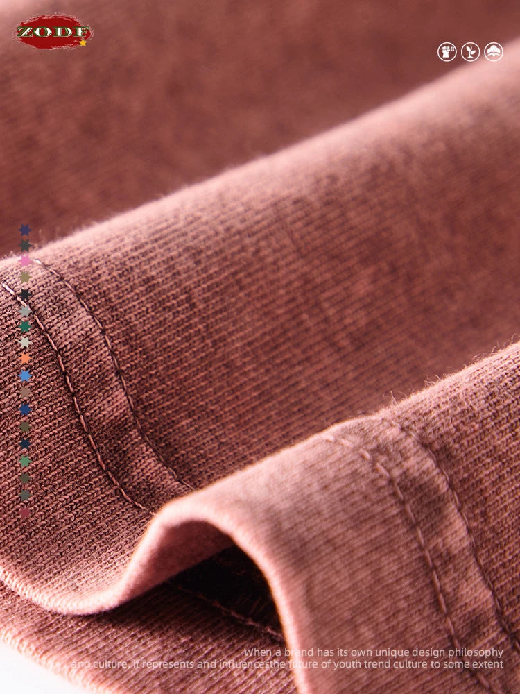 ZODF Men's Summer Batik Washed 250gsm T Shirts Retro Vintage Unisex Basic Loose Solid Cotton T-Shirt Brand Tops 2024 New HY0753