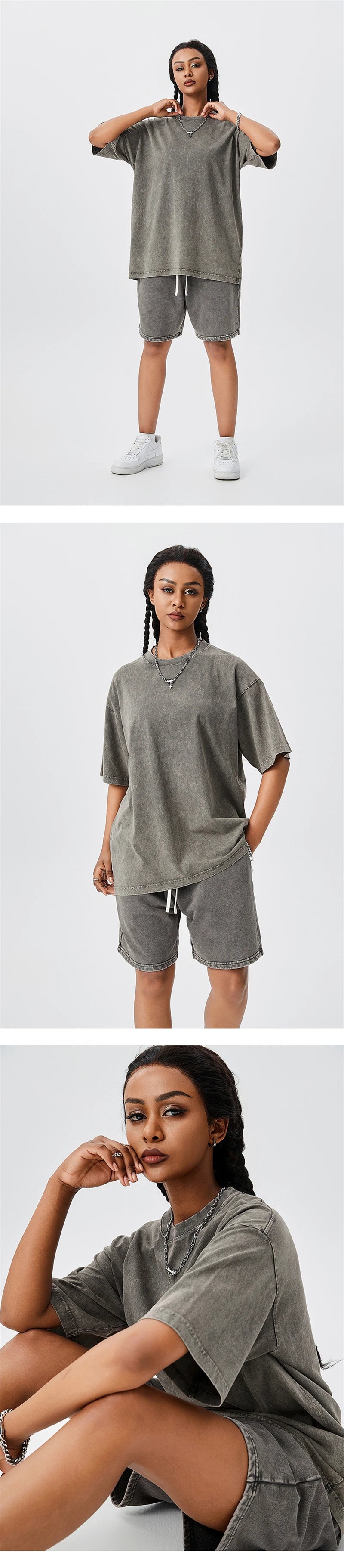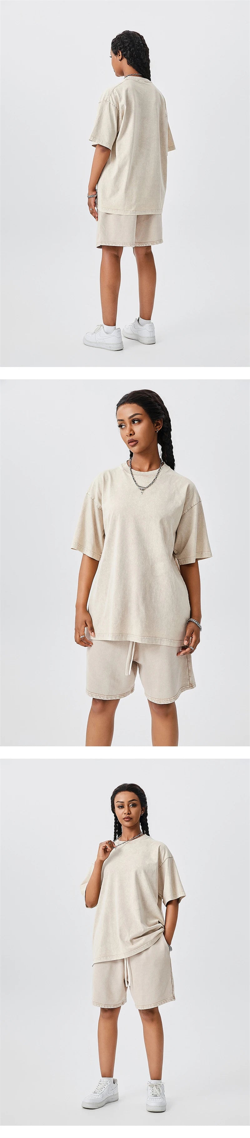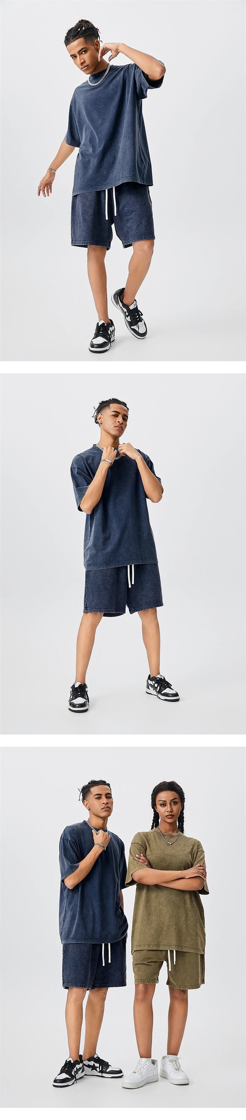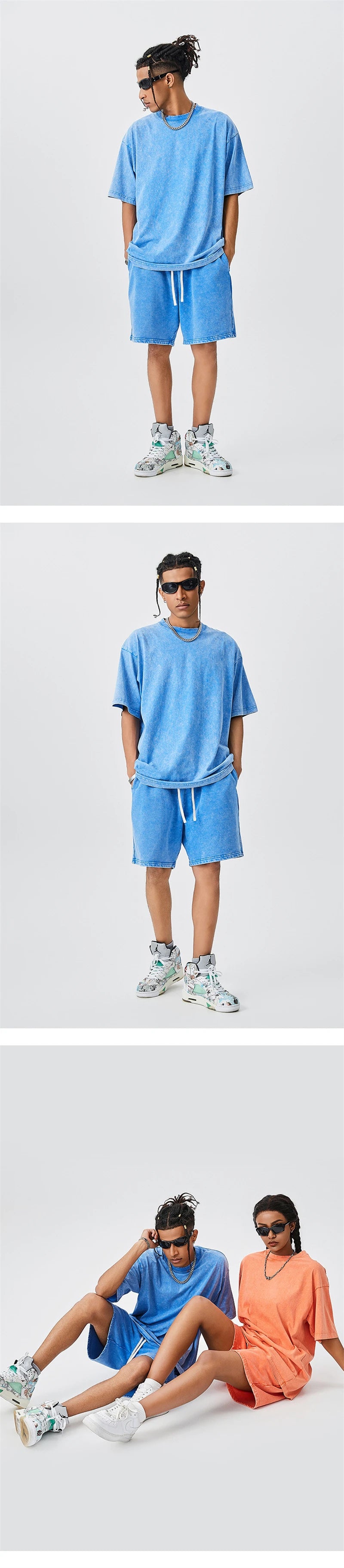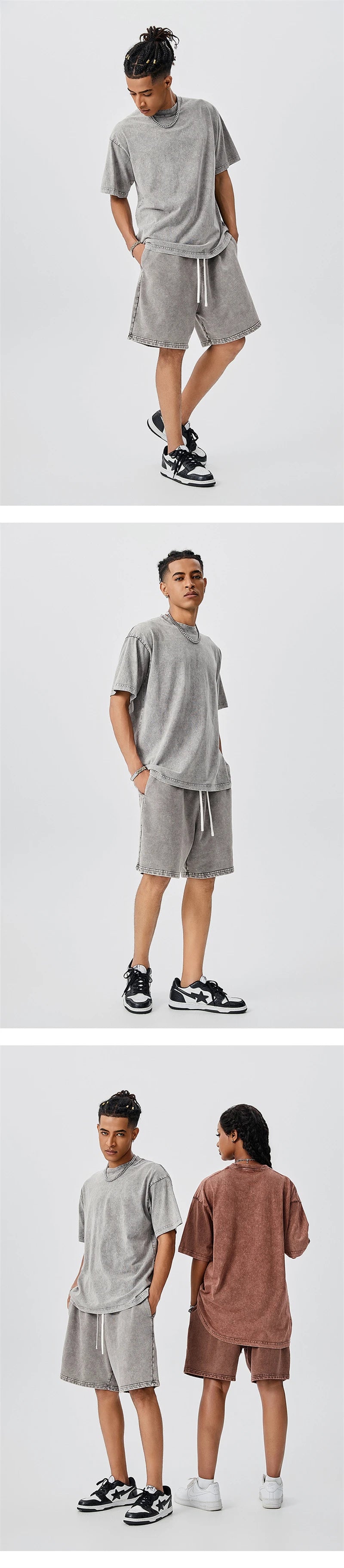 ZODF Men's Summer Batik Washed 250gsm T Shirts Retro Vintage Unisex Basic Loose Solid Cotton T-Shirt Brand Tops 2024 New HY0753