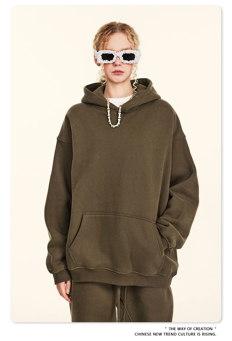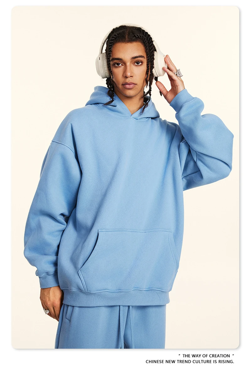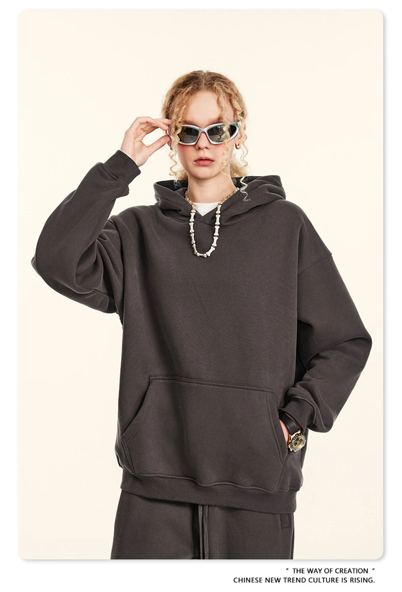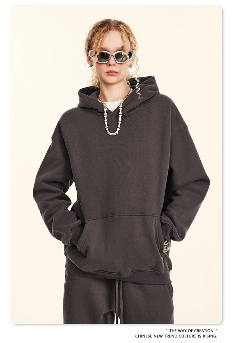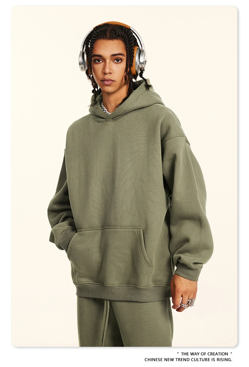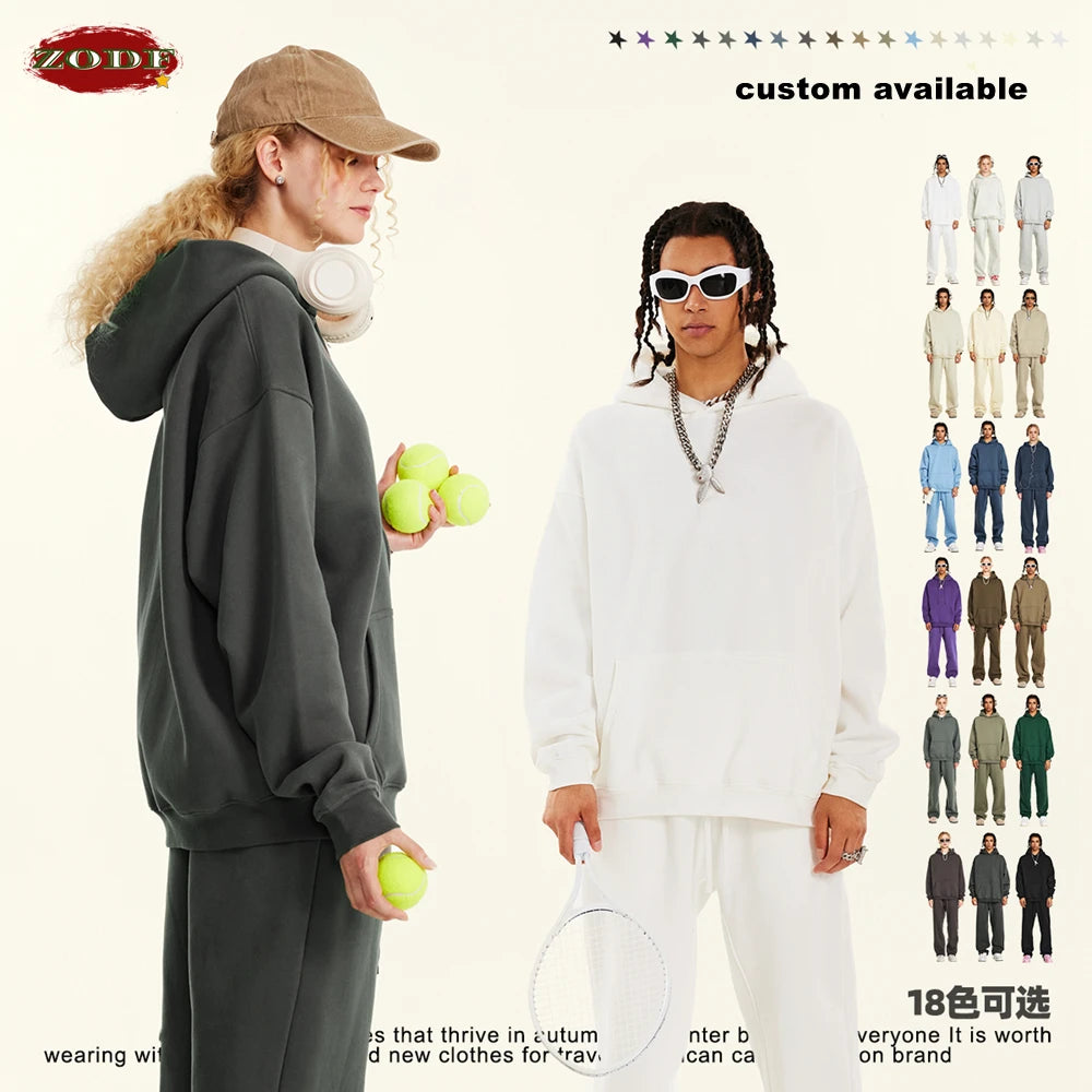 ZODF New 2024 Autumn Winter Men 345gsm Fleece Hoodies Unisex Women Relax Fit Warm Solid Hooded Pullovers Sweatshirts HY0863
