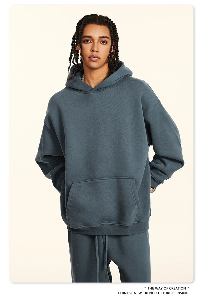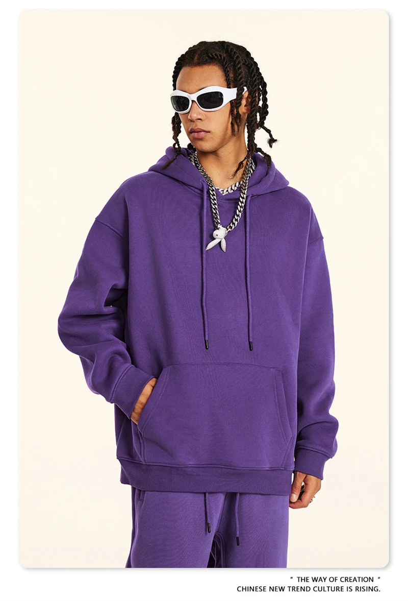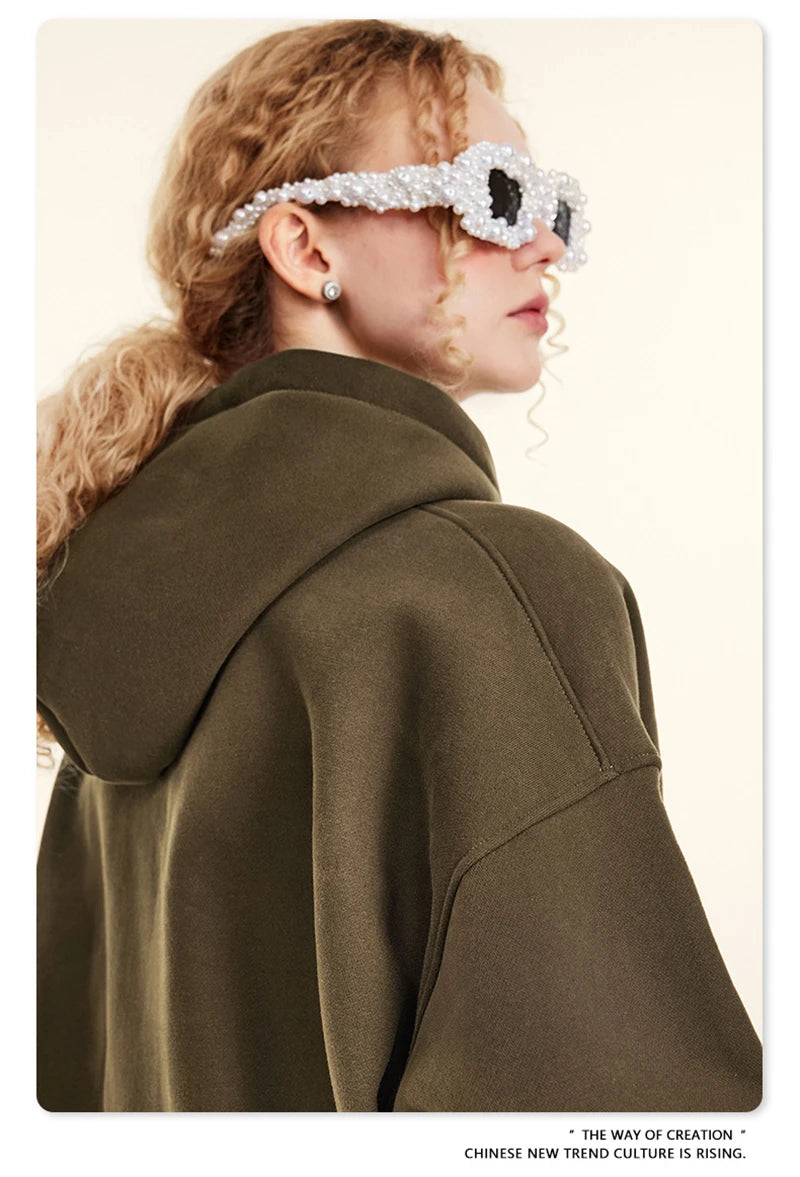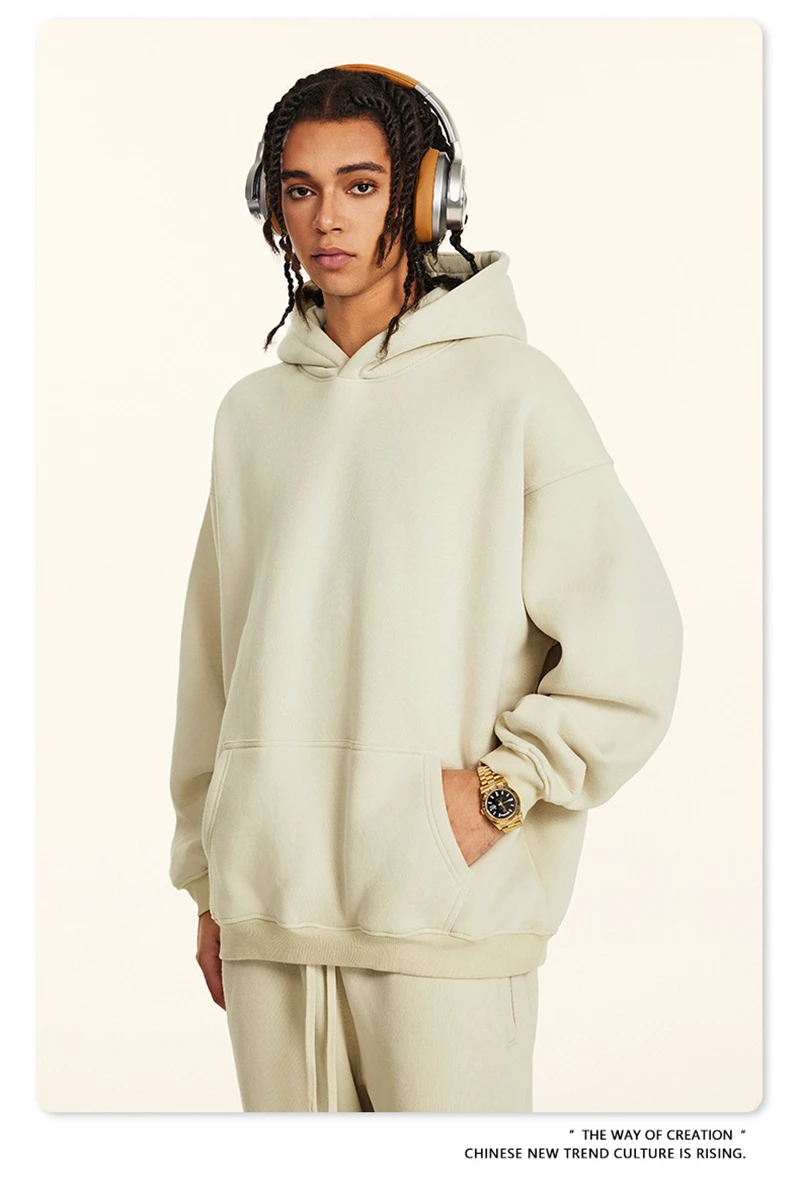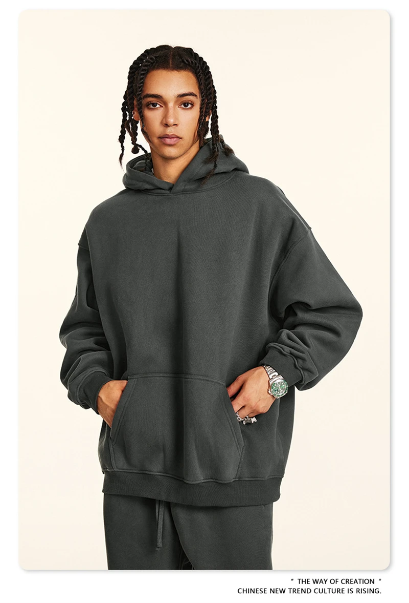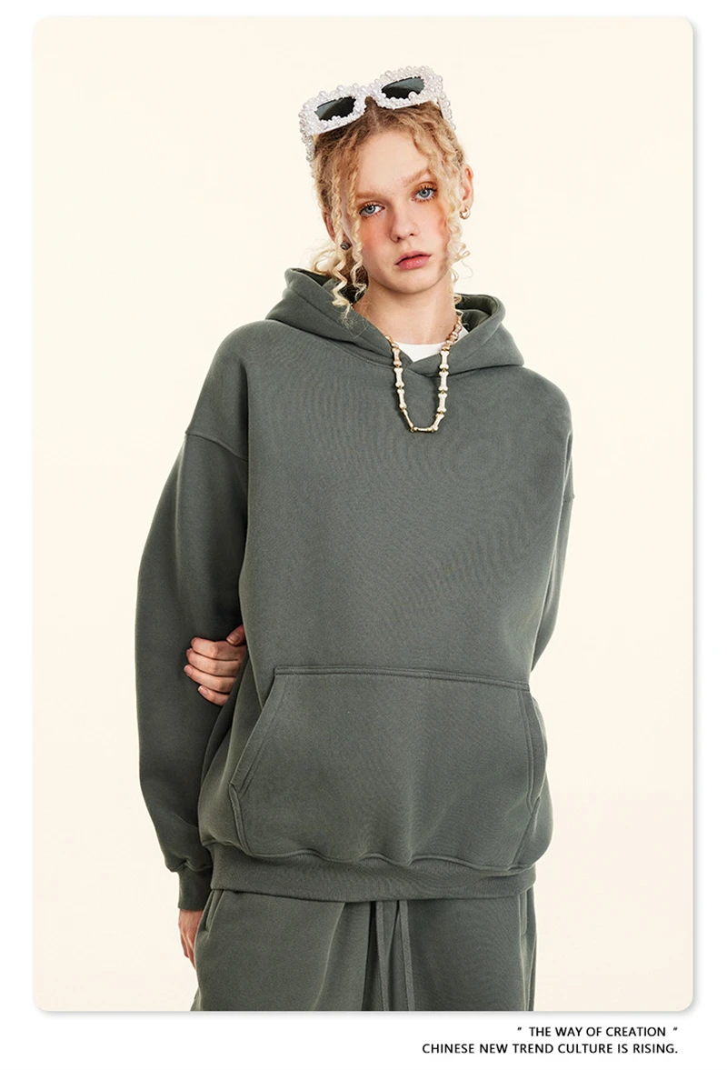 ZODF New 2024 Autumn Winter Men 345gsm Fleece Hoodies Unisex Women Relax Fit Warm Solid Hooded Pullovers Sweatshirts HY0863