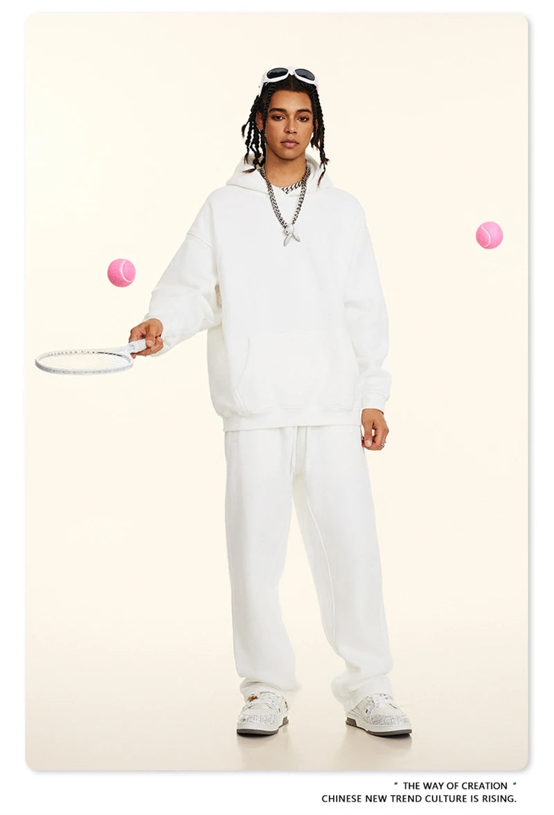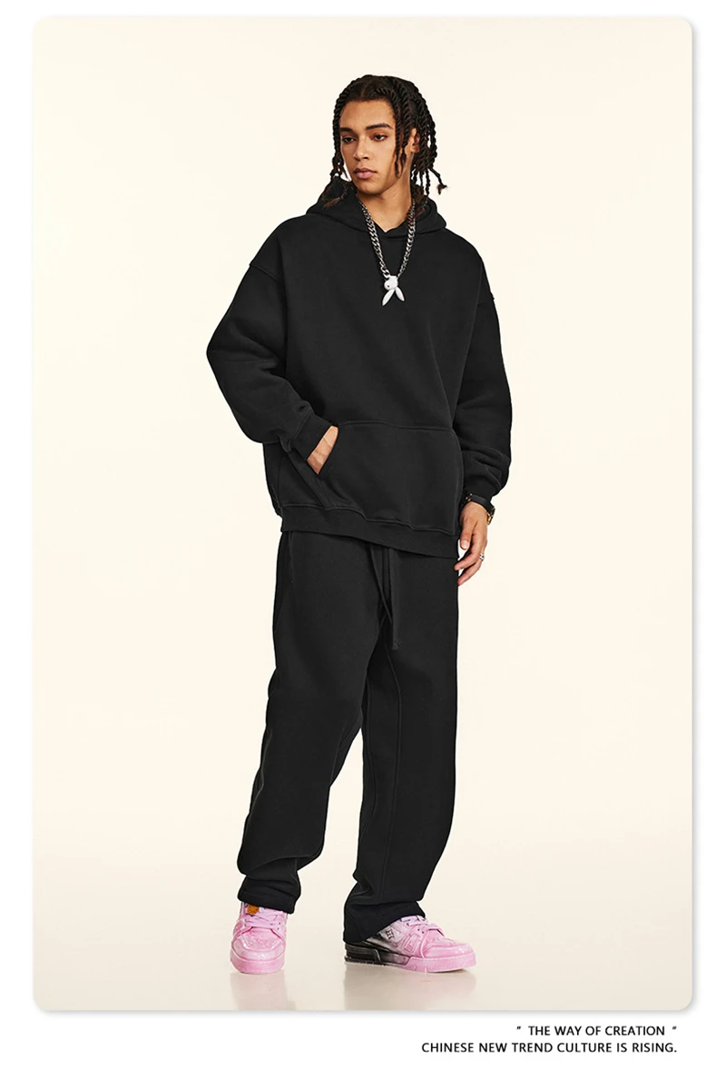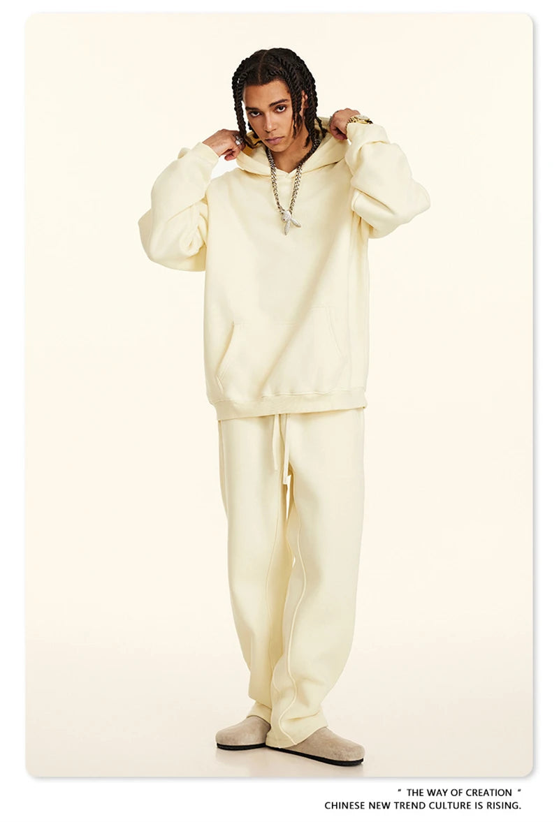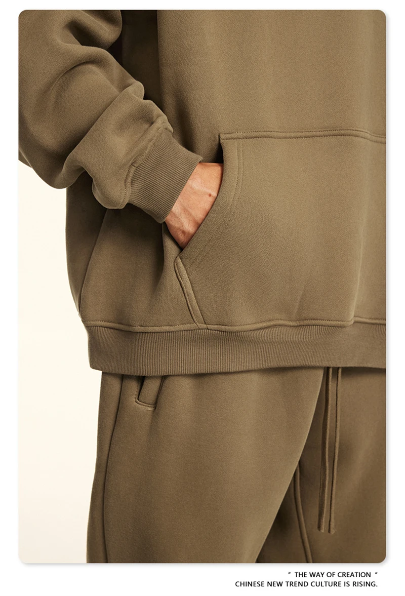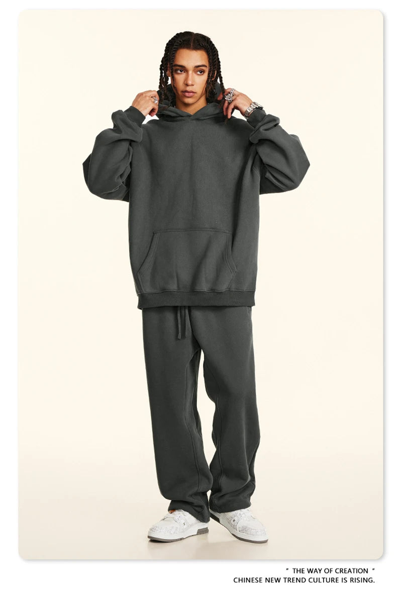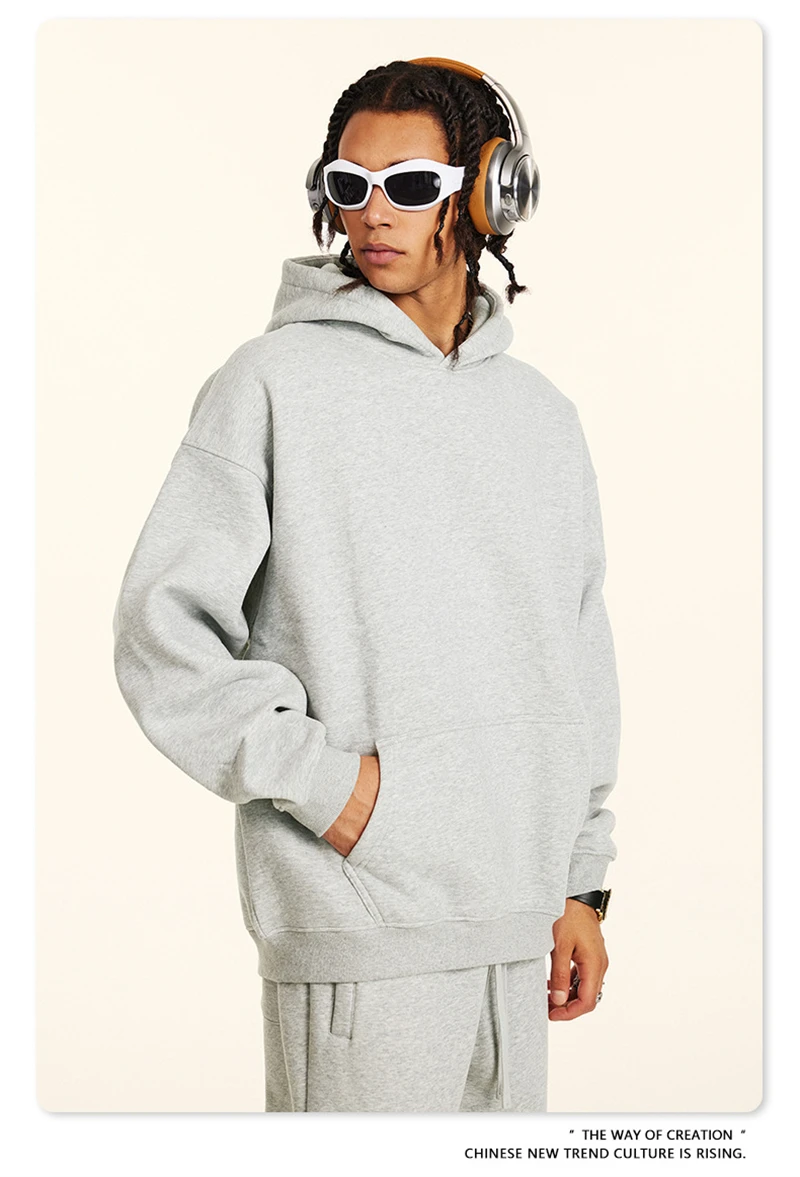 ZODF New 2024 Autumn Winter Men 345gsm Fleece Hoodies Unisex Women Relax Fit Warm Solid Hooded Pullovers Sweatshirts HY0863
