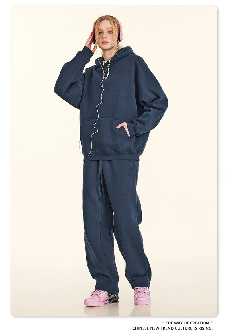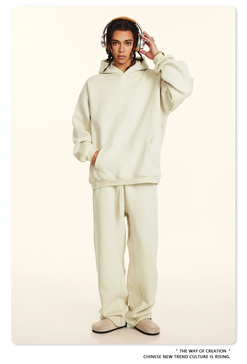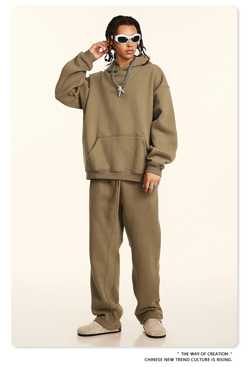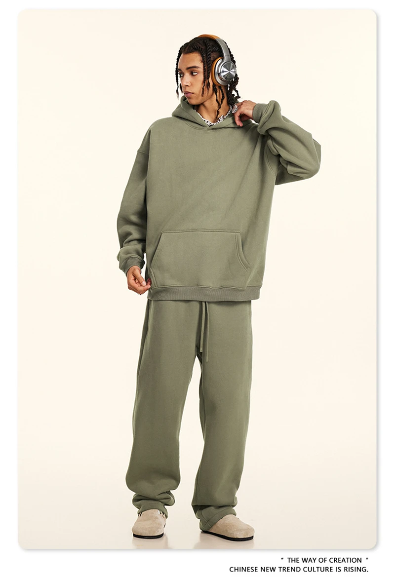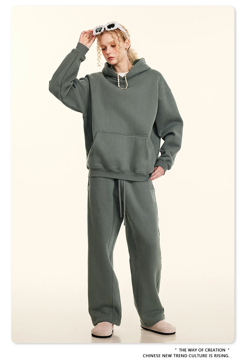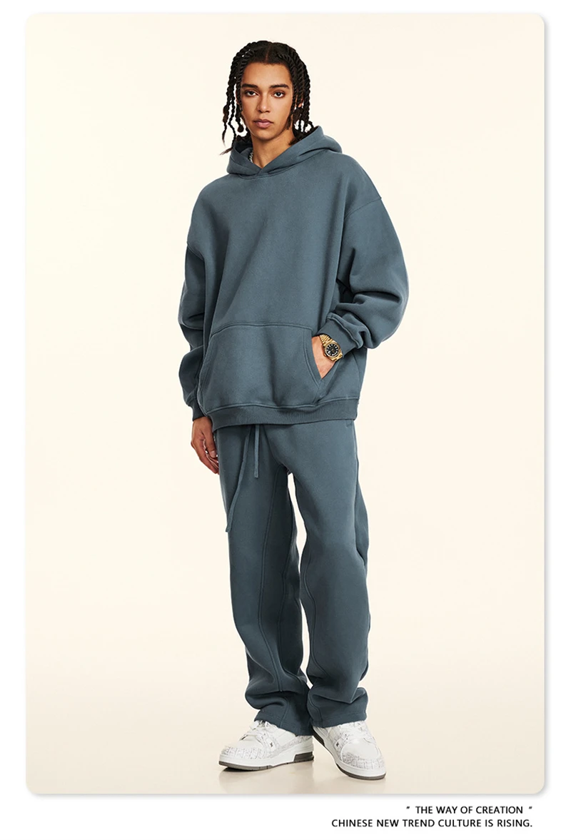 ZODF New 2024 Autumn Winter Men 345gsm Fleece Hoodies Unisex Women Relax Fit Warm Solid Hooded Pullovers Sweatshirts HY0863