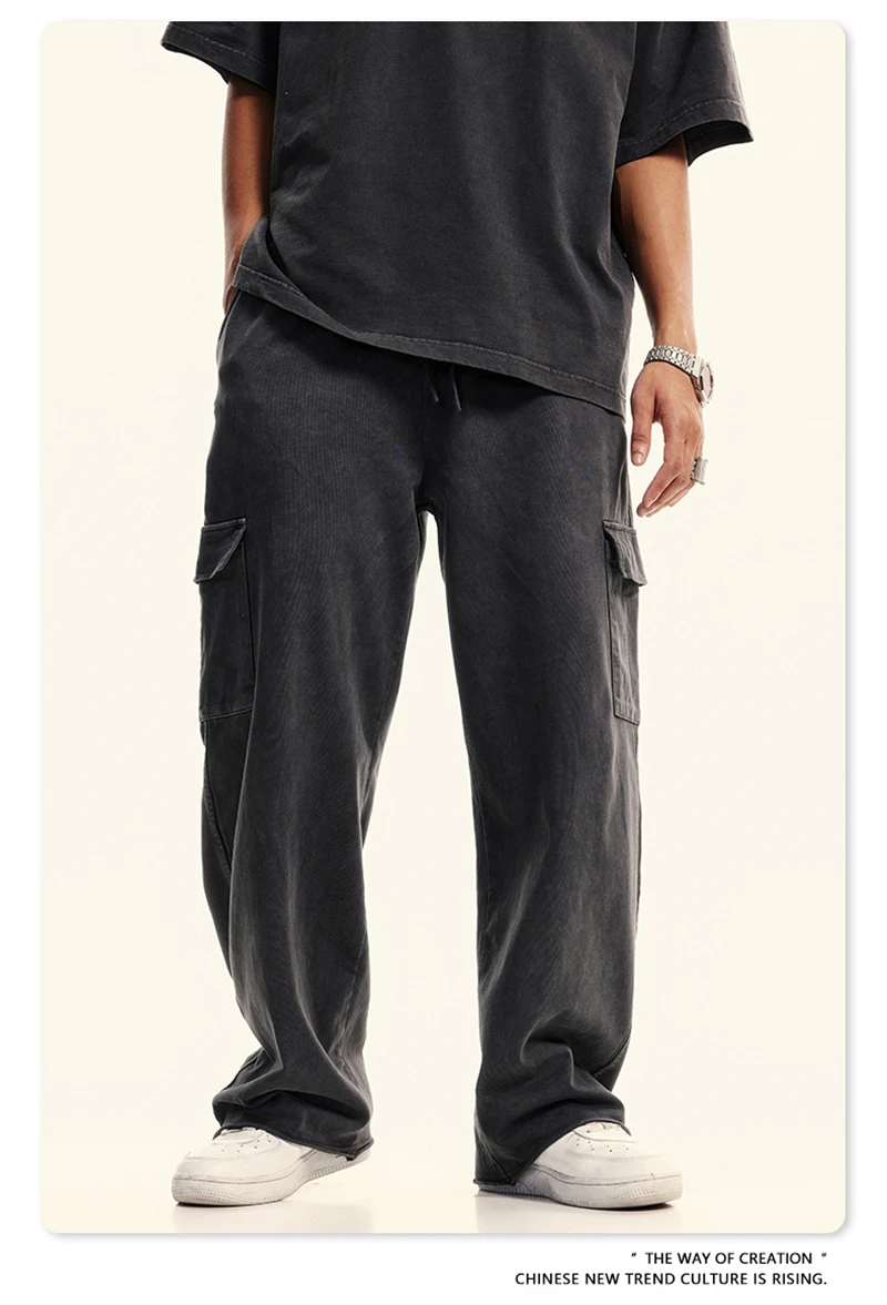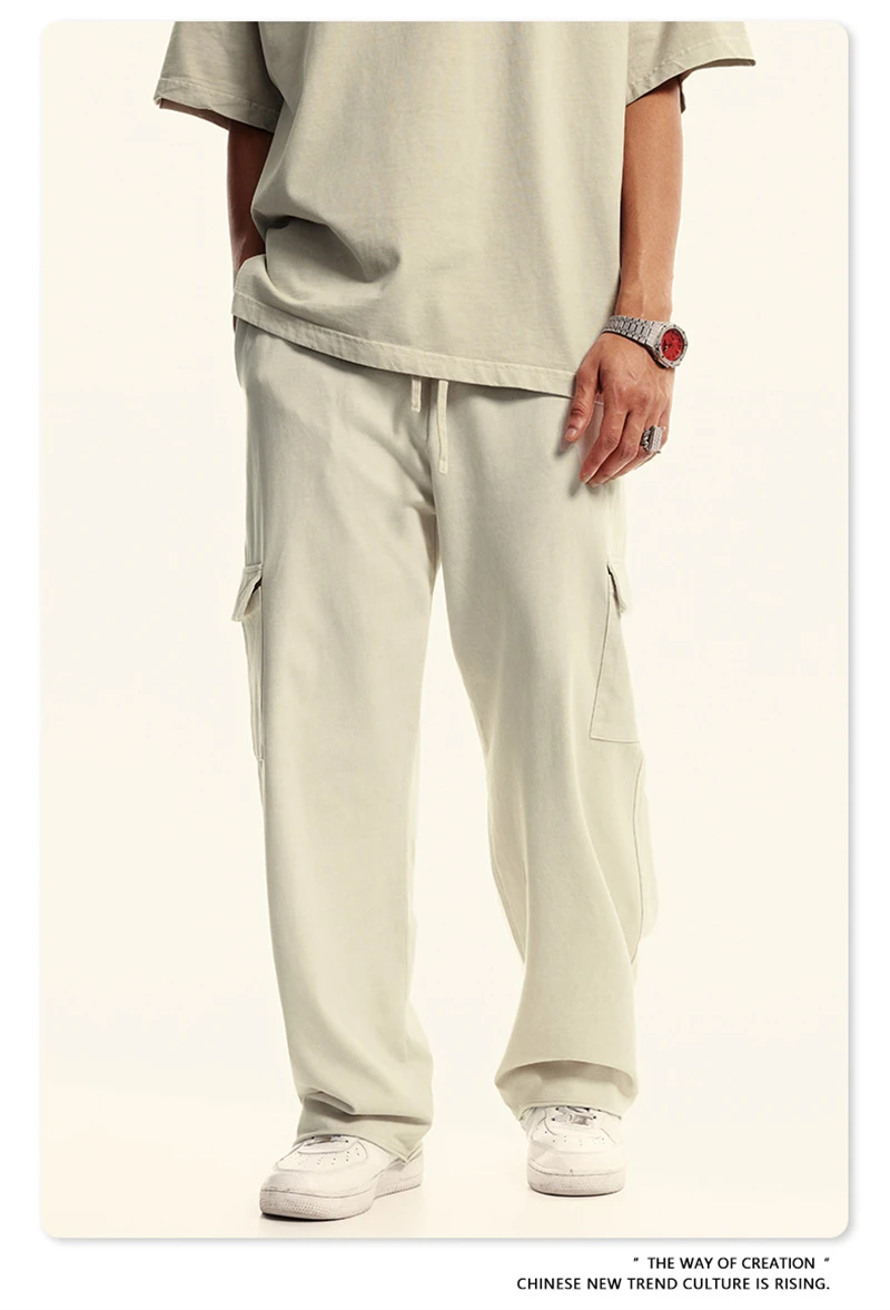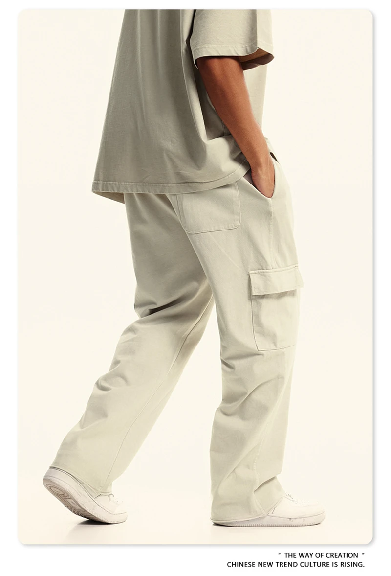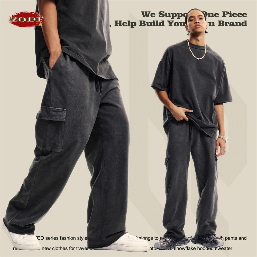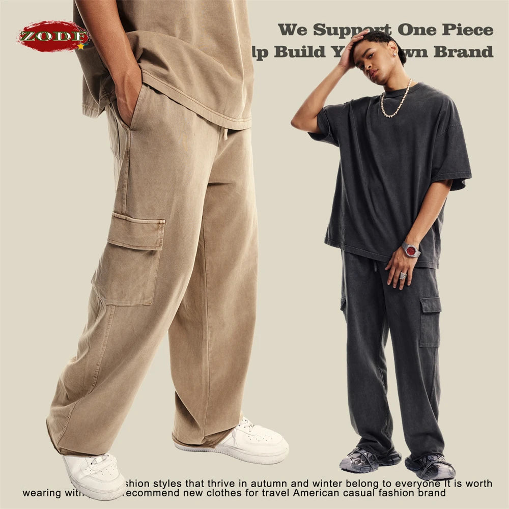 ZODF New 2024 Spring Summer 358gsm Cotton Cargo Pants For Men Unisex Casual Washed Straight Multi-Pockets Loose Trousers HY0829