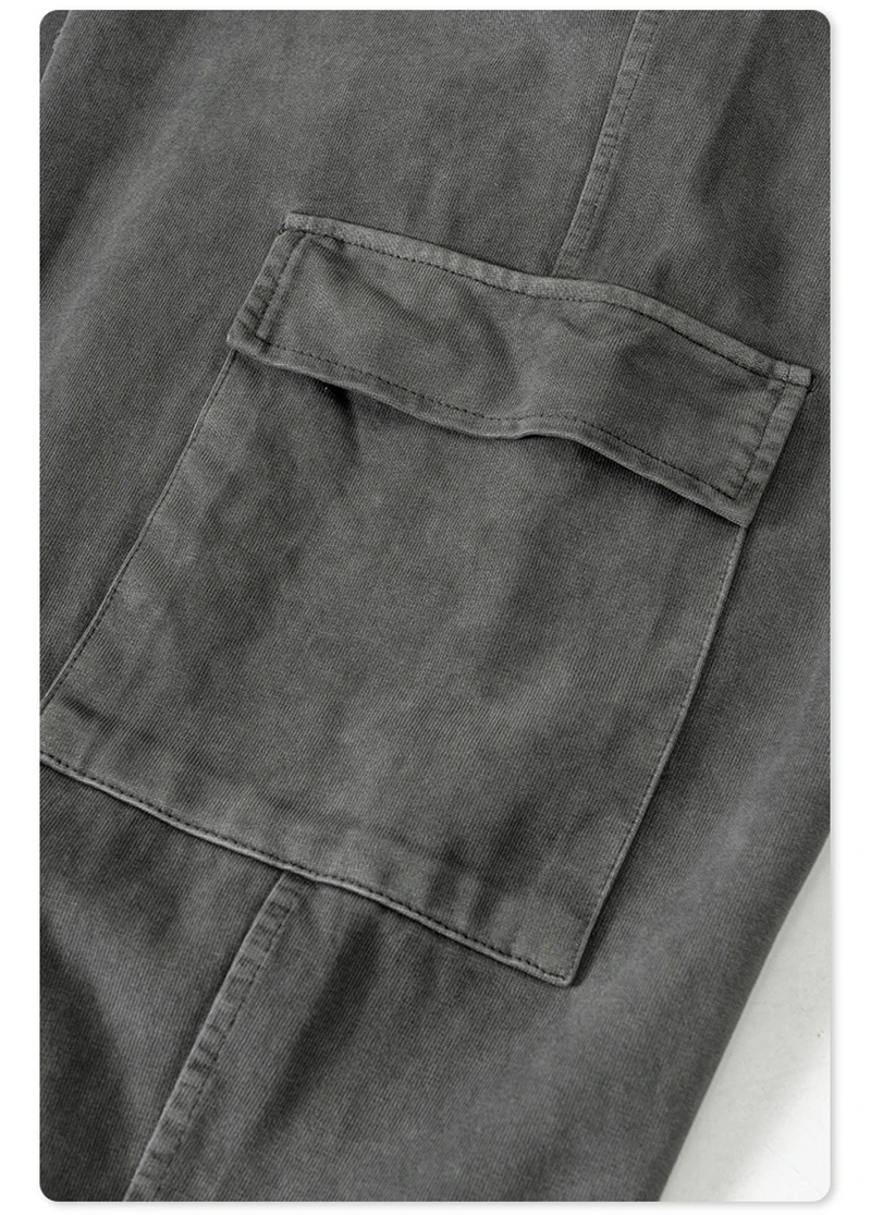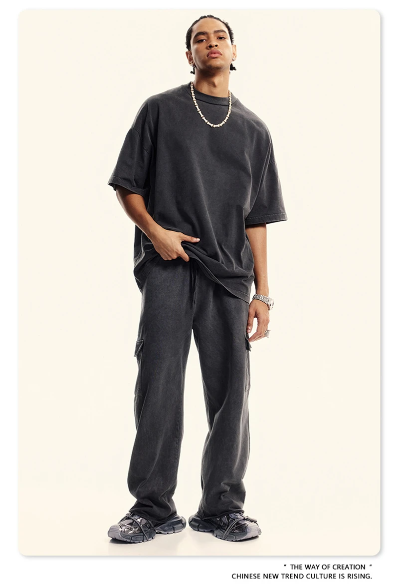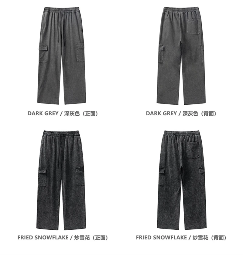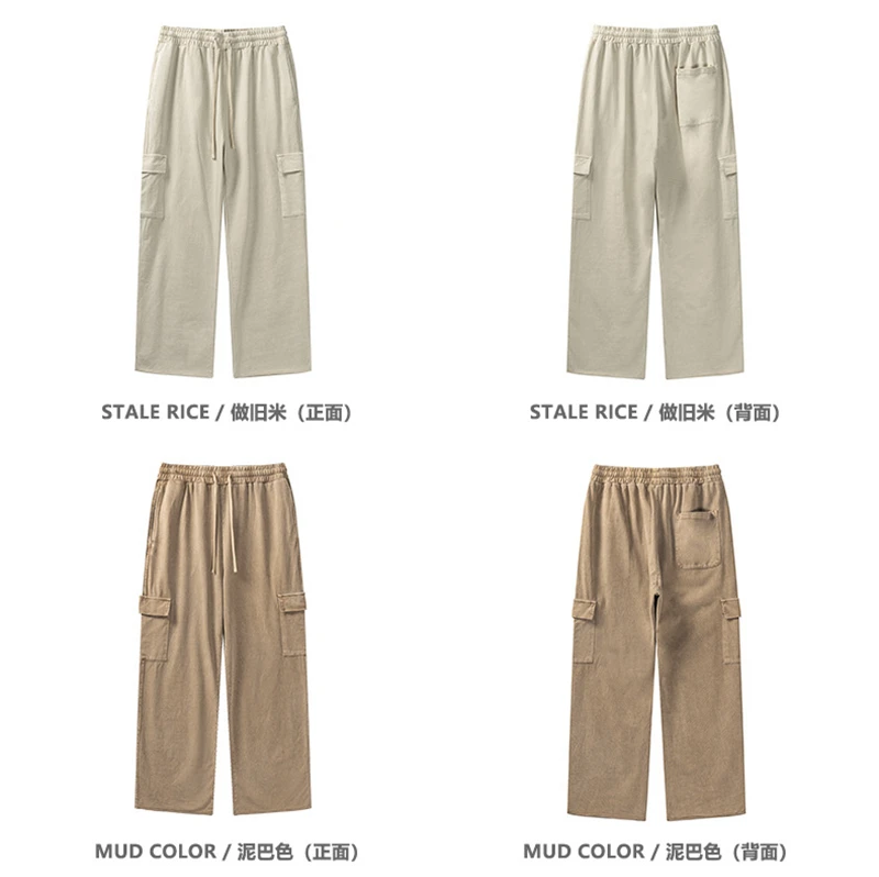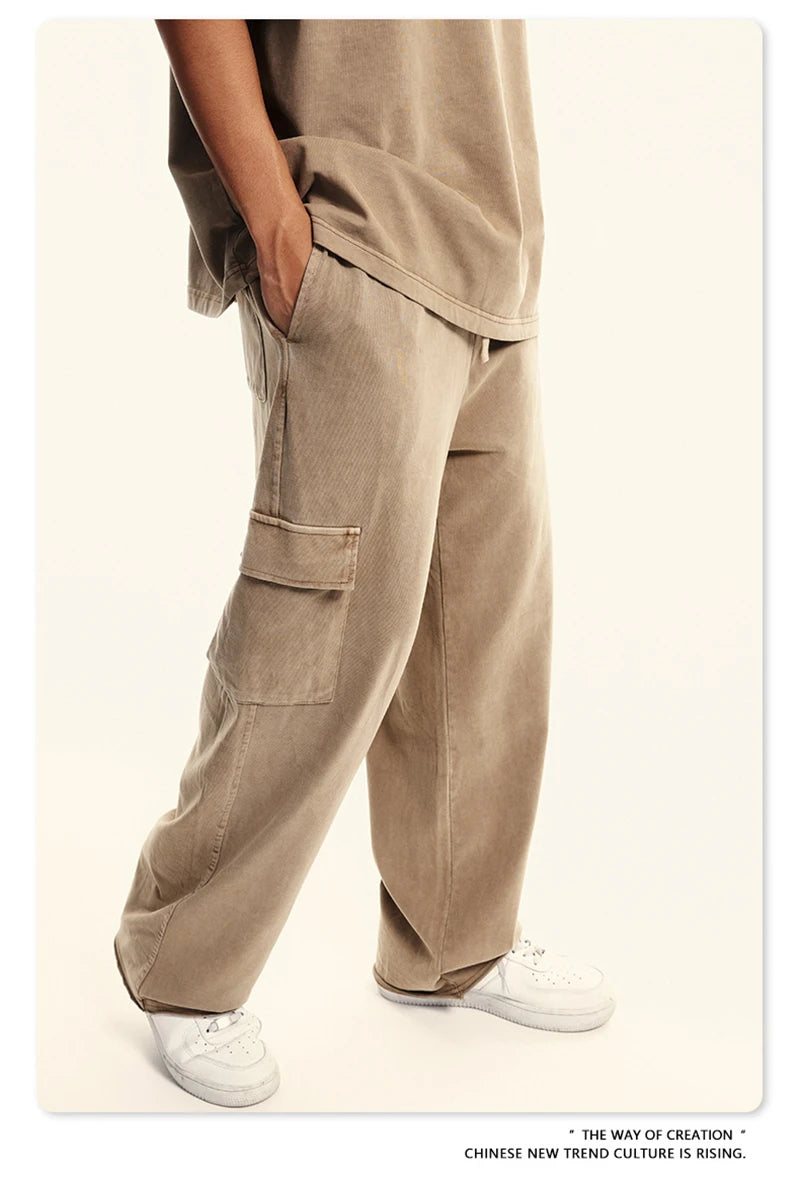 ZODF New 2024 Spring Summer 358gsm Cotton Cargo Pants For Men Unisex Casual Washed Straight Multi-Pockets Loose Trousers HY0829