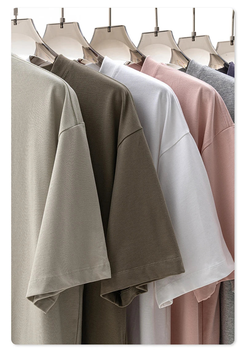 ZODF New 2025 Men Basic Solid 255gsm Cotton T-Shirts Unisex Loose Breathable Comfortable T Shirt Brand Clothes HY0973